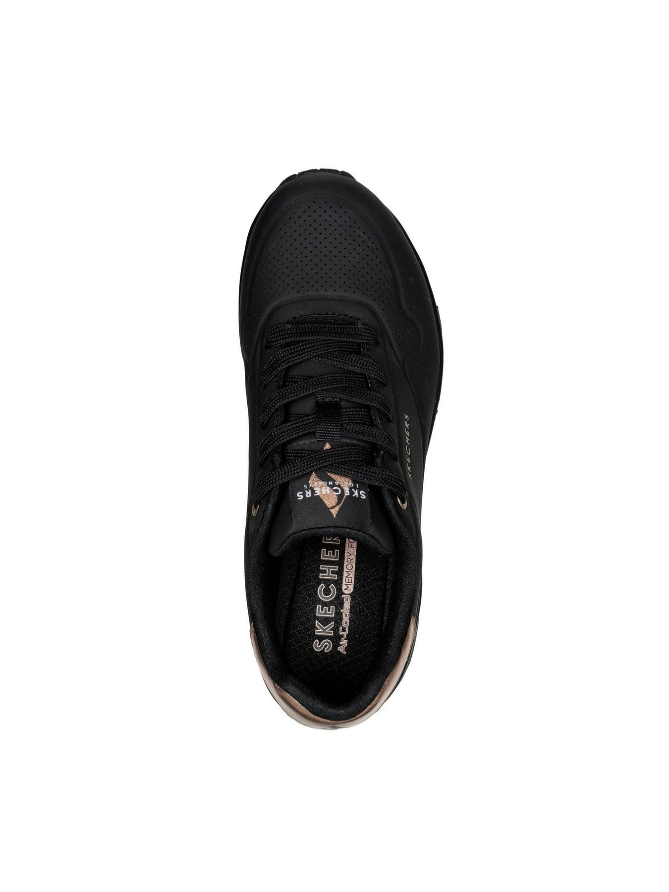 SKECHERS Uno Sneaker Bassa Donna - 177094 Nero. Sneaker nera con dettagli metallici, zeppa interna da 5 cm e intersuola con camera d'aria.