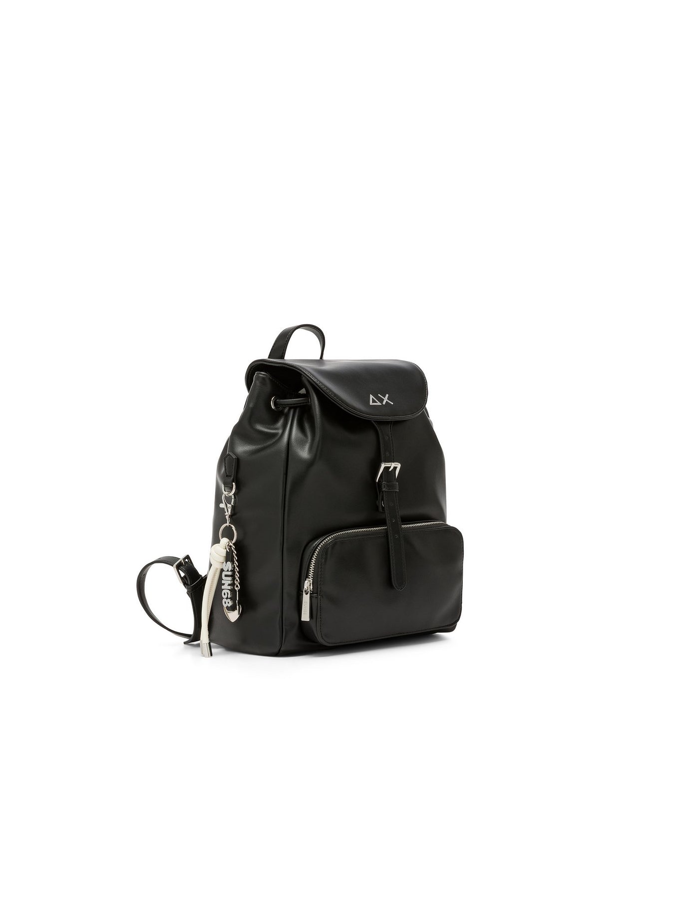 Il SUN68 Bagpack Premium unisce funzionalità e stile in un accessorio pratico e raffinato. Dotato di spallacci regolabili e manico superiore, garantisce comfort durante l'utilizzo. Le tasche esterne e interne permettono di organizzare al meglio gli oggetti personali, mentre la chiusura con patta e fibbia assicura sicurezza. Il design pulito con logo frontale rende questo zaino perfetto per la città, il lavoro e il tempo libero.