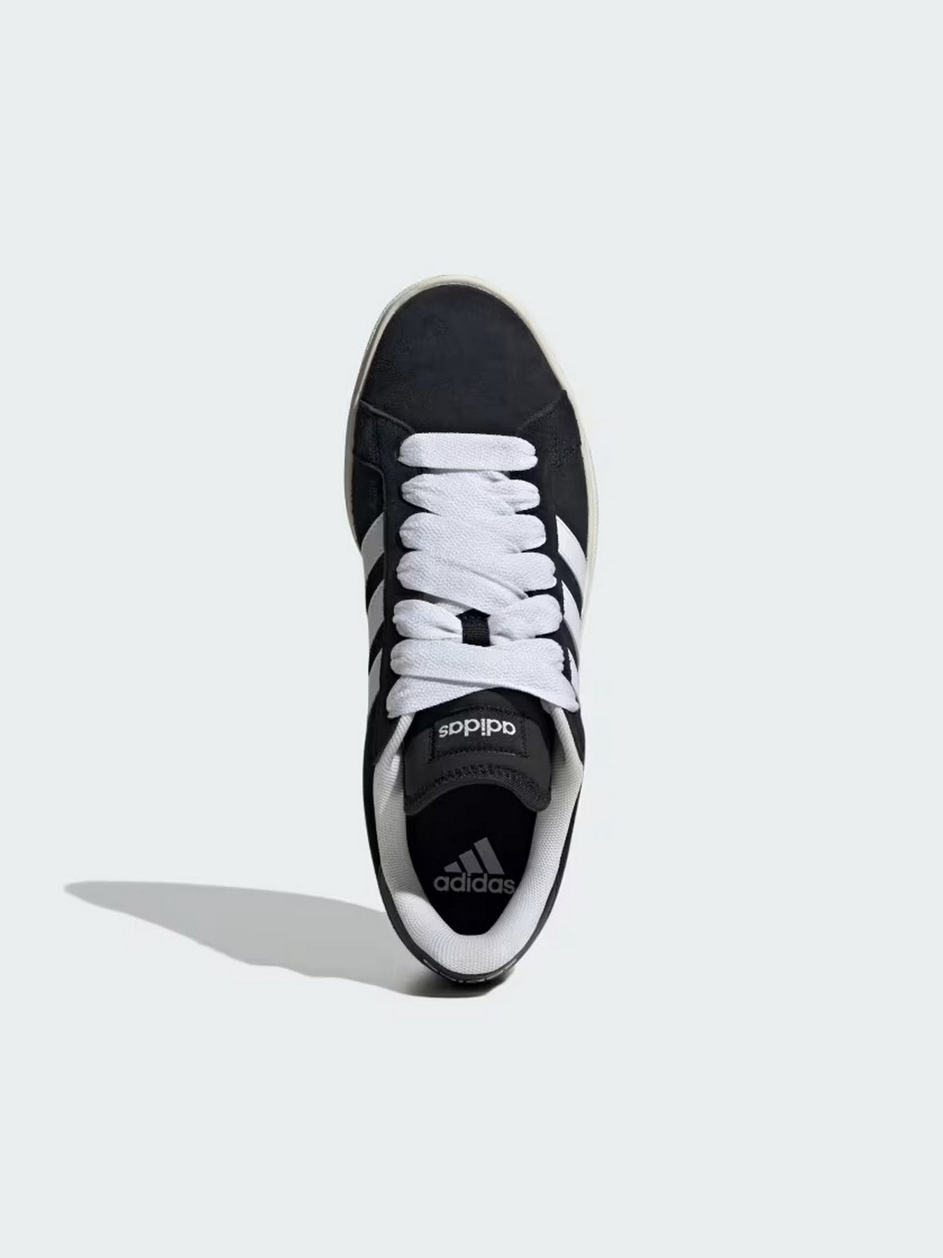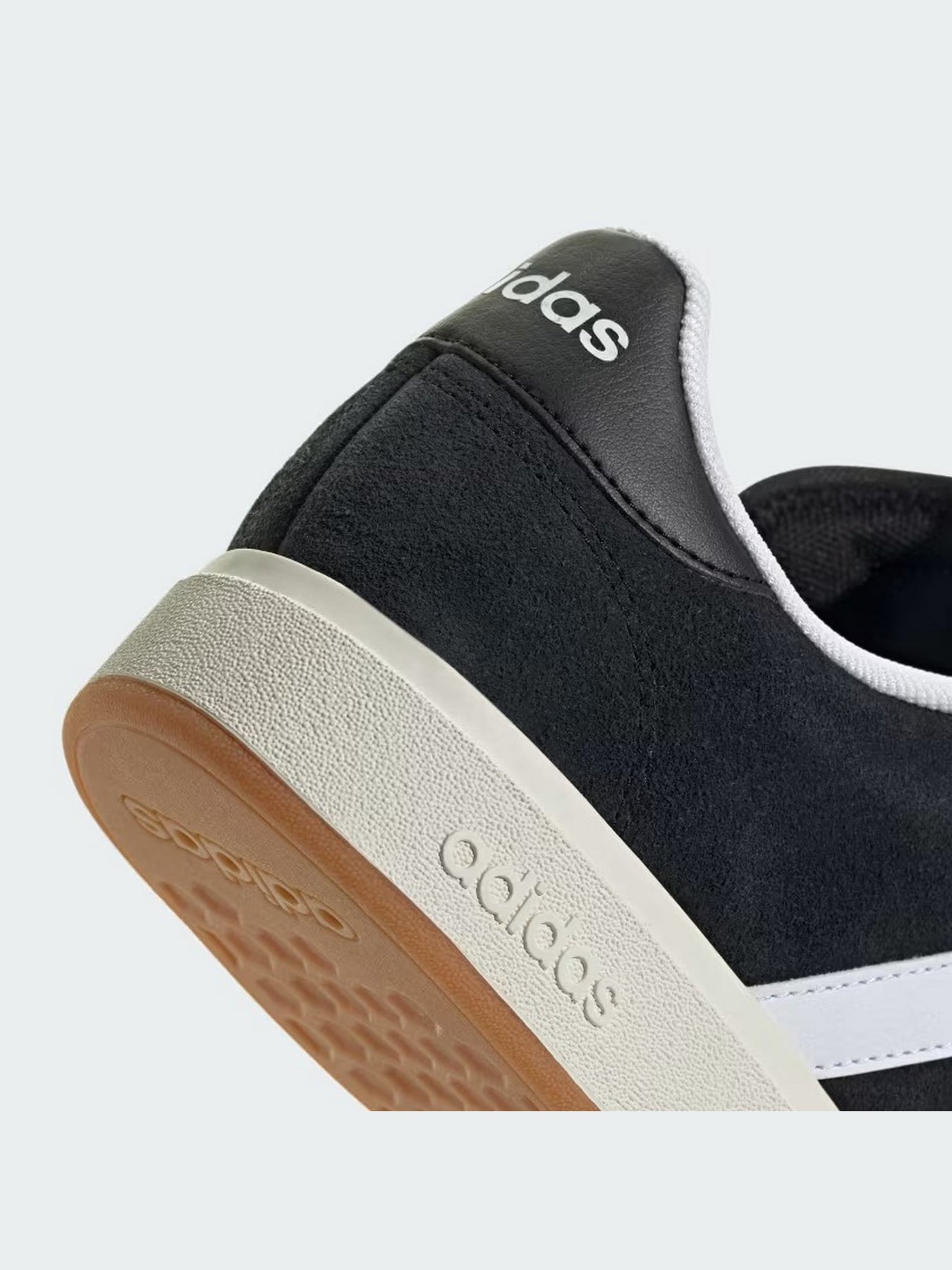 Le ADIDAS Grand Court Base 00s Black/White/Gum offrono uno stile classico ispirato agli anni 2000, con una tomaia in similpelle nera arricchita dalle 3-Stripes bianche per un contrasto deciso. La suola color gomma dona un tocco vintage, garantendo al tempo stesso resistenza e grip.