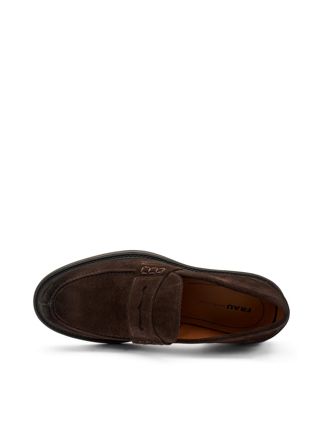 FRAU Mocassino Uomo - 73A8 Marrone. Mocassino in camoscio marrone con cuciture artigianali e suola in gomma da 3 cm.