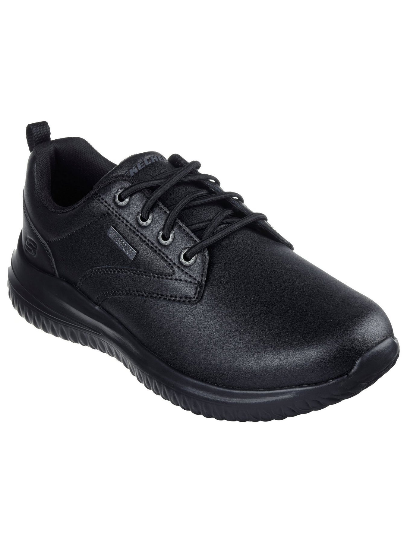 SKECHERS Sneaker Bassa Uomo - 210661 Nero Sneaker bassa in pelle sintetica nera impermeabile con lacci, soletta Air-Cooled Memory Foam e suola flessibile antiscivolo.