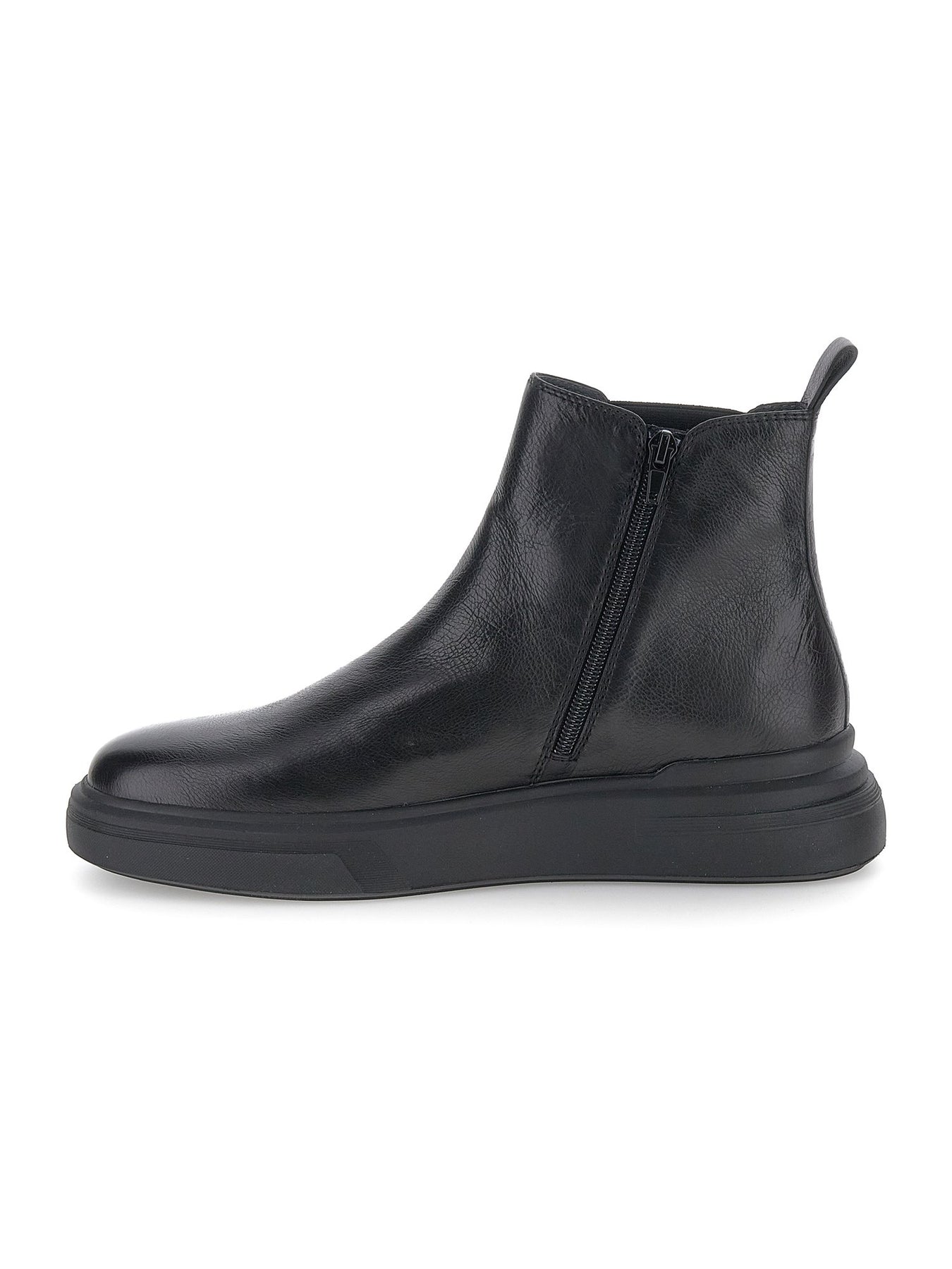 Realizzato in morbida pelle nera, presenta i classici inserti elastici laterali che assicurano una calzata rapida e confortevole.
