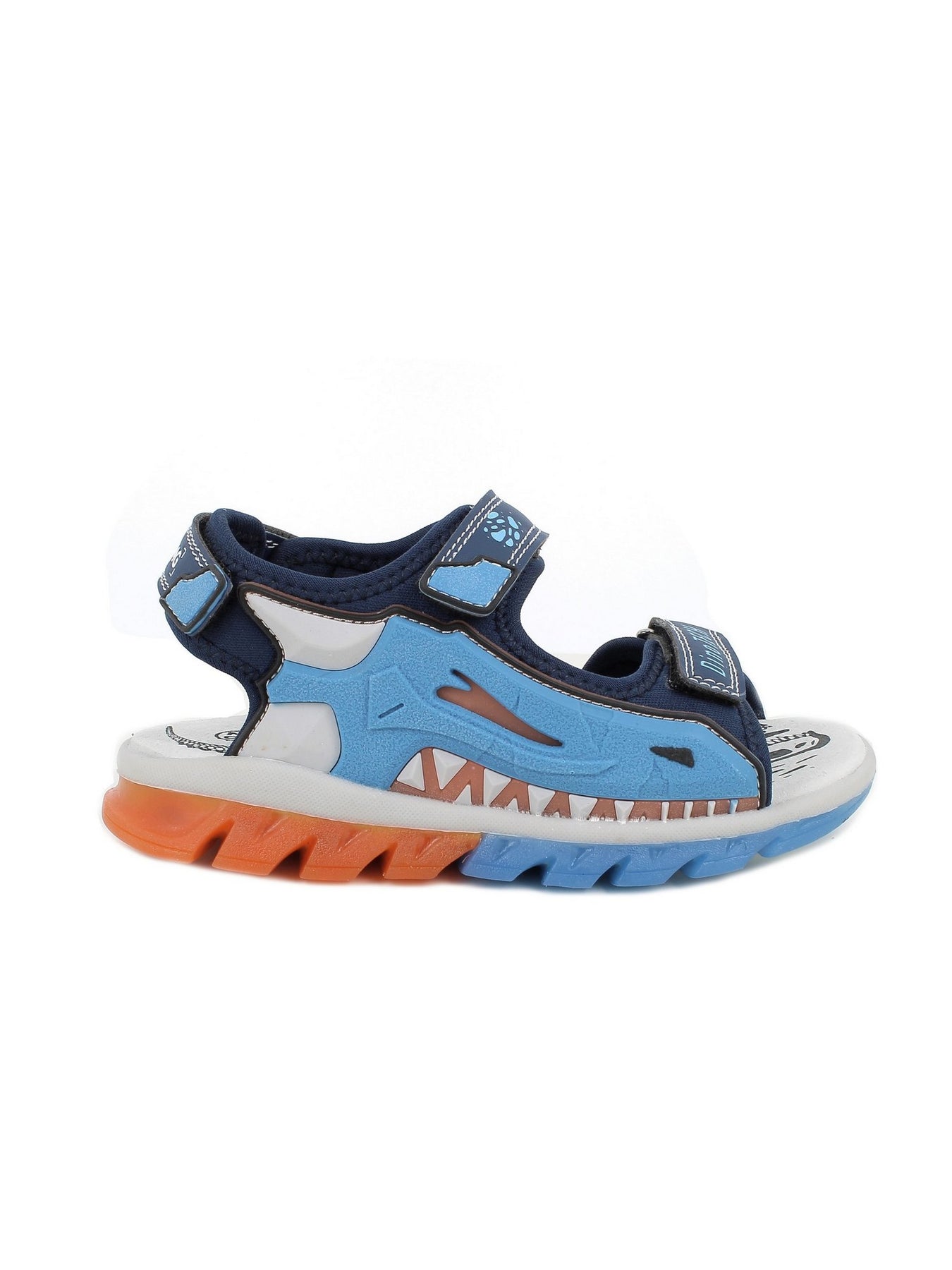 Grintoso e dinamico, il sandalo PRIMIGI AVANT 79745 in versione Navy è pensato per i piccoli esploratori che non vogliono passare inosservati. Il design richiama la forza di uno squalo, con dettagli a tema sulla tomaia e una suola colorata che sfuma dal rosso all'azzurro, per un effetto davvero sorprendente.