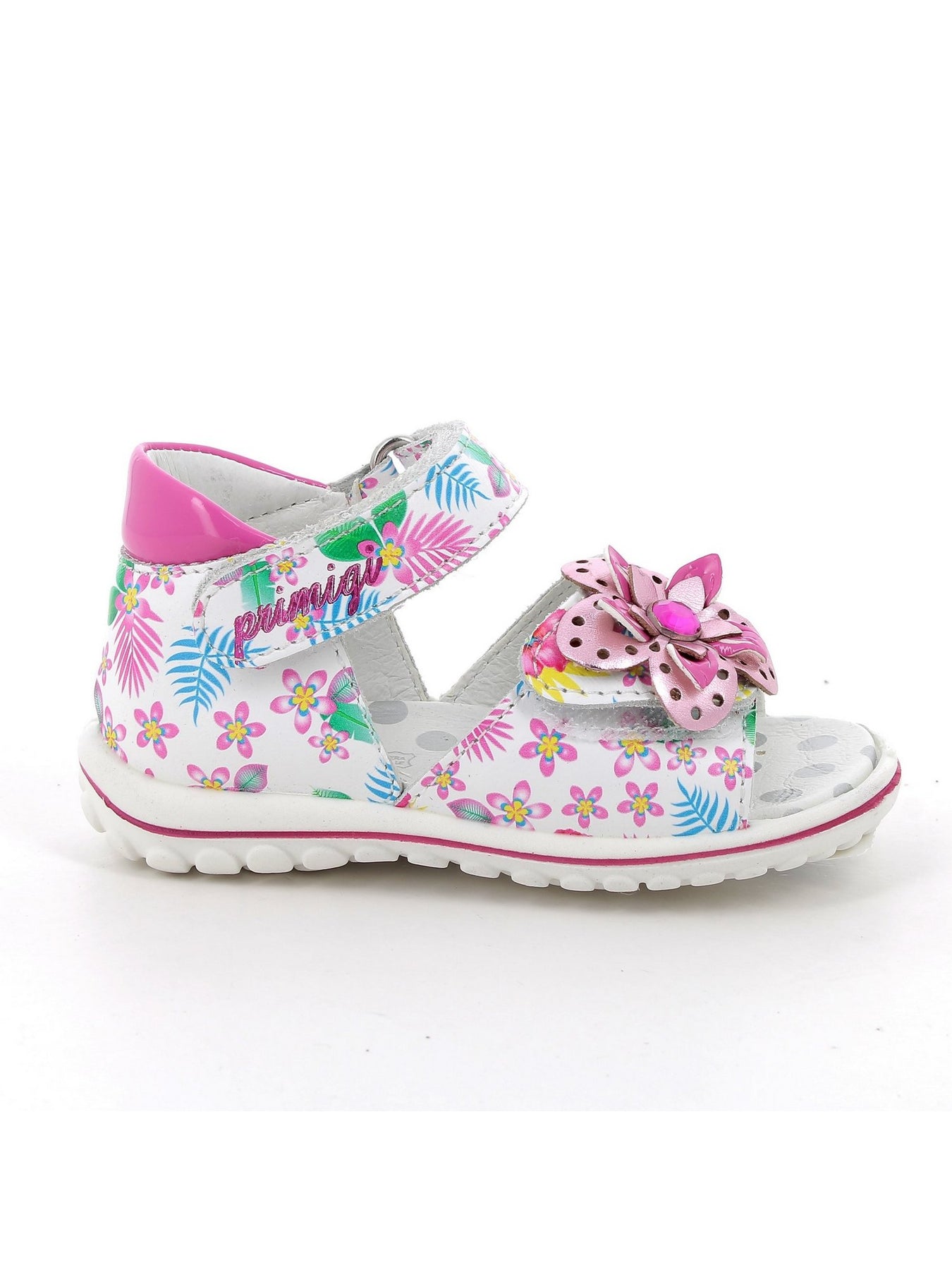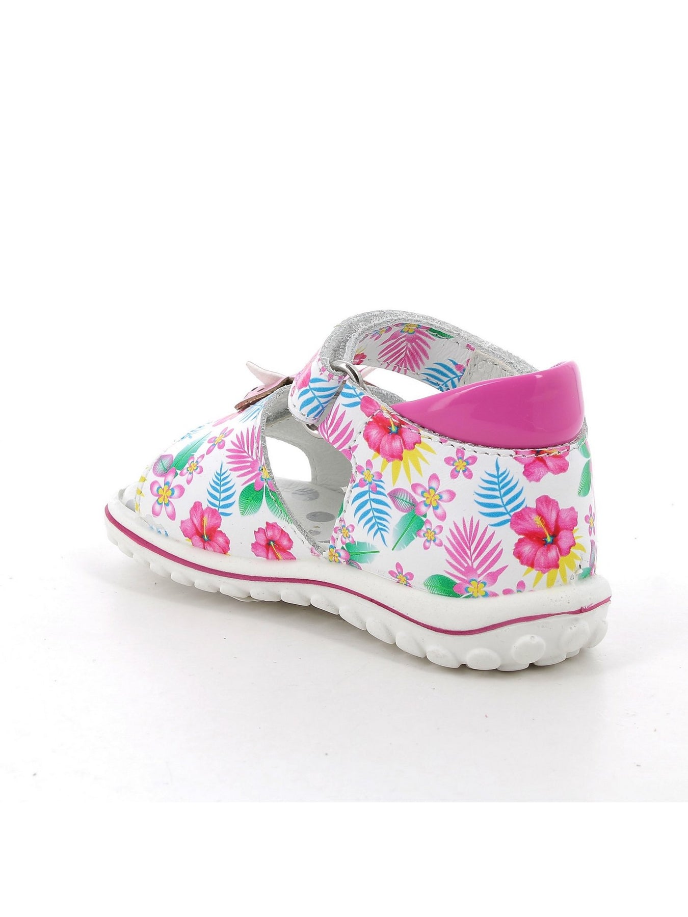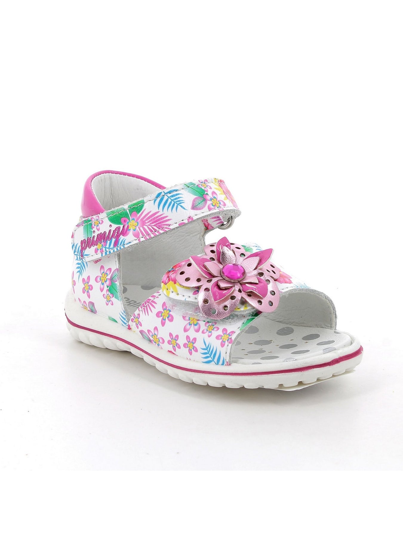Il sandalo PRIMIGI 78648 in versione multicolor è perfetto per le bambine che amano il comfort e il divertimento senza rinunciare a un look vivace. La tomaia in pelle bianca è decorata con un pattern floreale in diverse tonalità di rosa, viola, giallo e verde, che danno un tocco di freschezza e allegria.