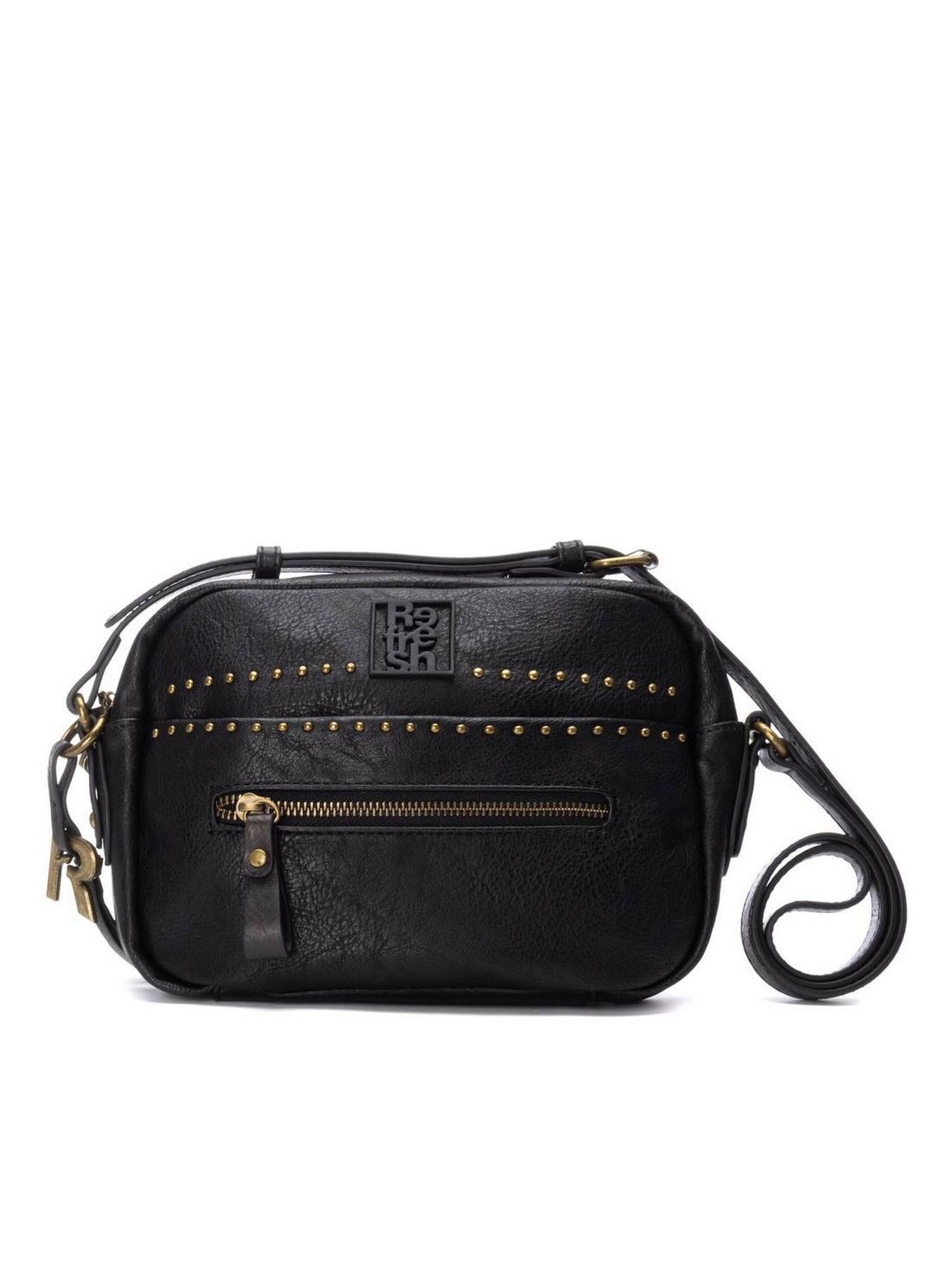 REFRESH Borsa Donna - 183313 Nero Borsa donna a tracolla in materiale vegano nero con dettagli gold e zip frontale.