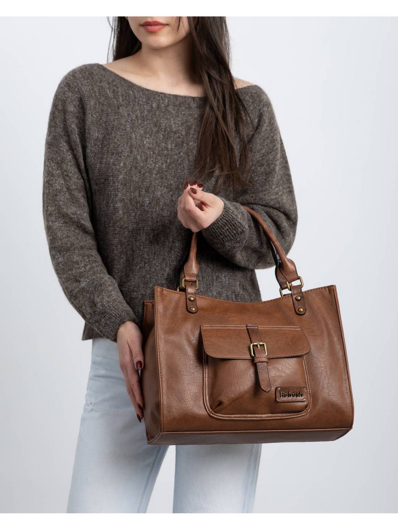 REFRESH Borsa Donna - 183318 Camel Borsa donna in materiale vegano camel con doppi manici e tracolla regolabile.