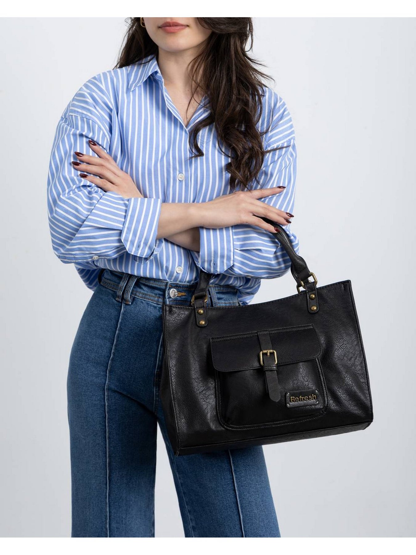 La REFRESH 183318 Nero è una borsa elegante e funzionale, realizzata in morbida similpelle certificata vegana da PETA, perfetta per chi cerca uno stile moderno e cruelty-free.