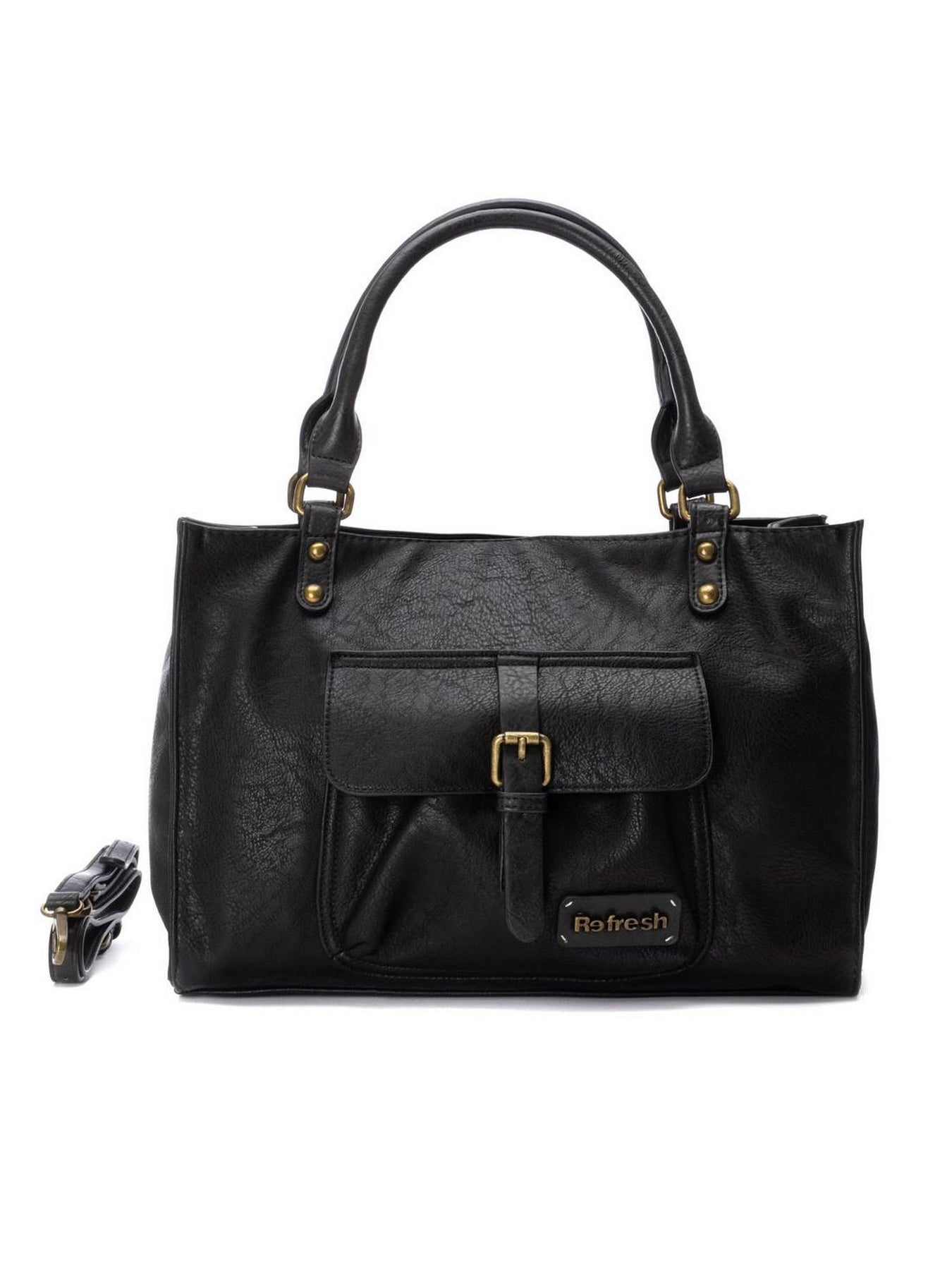 REFRESH Borsa Donna - 183318 Nero Borsa donna in materiale vegano nero con doppi manici, tracolla regolabile e tasca frontale.