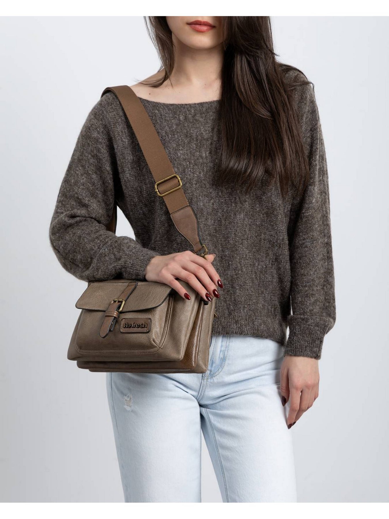 REFRESH Borsa Donna - 183319 Taupe Borsa donna a tracolla in materiale vegano taupe con tasca frontale e chiusura zi