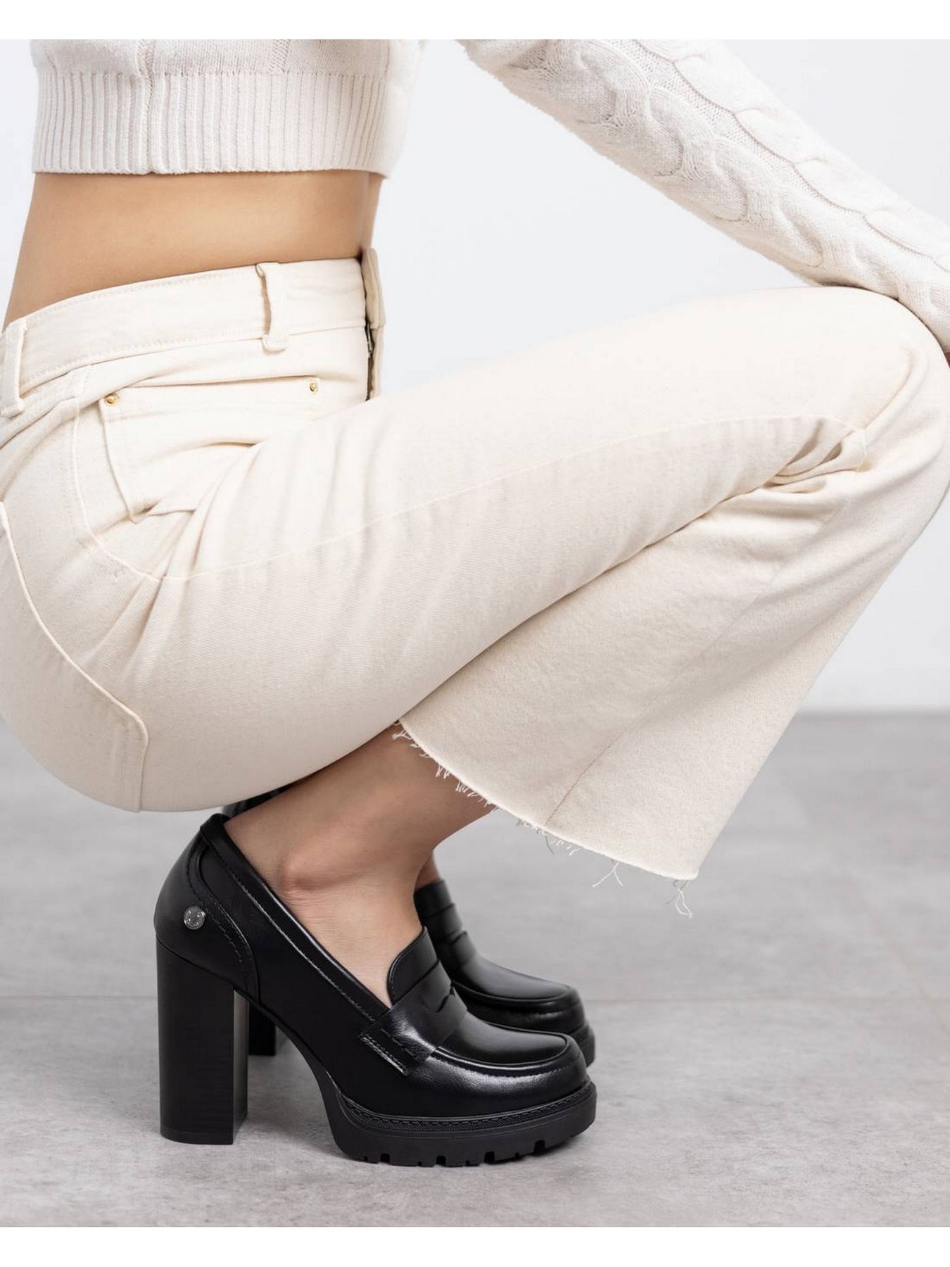REFRESH Mocassino Tacco Alto Donna - 172927 Nero Mocassino donna in ecopelle nera con tacco alto 10 cm e suola carrarmato, grintoso e chic.