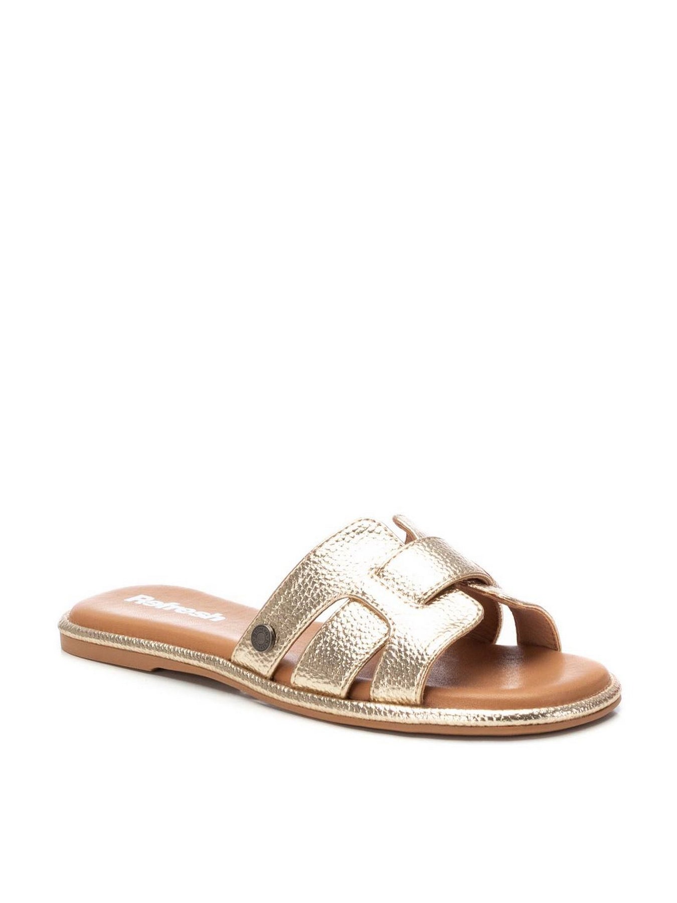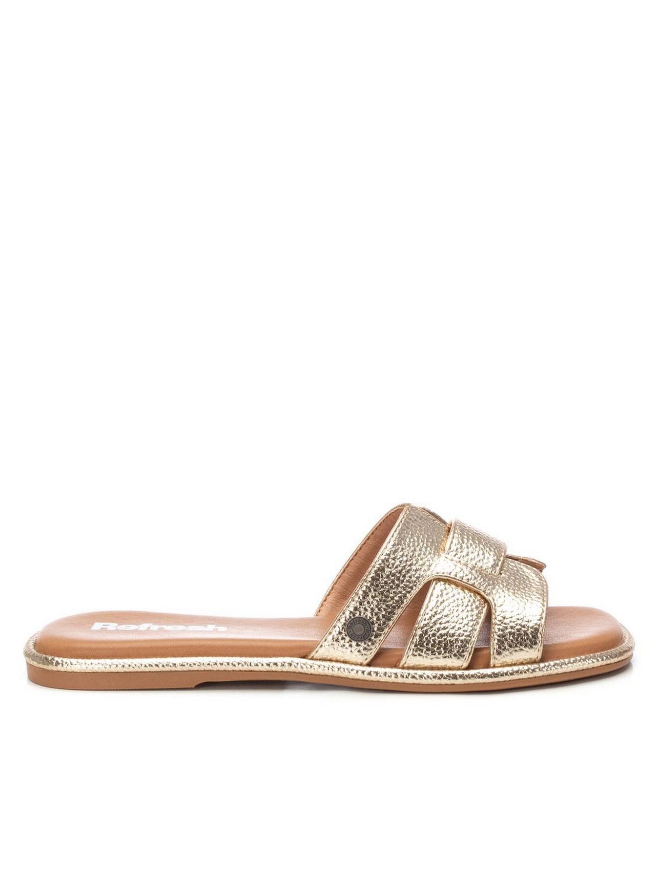 Versatile e alla moda, il REFRESH Sandalo Basso Donna in oro è l'alleato perfetto per chi cerca stile, comfort e praticità, rendendolo ideale per ogni momento della giornata.