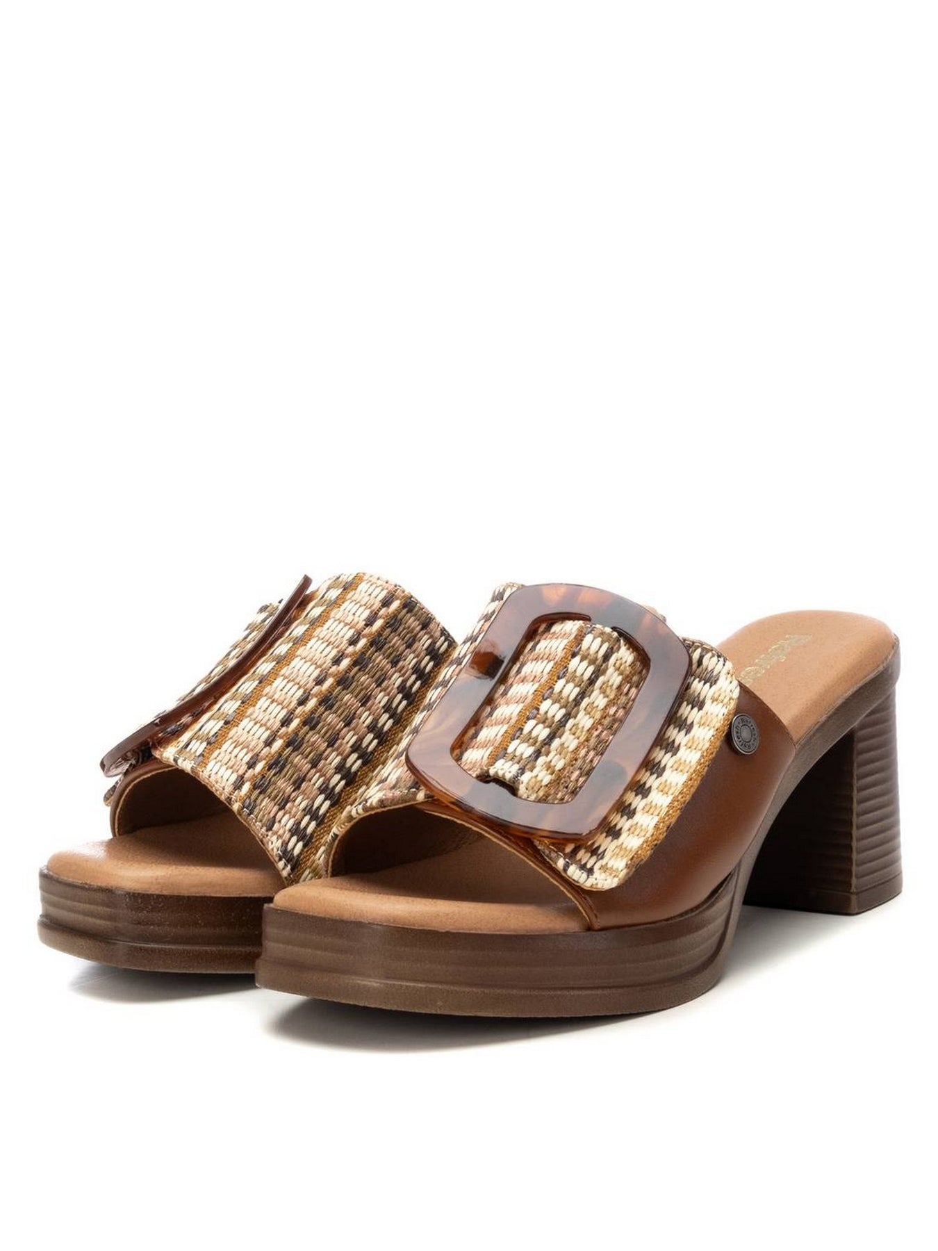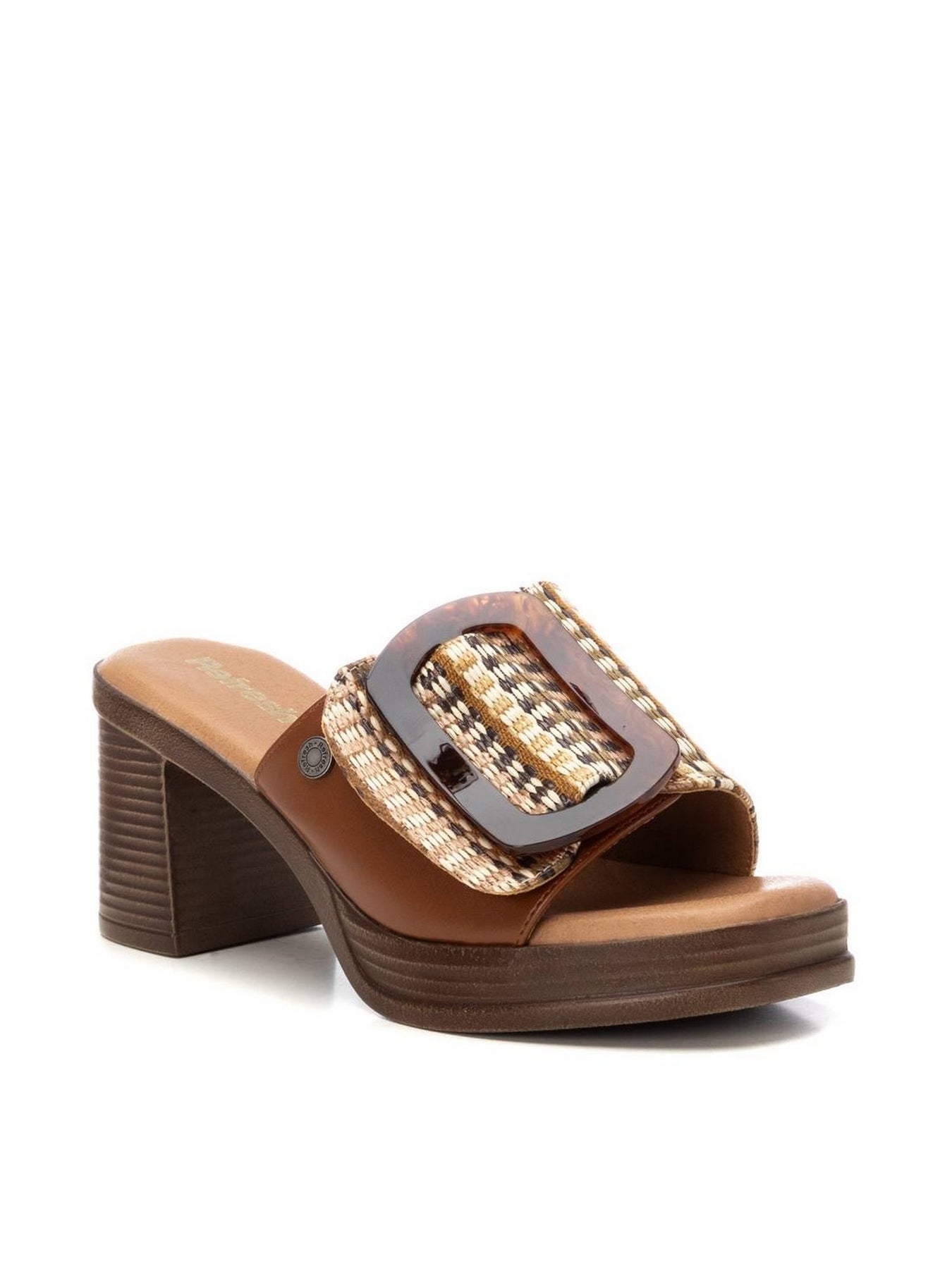 Perfetto per chi desidera una calzatura versatile, chic e rispettosa dell'ambiente, il REFRESH Sandalo Tacco Medio Camel è ideale per completare con stile ogni look estivo.