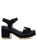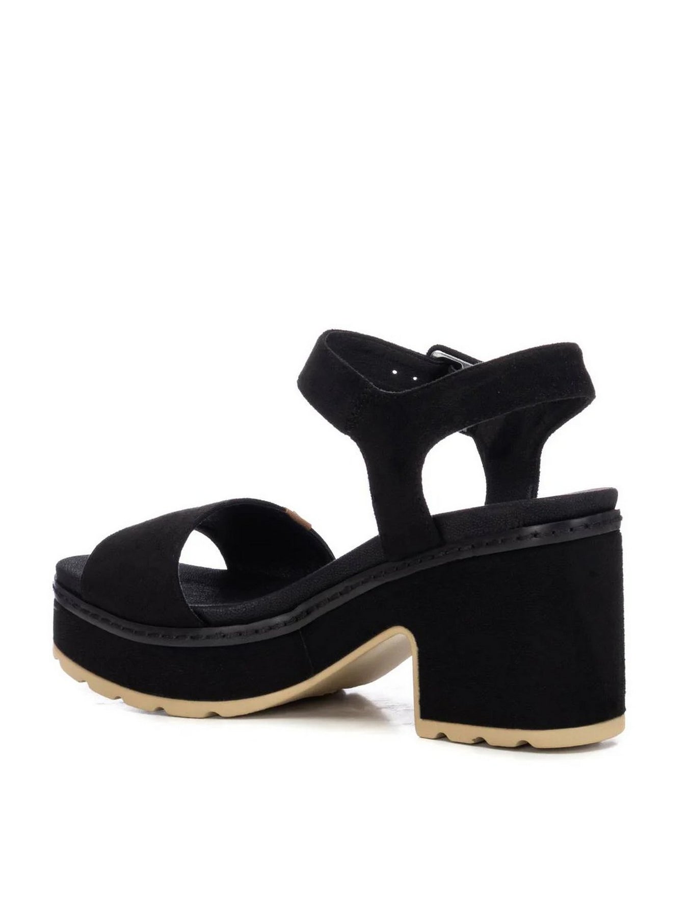 La tomaia in materiale effetto suede total black con cinturino alla caviglia e fibbia tono su tono crea un look moderno e versatile. Il tacco largo e il plateau assicurano comodità e slancio, mentre la suola antiscivolo garantisce sicurezza ad ogni passo.