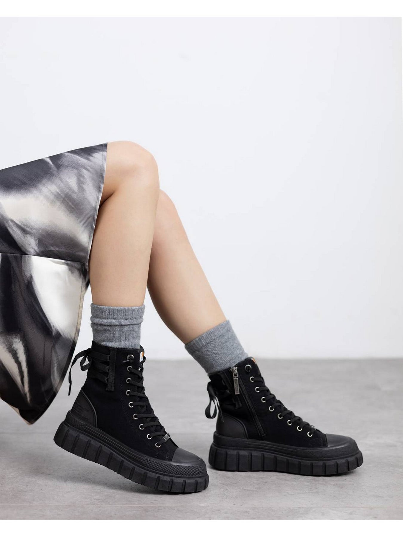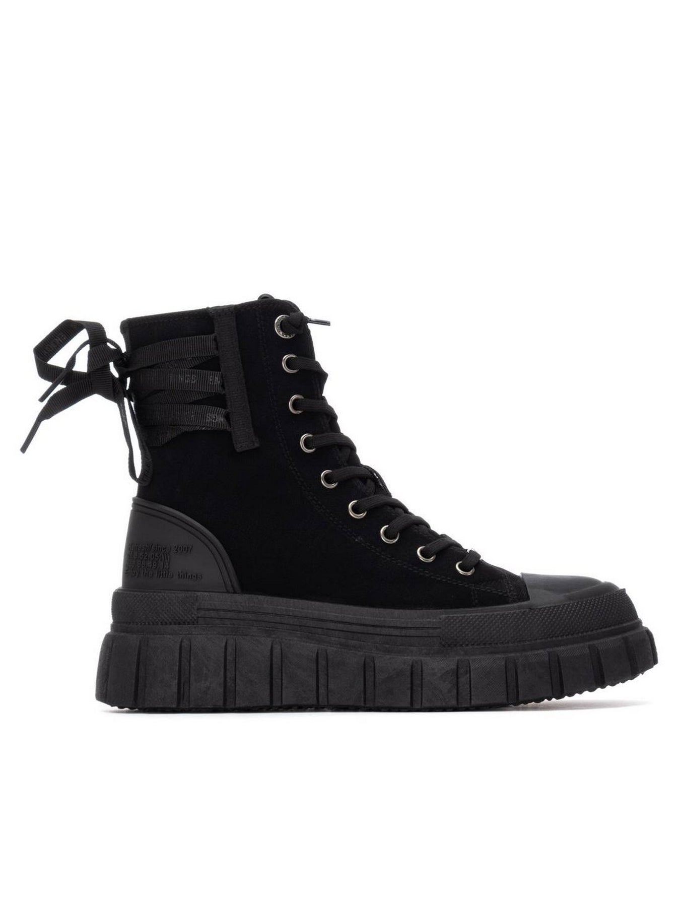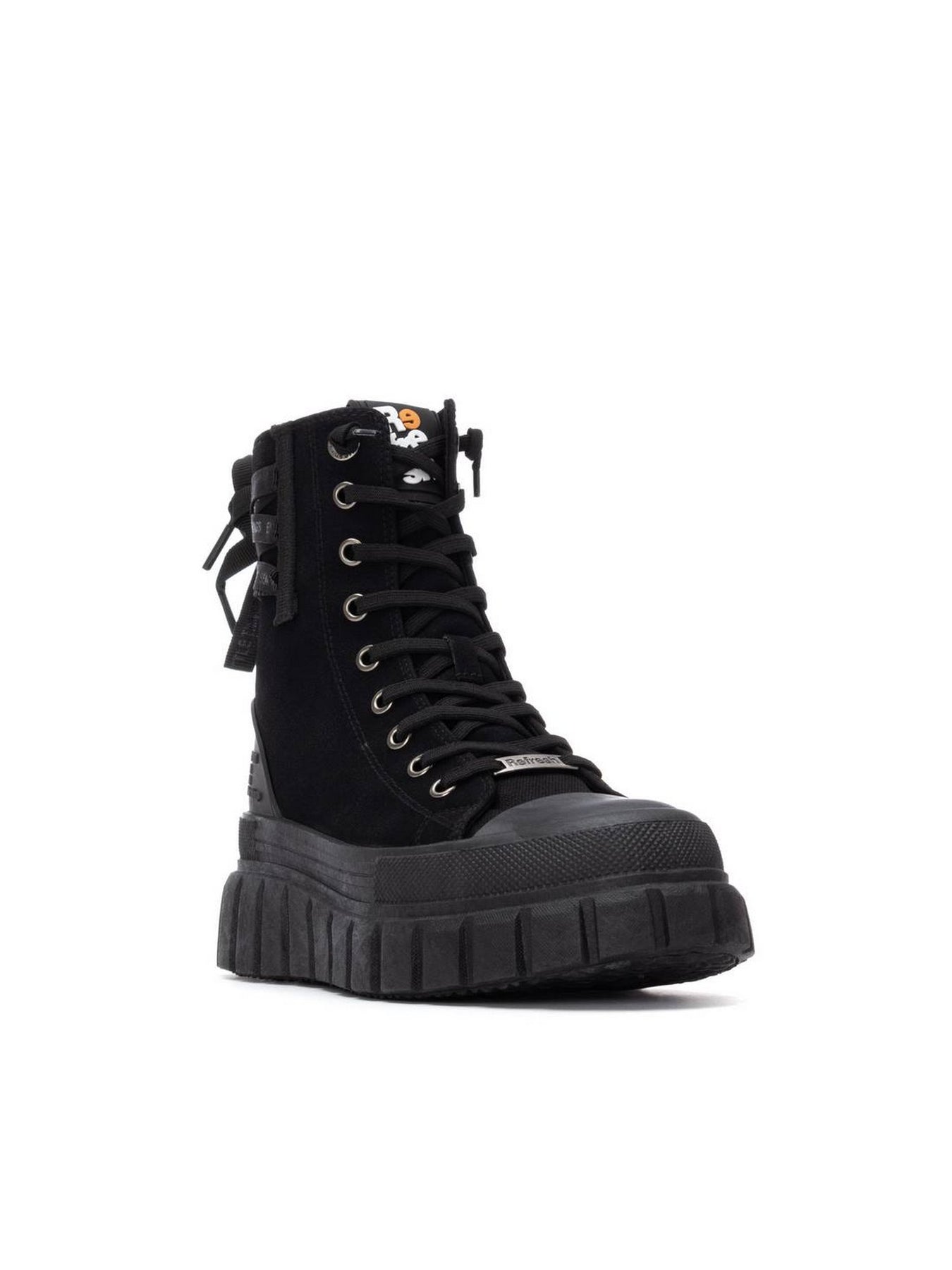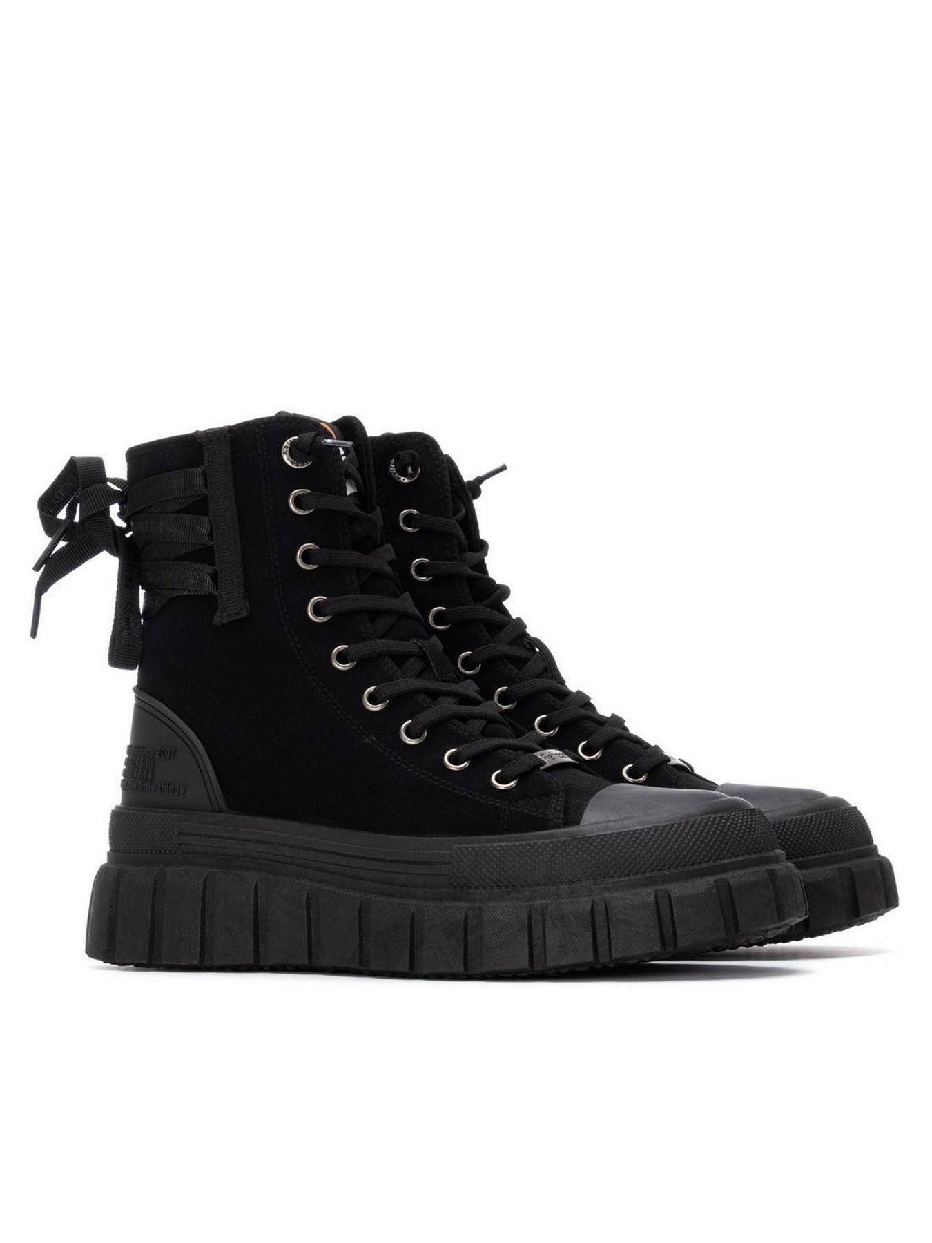 La sneaker alta REFRESH 173077 da donna unisce design di tendenza e praticità quotidiana. Realizzata in tessuto effetto scamosciato nero, presenta occhielli metallici e chiusura a stringhe per una calzata stabile e regolabile.