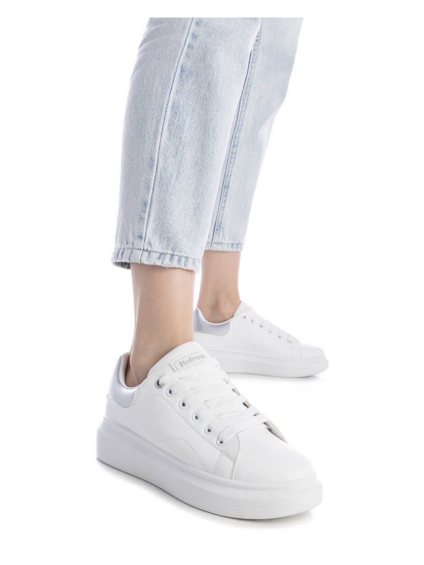 La sneaker bassa REFRESH modello 172835 in colore plata è la scelta perfetta per chi desidera un tocco di brillantezza nel proprio look. Il design moderno e il colore metallico la rendono ideale per chi cerca uno stile audace e alla moda, facile da abbinare a outfit casual e trendy.
