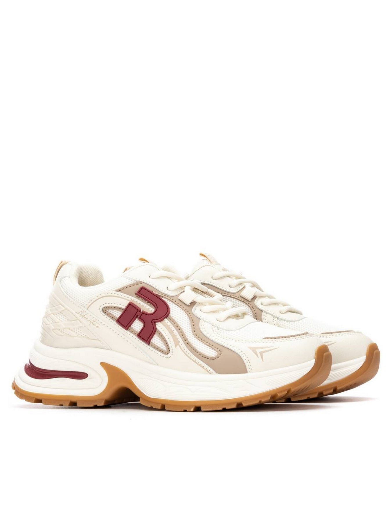 La sneaker REFRESH 173052 in beige è il mix perfetto tra stile sportivo e design trendy. Caratterizzata da una tomaia in materiale tecnico con inserti beige, panna e bordeaux, dona un tocco originale e deciso a ogni passo. Il logo “R” in rilievo sul lato enfatizza l'identità urban del modello.
