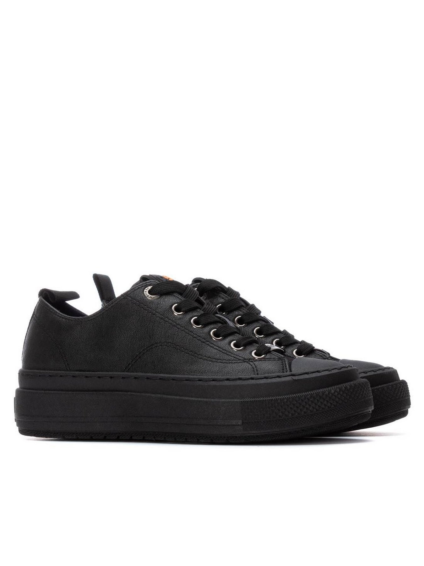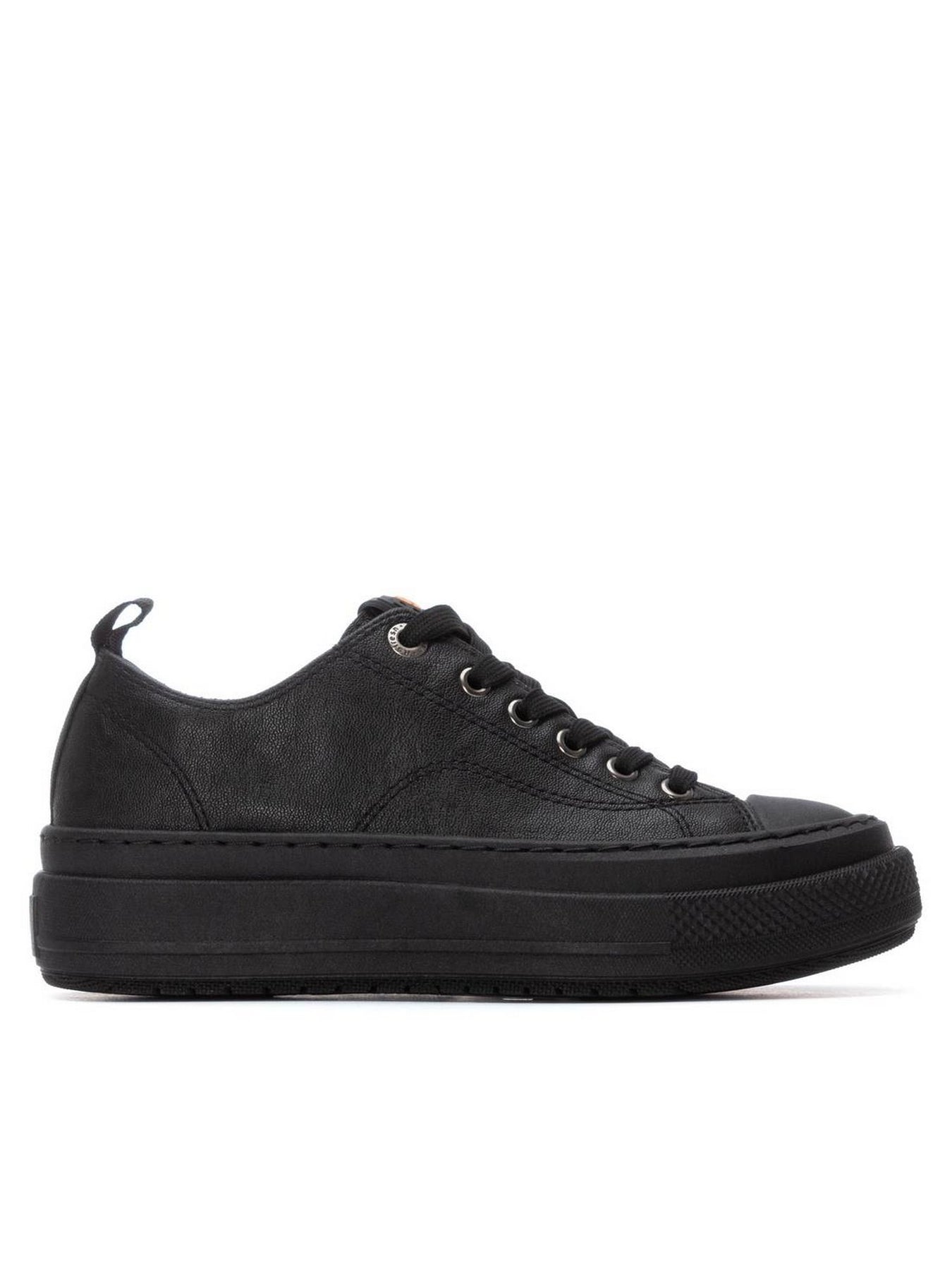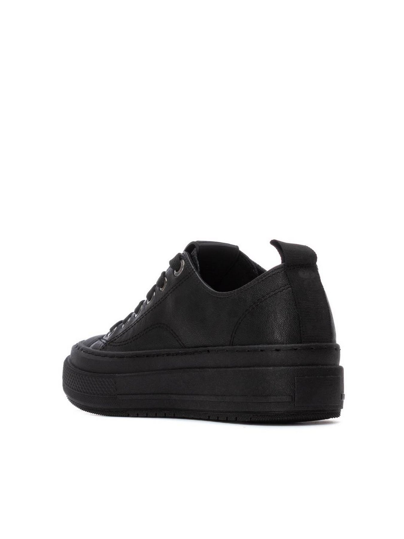 La sneaker REFRESH 173072 in nero è la scelta perfetta per chi ama uno stile essenziale ma grintoso. Il design monocromatico e la tomaia effetto opaco creano un look pulito ma di forte impatto, esaltato dalla suola platform total black che slancia e dona carattere.