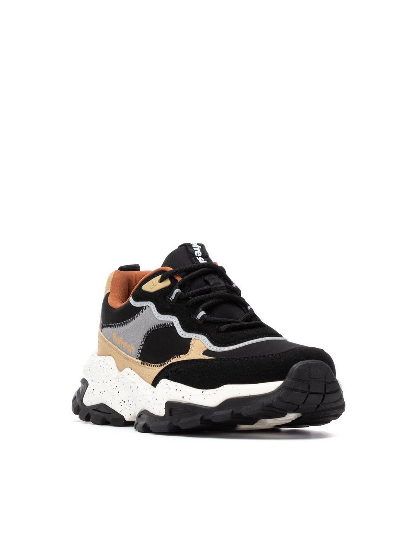 REFRESH Sneaker Bassa Donna – 173104 Nero Sneaker sportiva bassa in nero con inserti beige e grigi, suola chunky maculata e design urban di tendenza. Comfort e stile per ogni occasione casual.