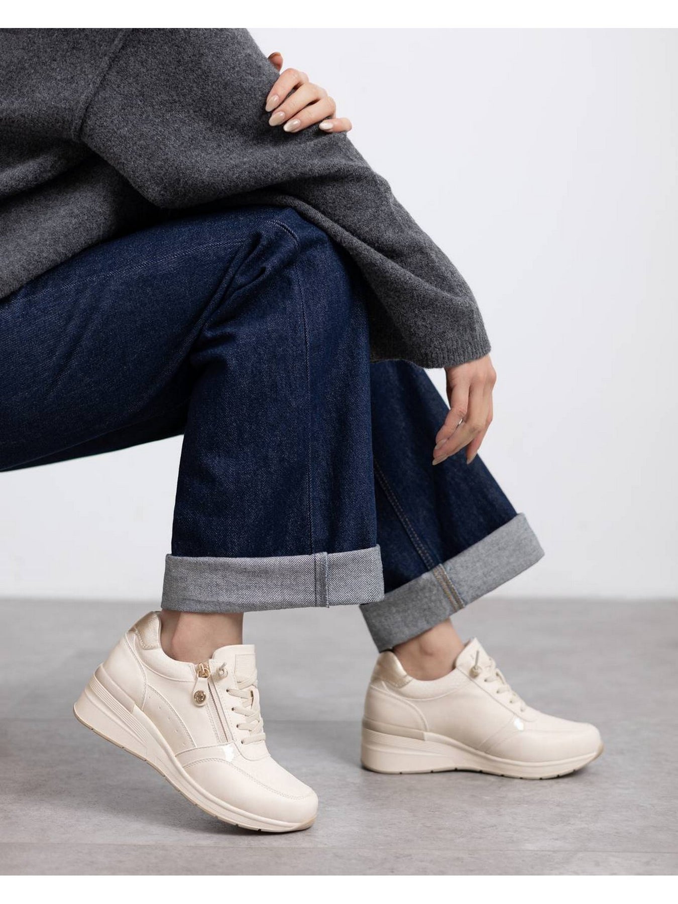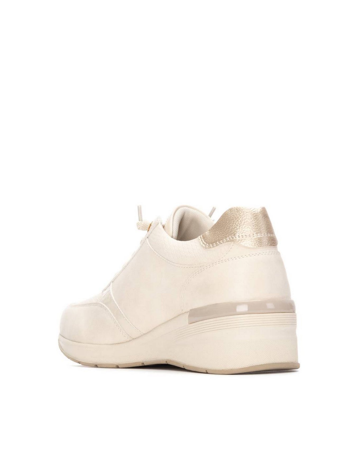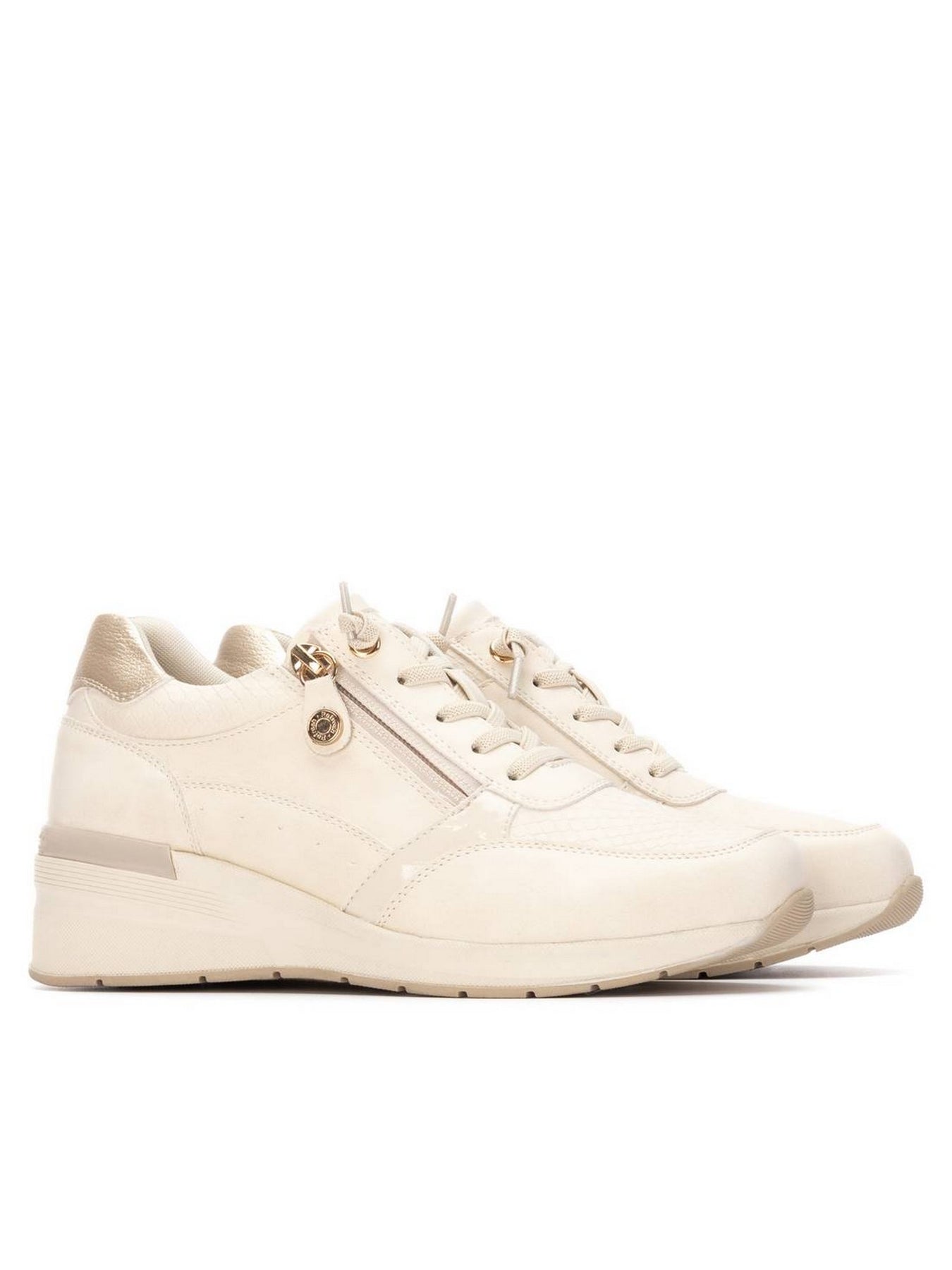 La sneaker REFRESH 172936 in beige con zeppa interna è la scelta ideale per chi cerca una scarpa comoda ma elegante. Il design sobrio è arricchito da dettagli dorati, inserti lucidi e una zip laterale decorativa, per un tocco femminile e moderno.