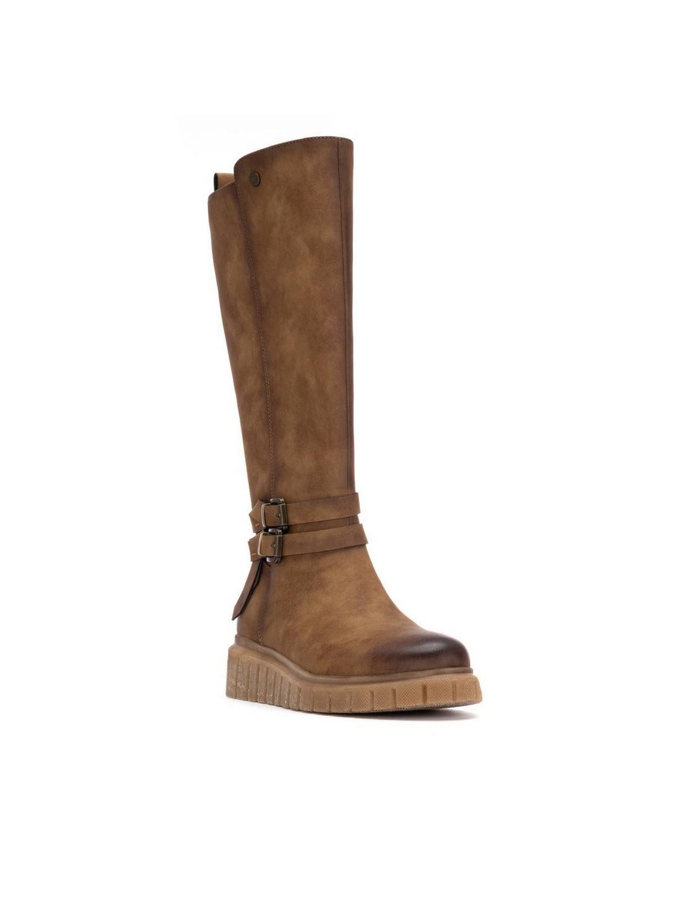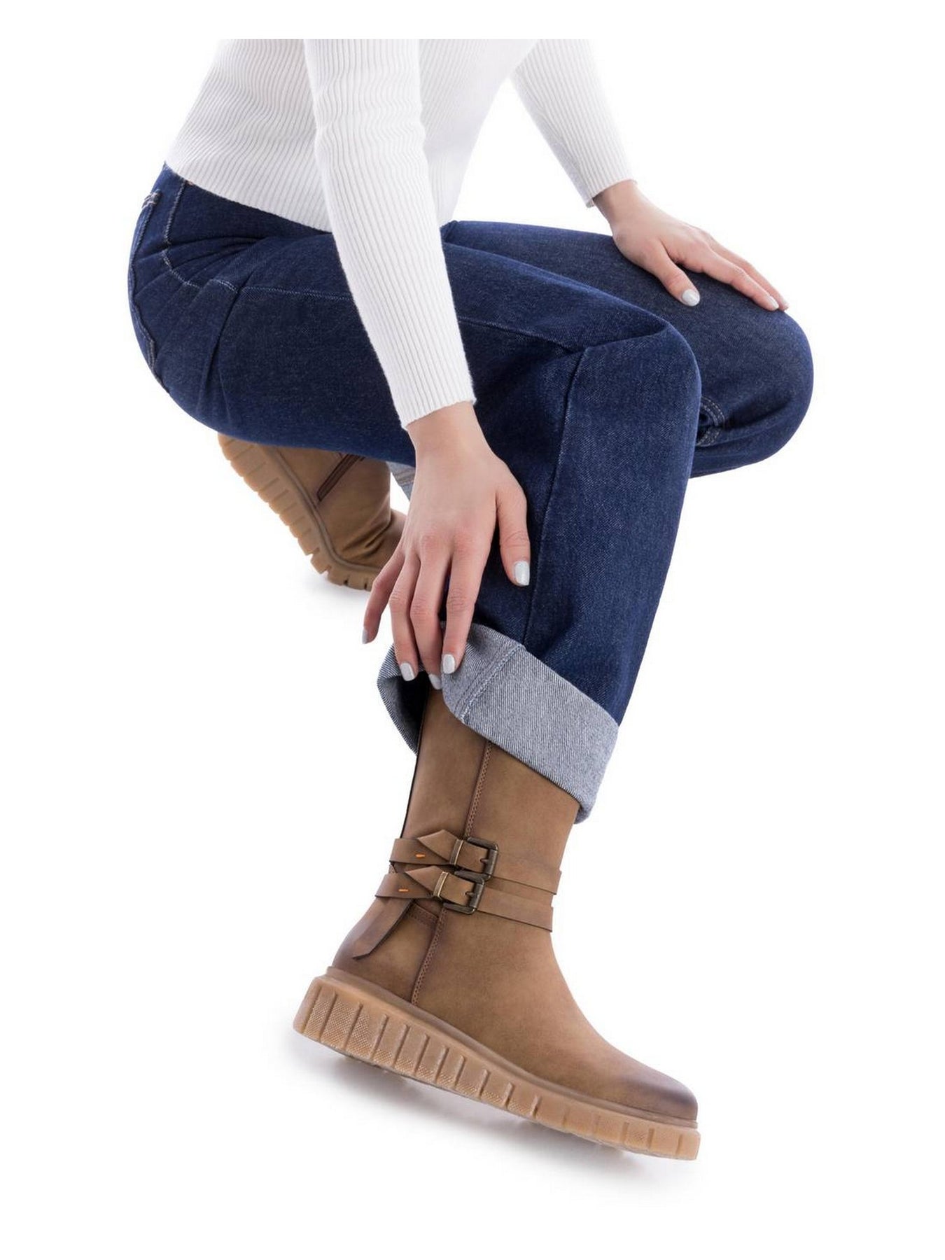 REFRESH Stivale Con Zeppa Donna - 173212 Camel Stivale donna in ecopelle camel con cinturini laterali e zeppa 5 cm, trendy e confortevole.