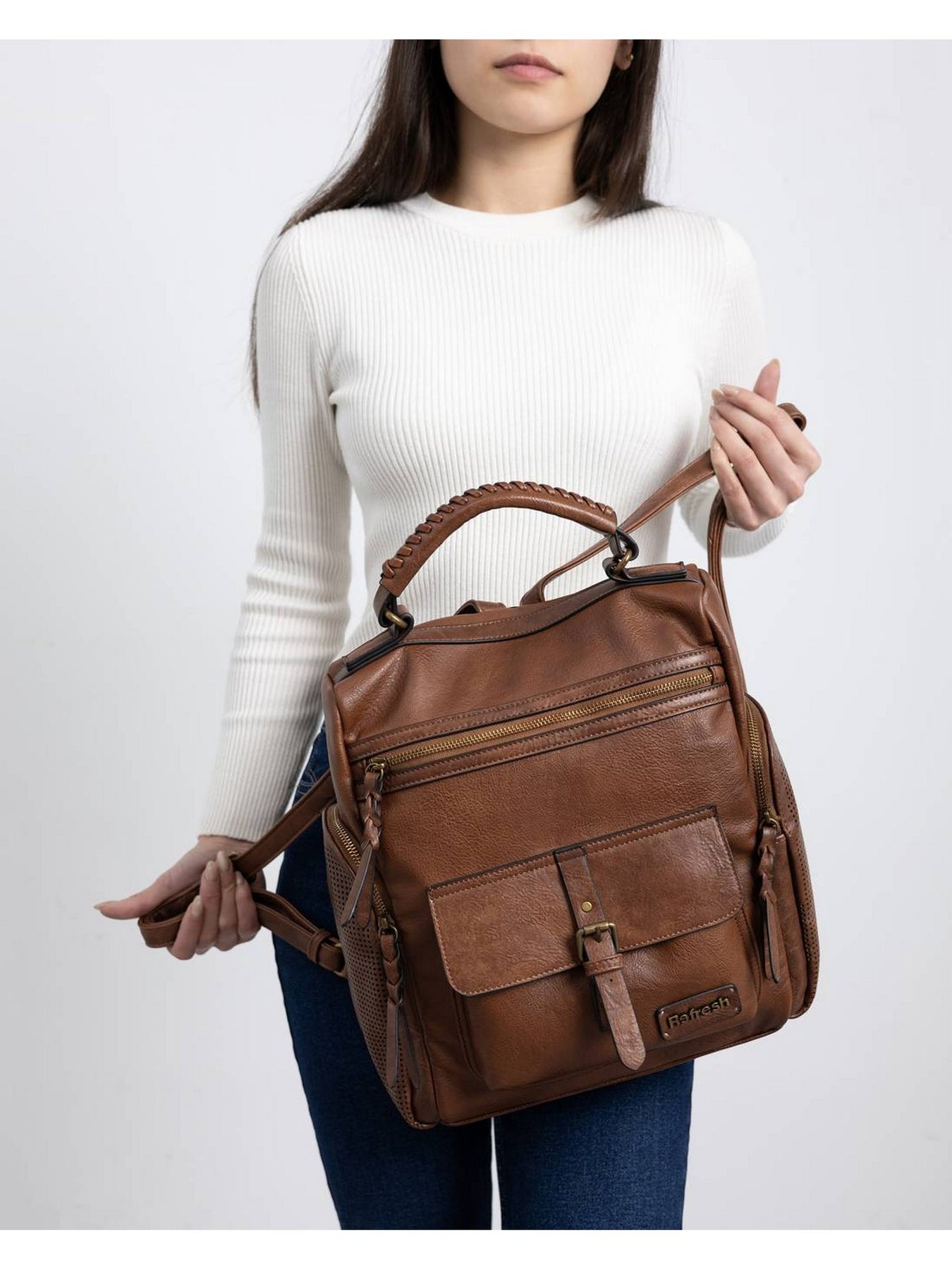 Il REFRESH 183317 Camel è uno zaino dallo stile contemporaneo e funzionale, realizzato in morbida similpelle certificata vegana da PETA, ideale per chi desidera un accessorio trendy e sostenibile.