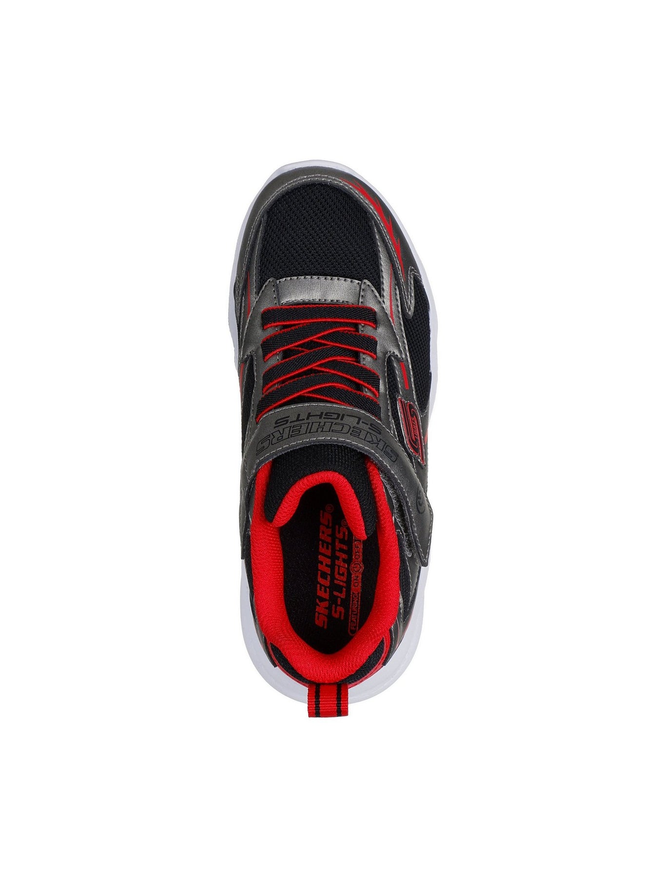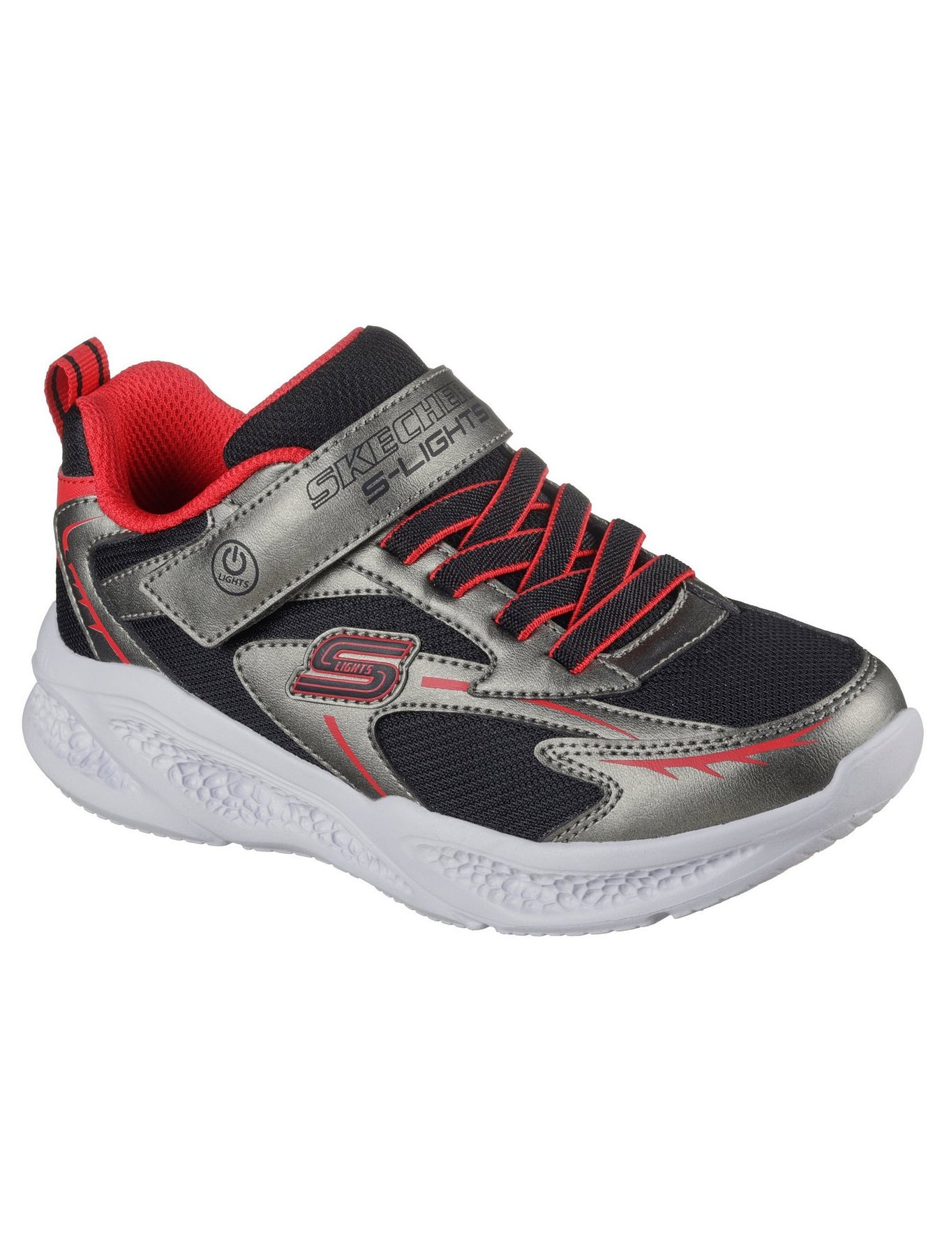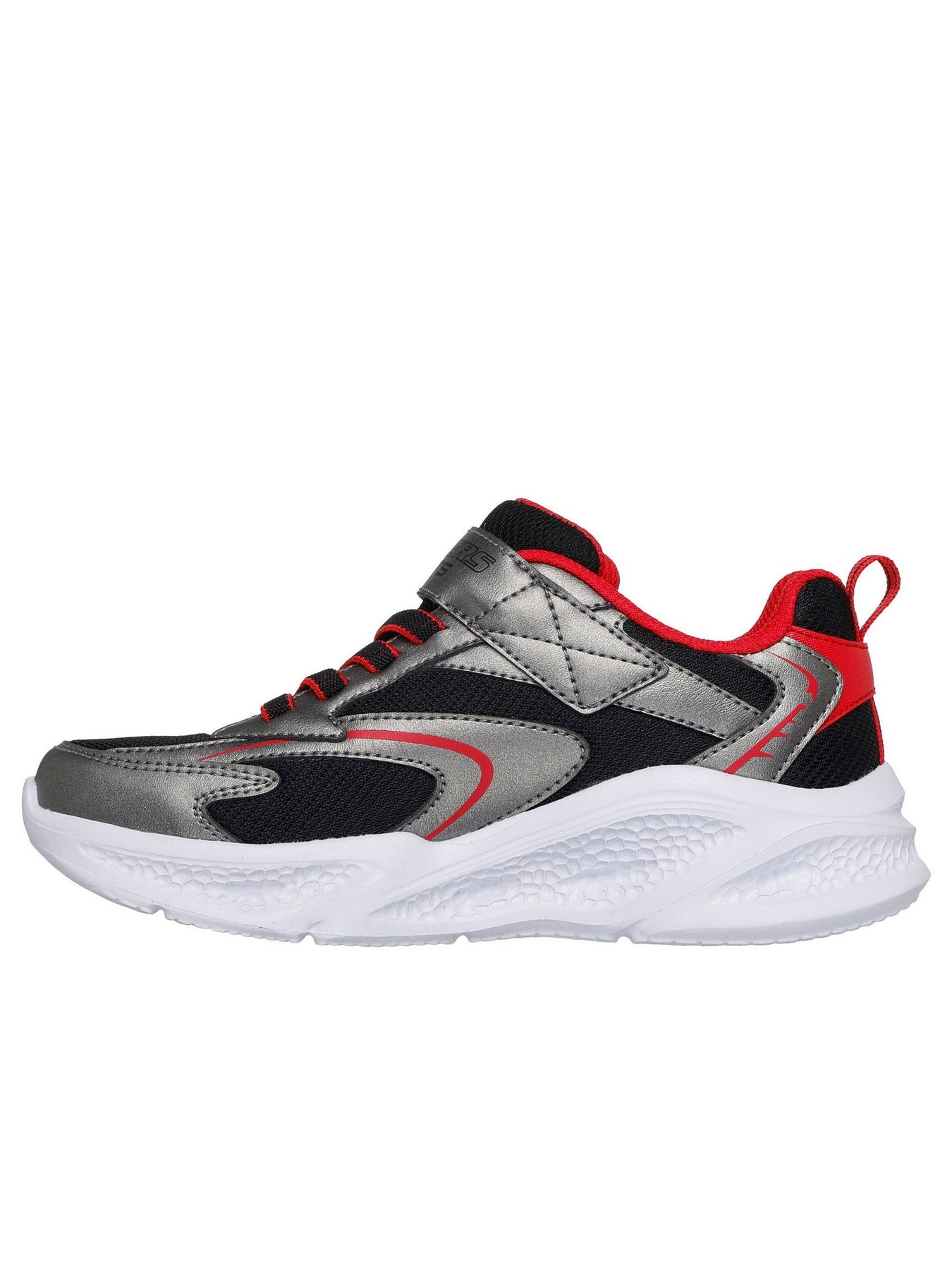 La sneaker SKECHERS 401497L Rosso/Argento è pensata per i bambini che amano comfort e stile con un tocco luminoso. Realizzata in mesh nero con inserti argento metallizzato e dettagli rossi, presenta logo laterale SKECHERS e suola con luci integrate che si accendono a ogni passo.