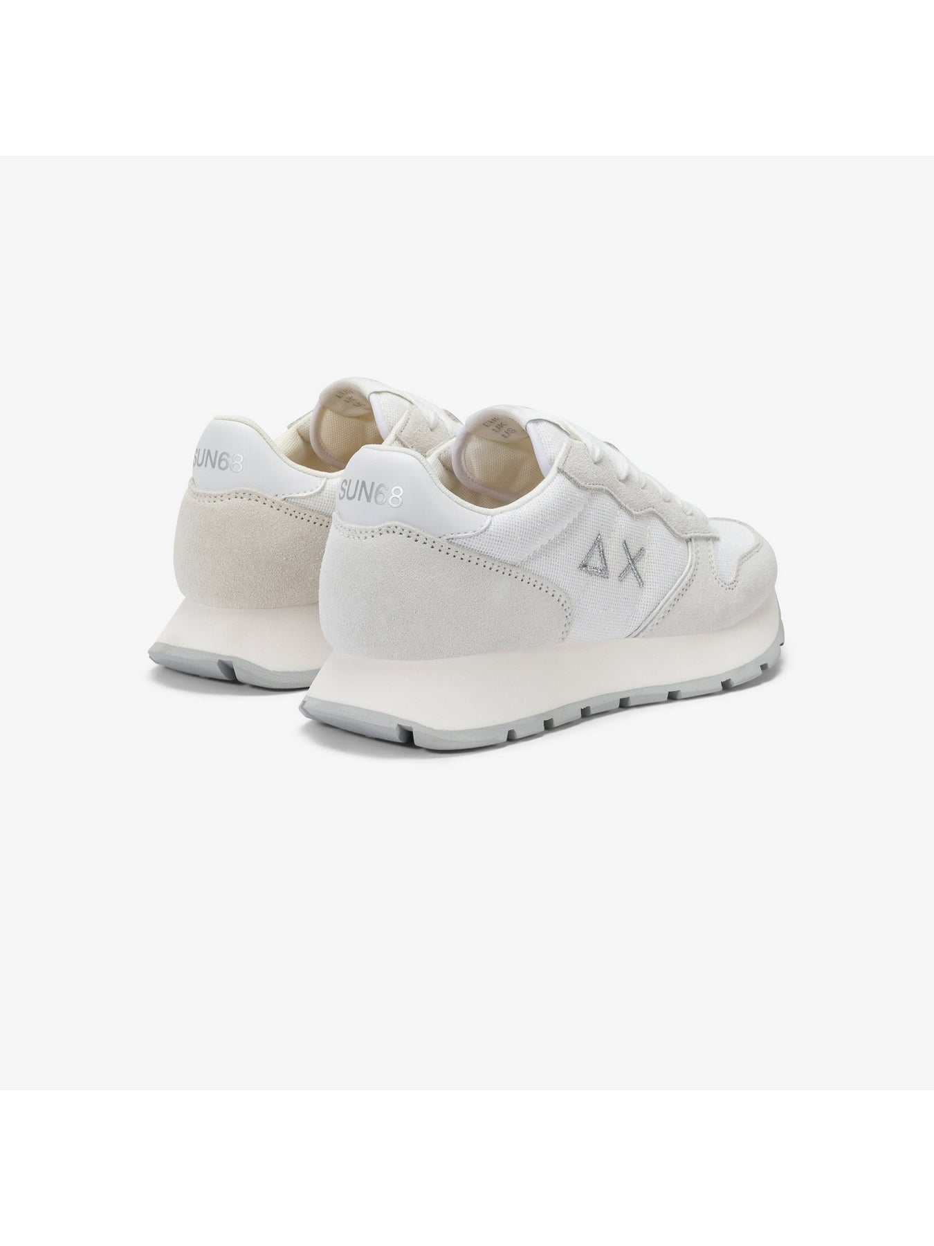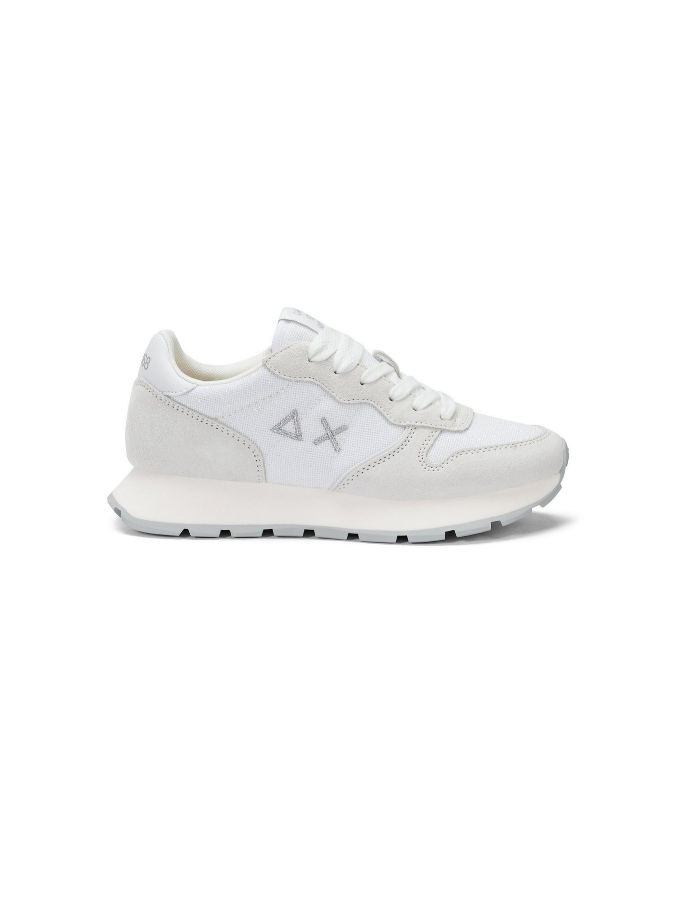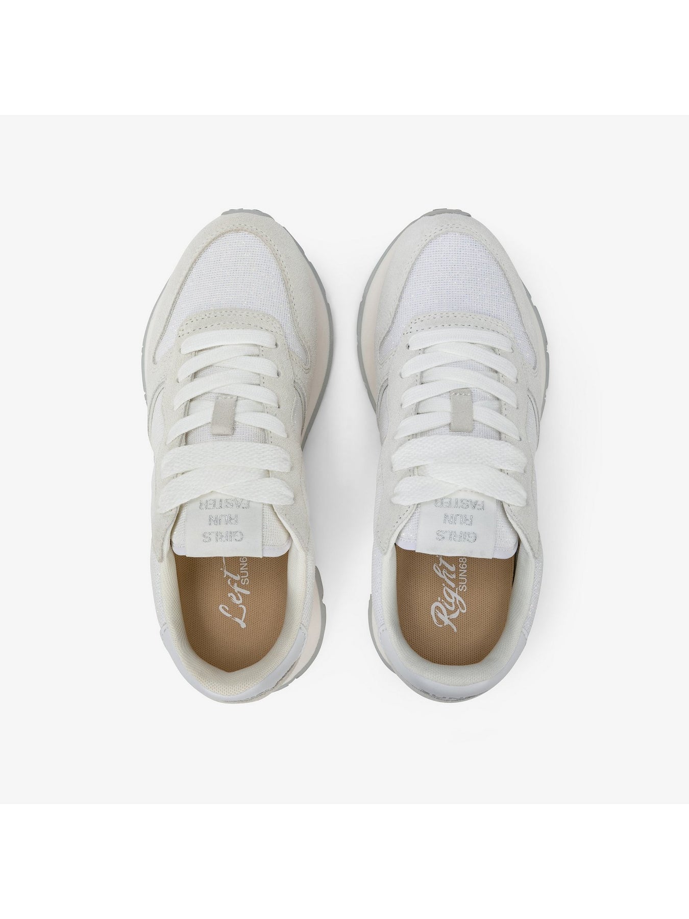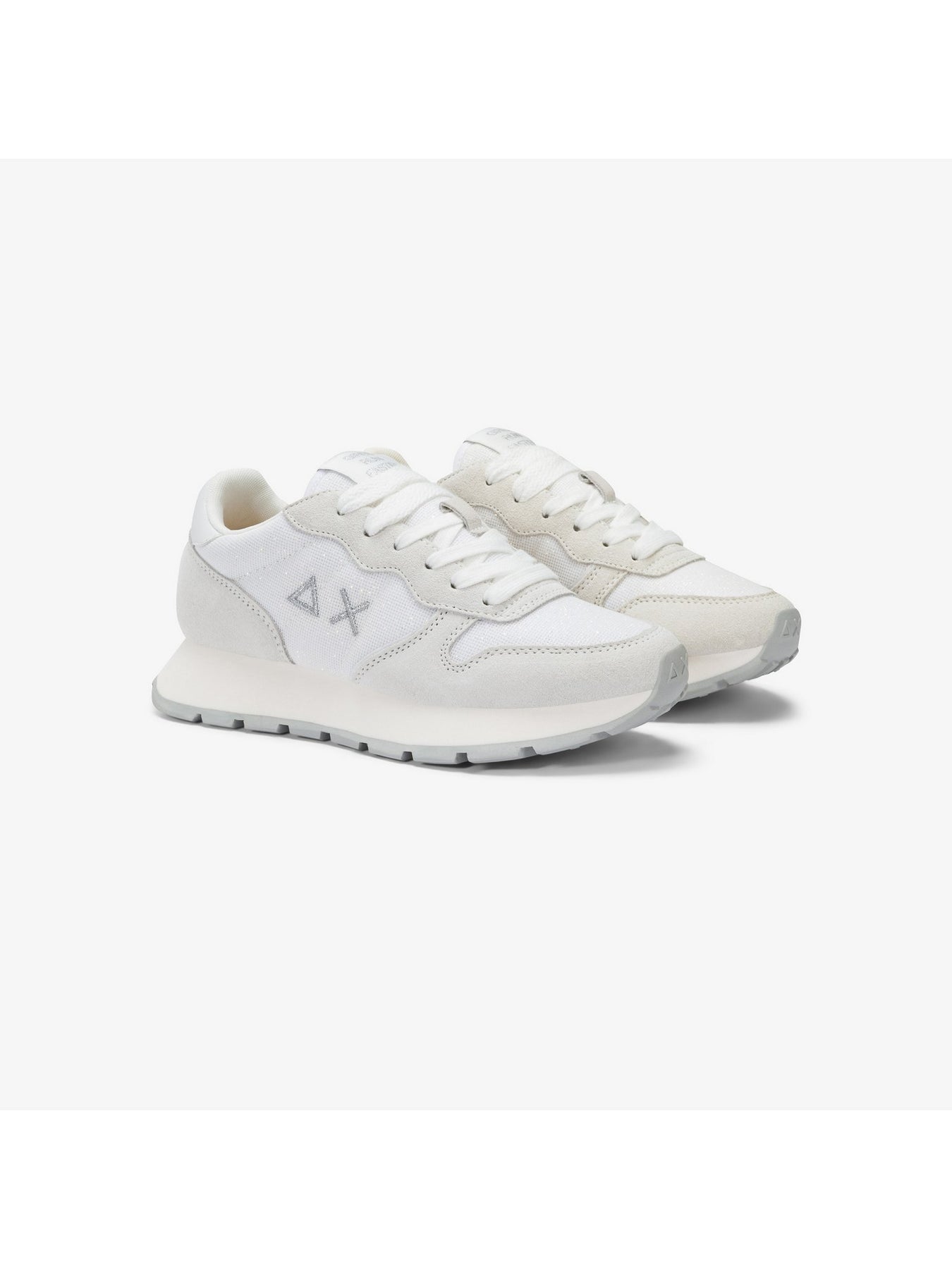- Tomaia in tessuto bianco con dettagli glitter per un look luminoso