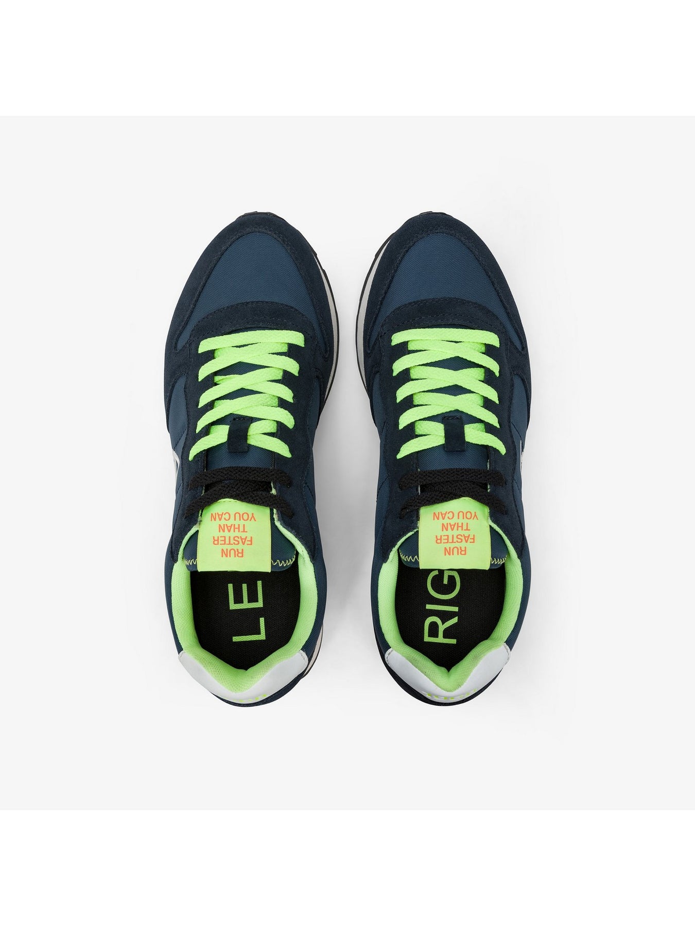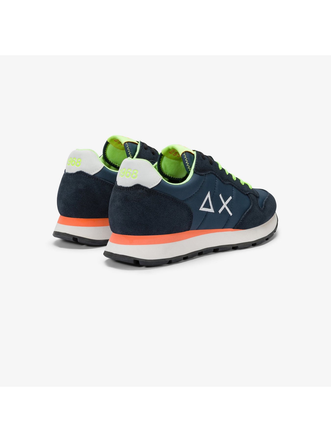 La SUN68 Tom Fluo Sneaker Bassa Uomo - Z35102 Navy Blue è una scarpa dal design moderno, perfetta per chi cerca comfort e stile. La tomaia in tessuto blu navy, resistente e traspirante, è accentuata da dettagli fluo che aggiungono un tocco di colore vivace e dinamico. Il design semplice con logo discreto la rende facilmente abbinabile a look casual o sportivi. La suola in gomma garantisce un comfort ottimale, stabilità e un'ottima aderenza durante l'uso quotidiano.