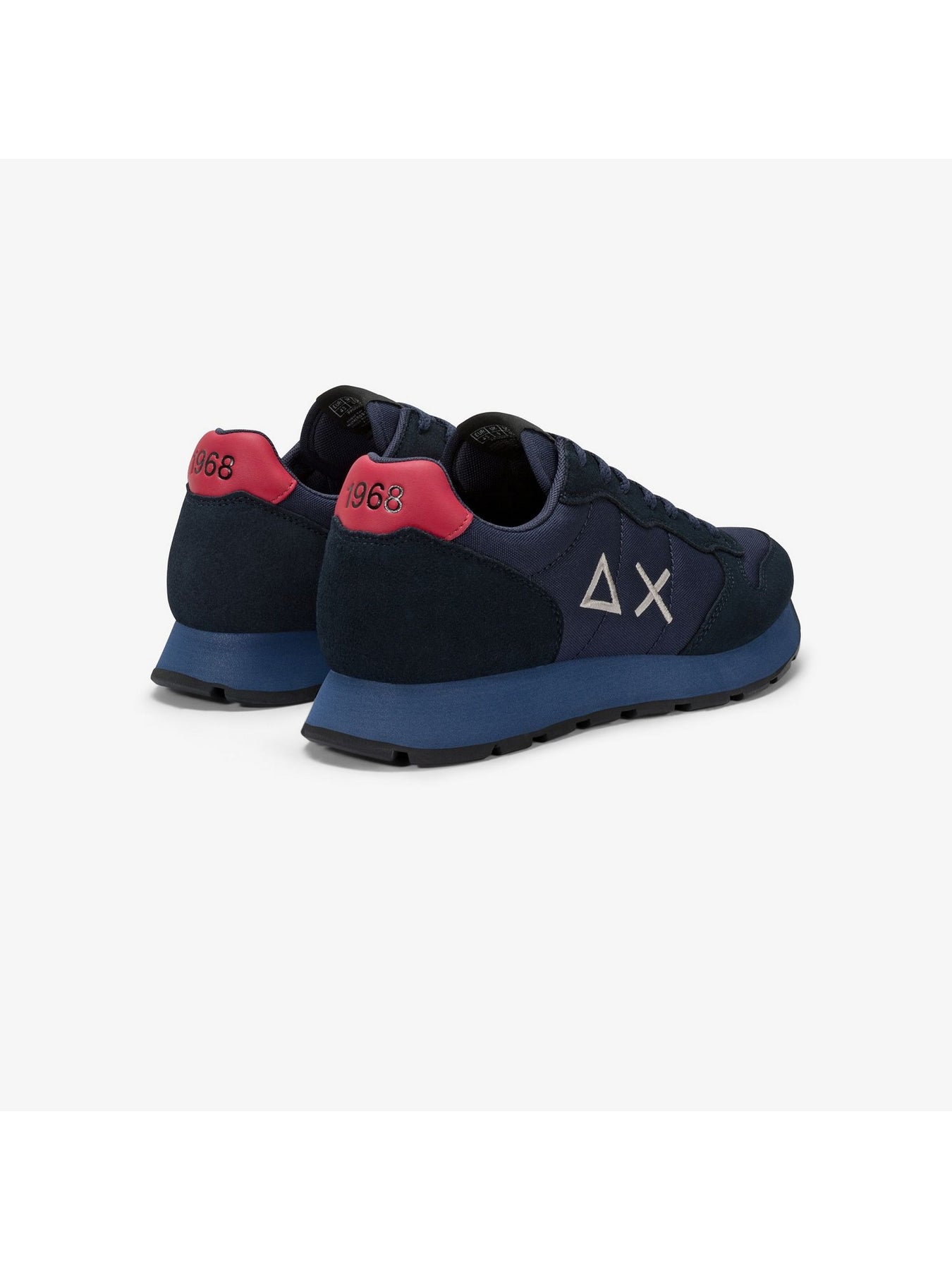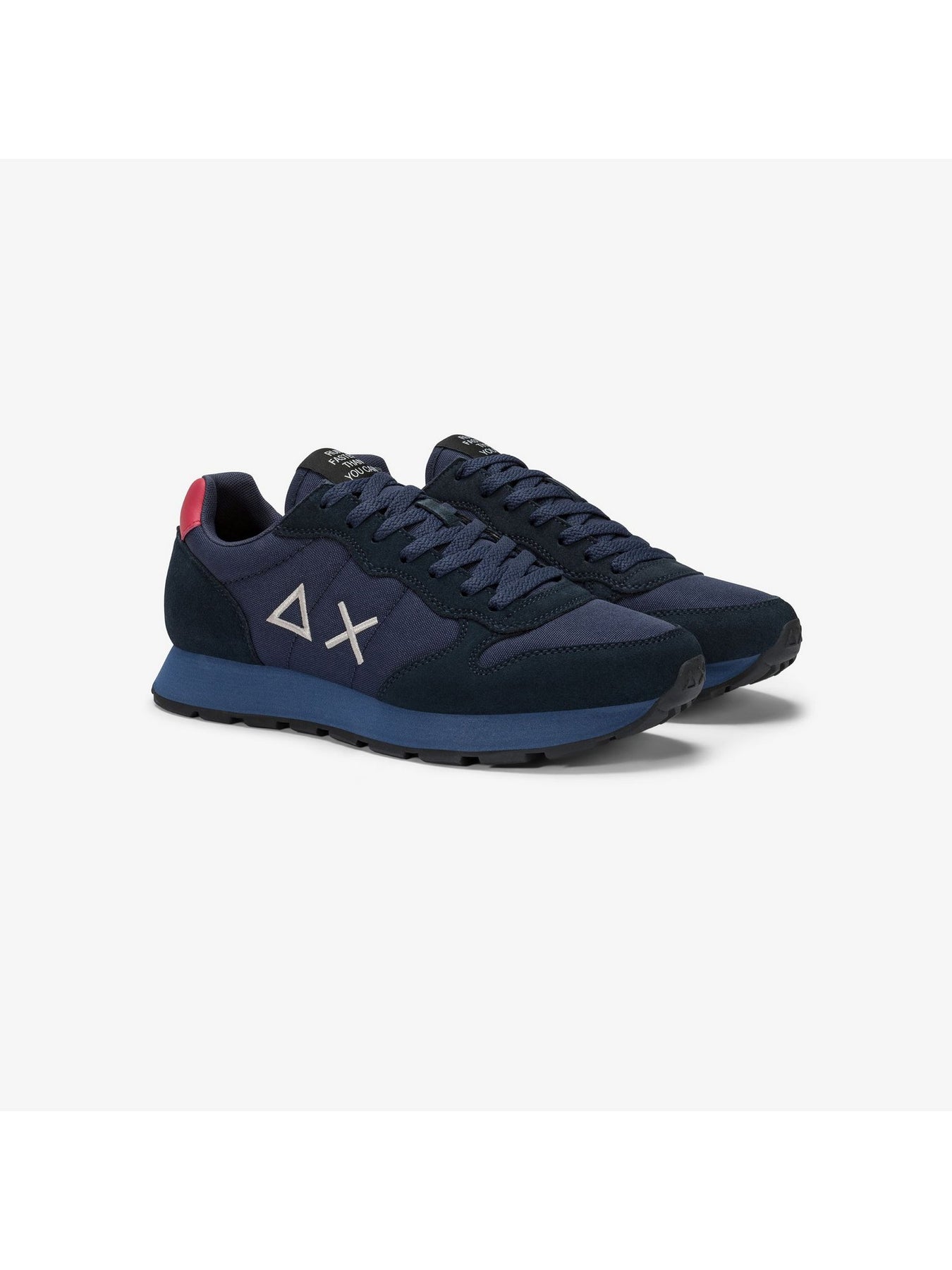 La SUN68 Tom Solid Z45101 è una sneaker versatile e dinamica, perfetta per l'uomo che cerca comfort e stile nelle giornate quotidiane. Realizzata in tessuto tecnico traspirante con inserti in suede, si distingue per il contrasto tra il blu navy e il dettaglio bordeaux sul tallone, arricchito dal logo laterale ricamato.