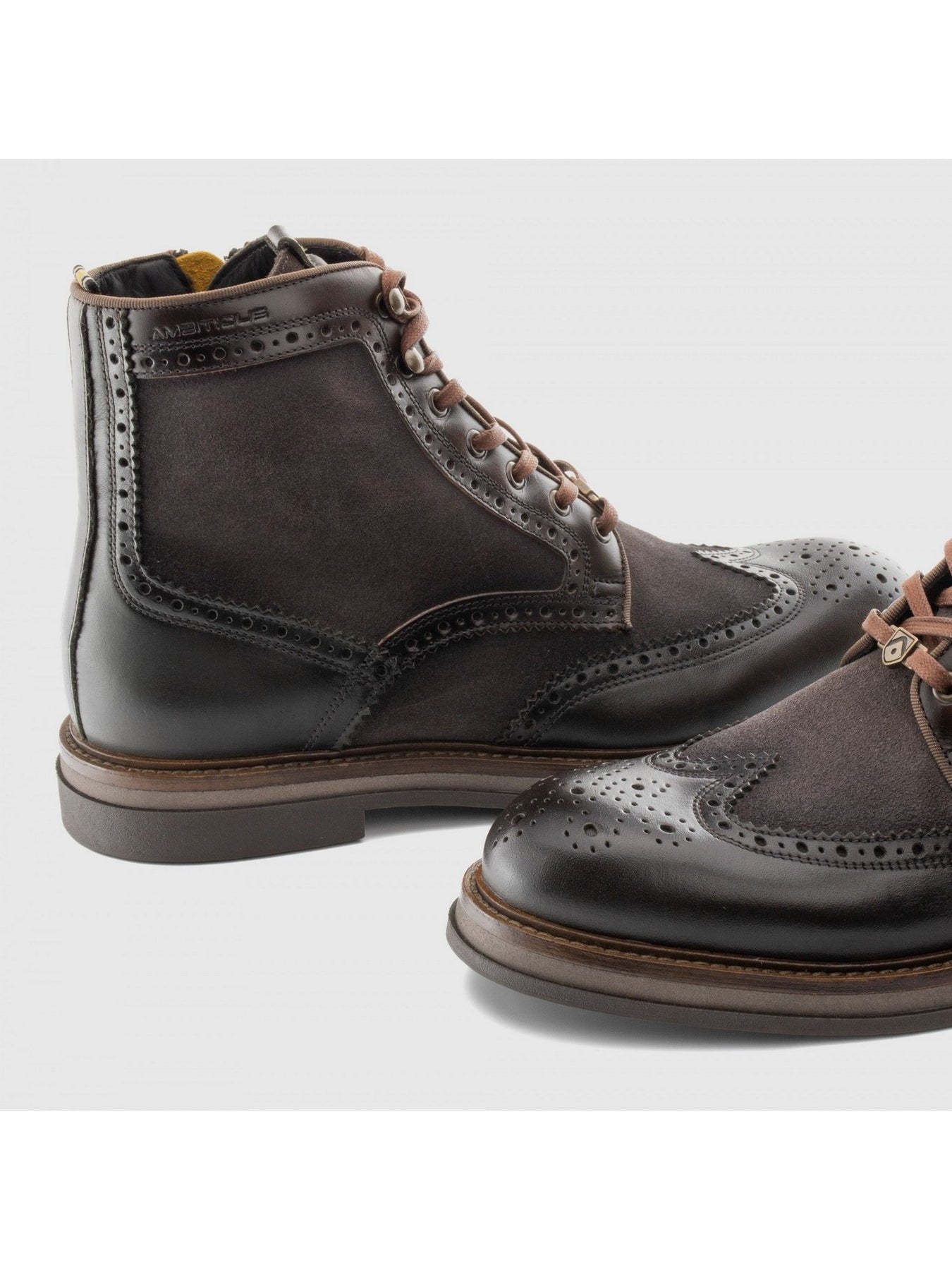 Il modello AMBITIOUS 12432B-1284AM è un anfibio elegante e resistente, pensato per chi desidera una calzatura dal carattere deciso. Realizzato in pelle pregiata color testa di moro, presenta dettagli brogue che richiamano lo stile classico inglese, rivisitato in chiave contemporanea.
