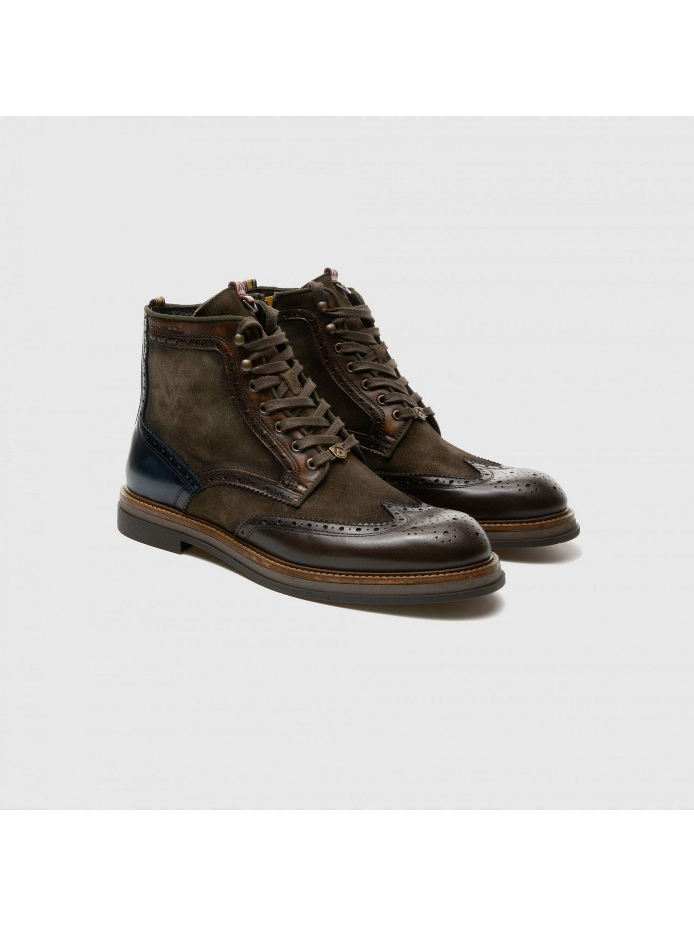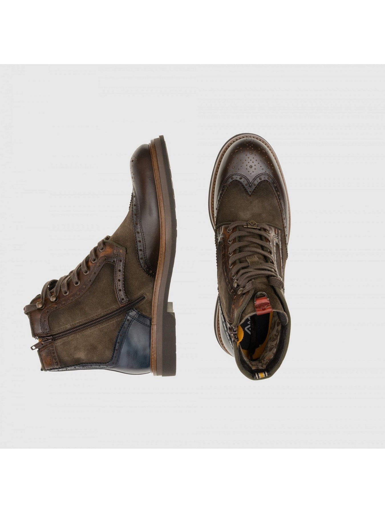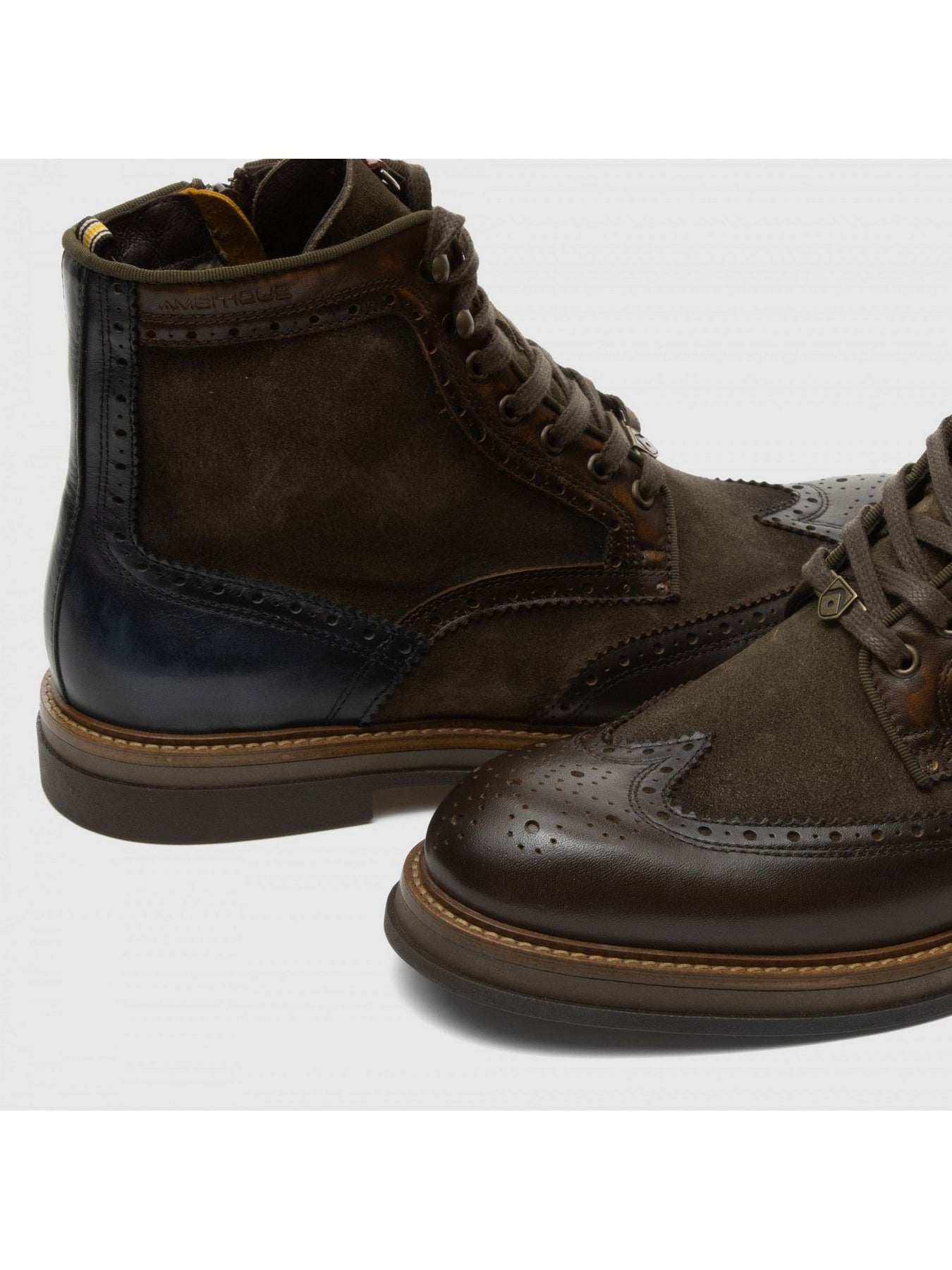 Il modello AMBITIOUS 12432B-6564AM è un anfibio che combina eleganza e robustezza, pensato per l'uomo che cerca una scarpa dal carattere deciso. Realizzato in pelle e suede color musk, si distingue per le lavorazioni brogue che donano un tocco classico e raffinato.