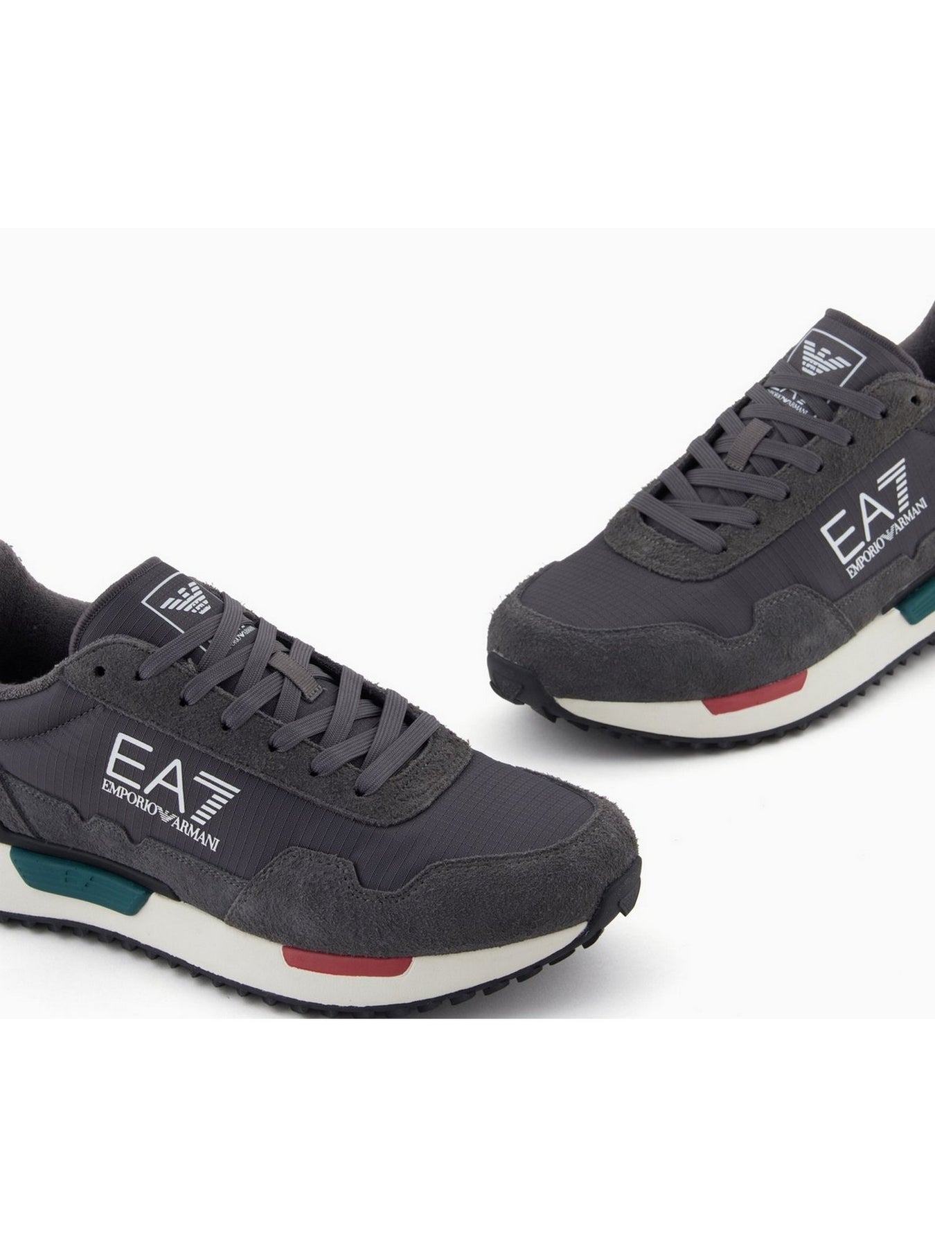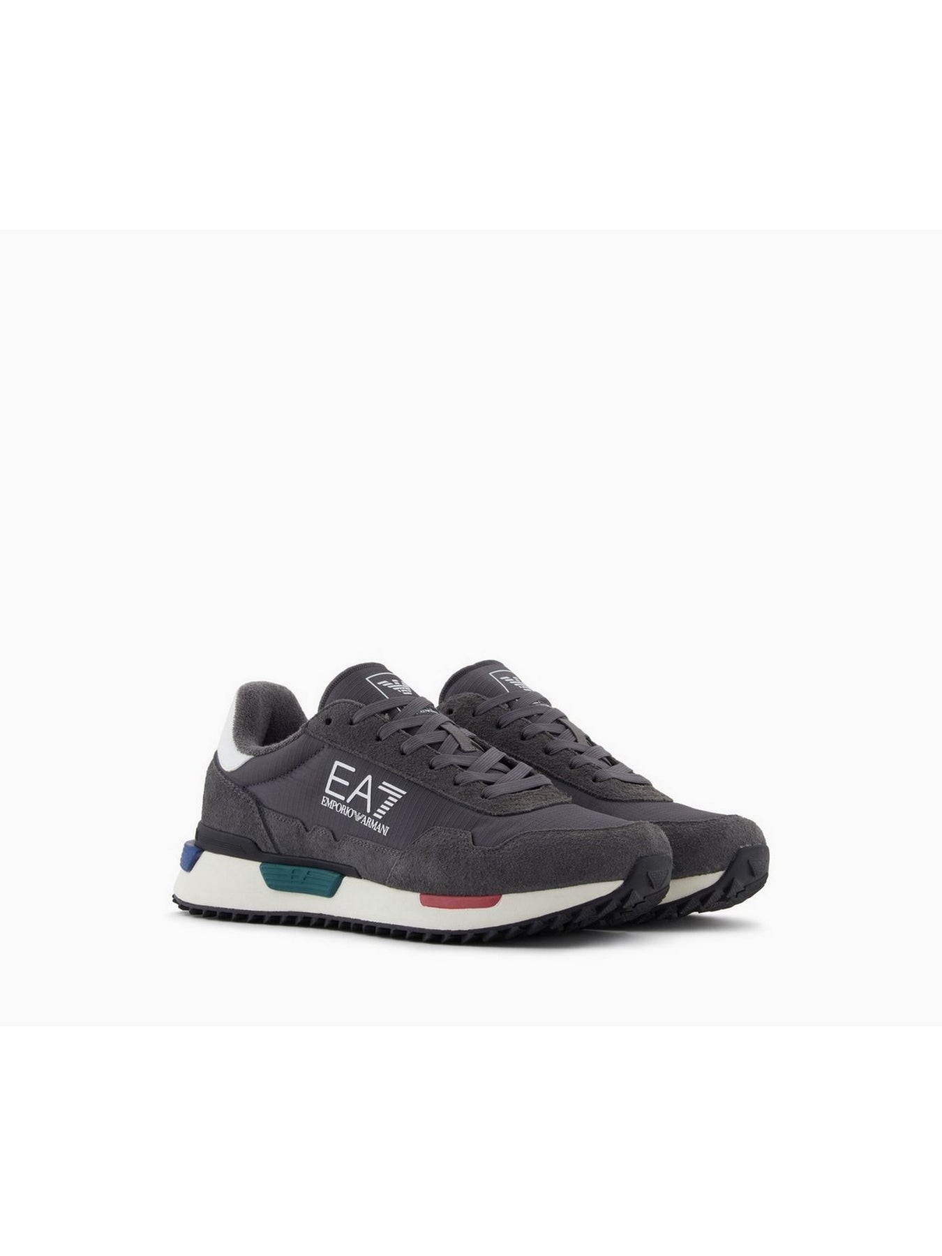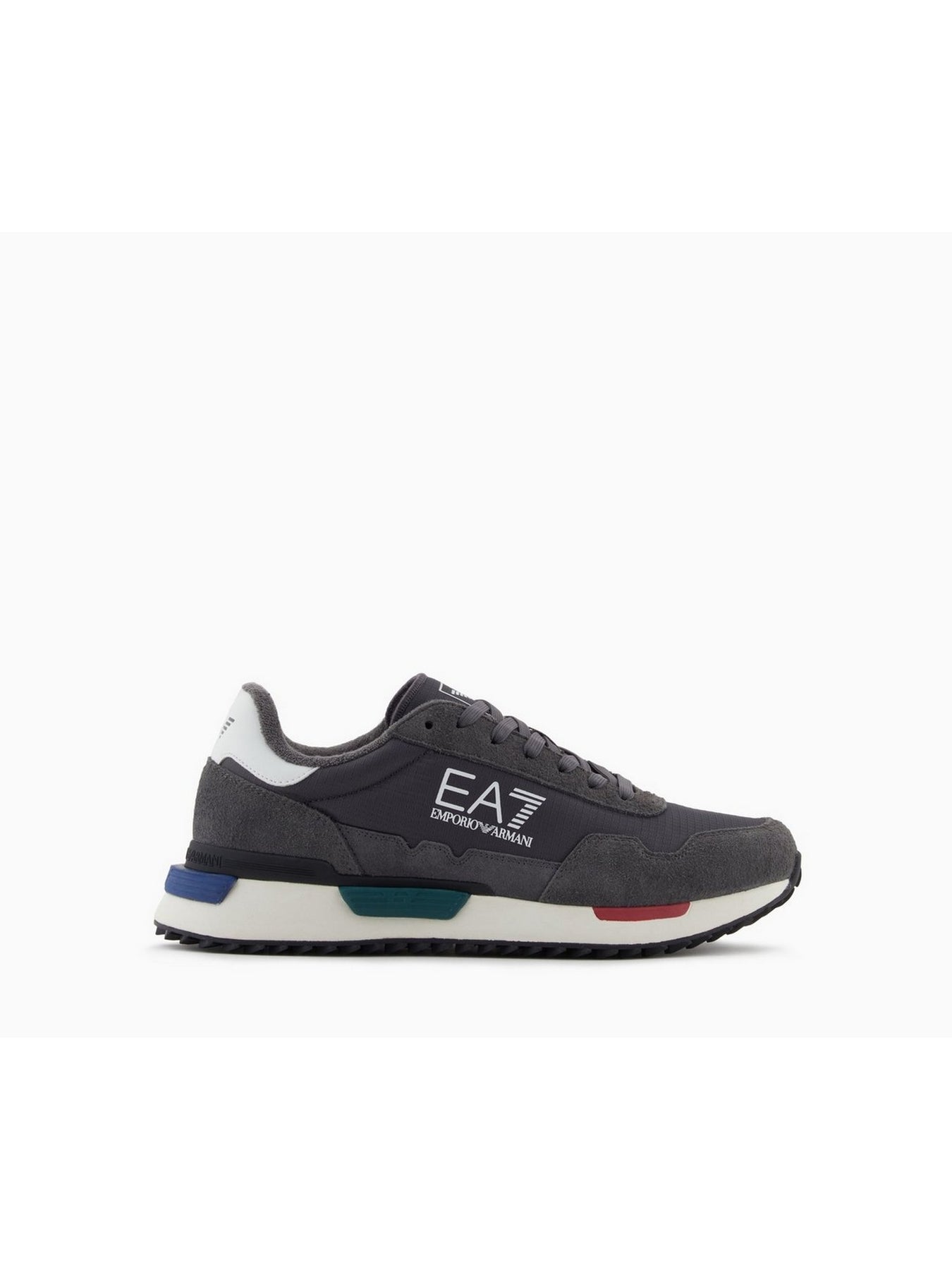 EA7 Sneaker Bassa Uomo - 7X000380AF19175 Asphalt/Black Sneaker bassa uomo in tessuto tecnico grigio asfalto con dettagli in suede e suola multicolor in gomma.
