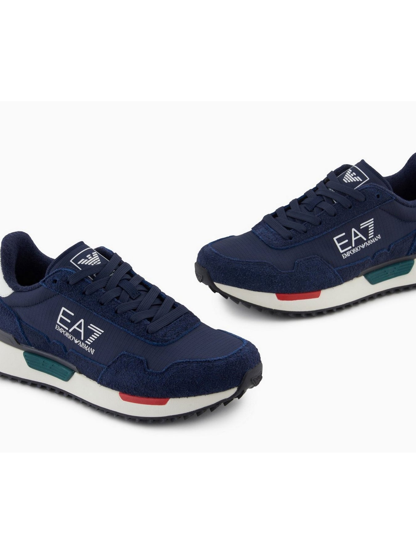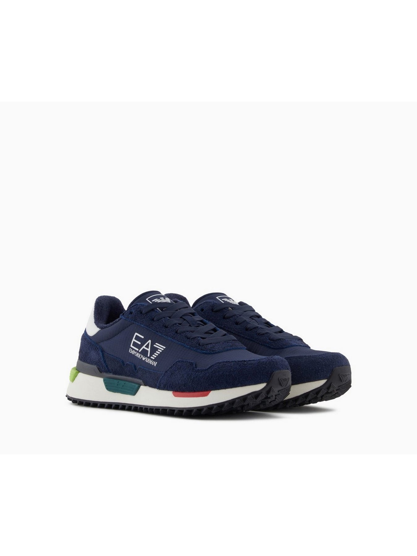 La tomaia in tessuto tecnico con inserti in suede assicura sostegno e traspirabilità, mentre la suola multicolor in gomma offre stabilità e un look dinamico. Il logo EA7 laterale a contrasto dona un tocco distintivo e di carattere.