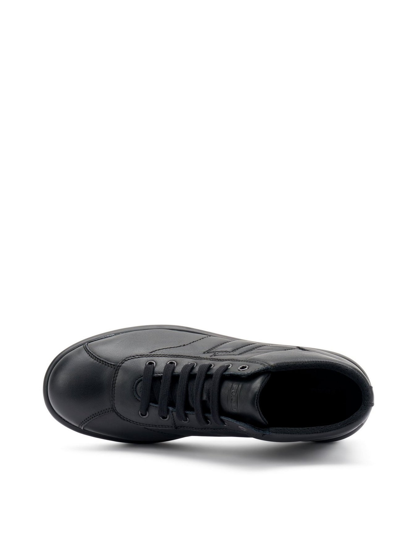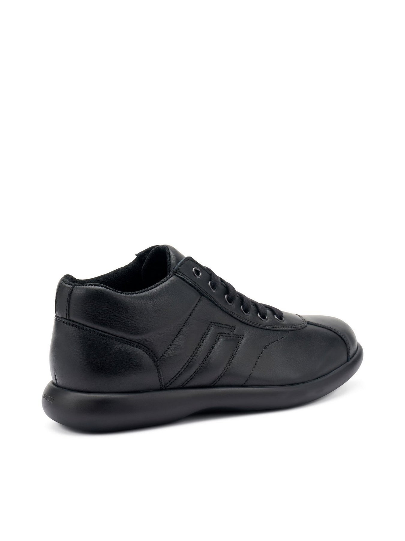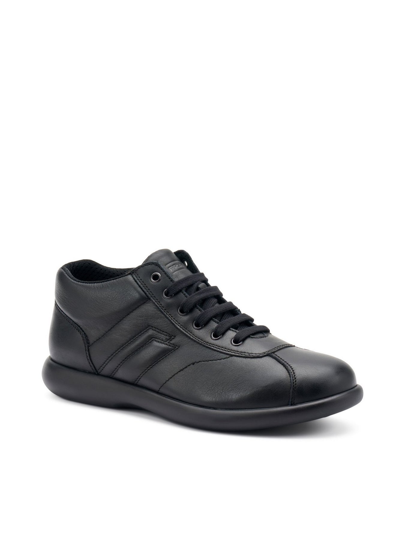 La polacchina FRAU 27L4 è un modello dal carattere sportivo e confortevole, realizzato in morbida pelle nera di alta qualità. Il design presenta cuciture a vista e un rinforzo laterale che arricchisce la struttura della scarpa, mantenendo uno stile pratico e moderno.