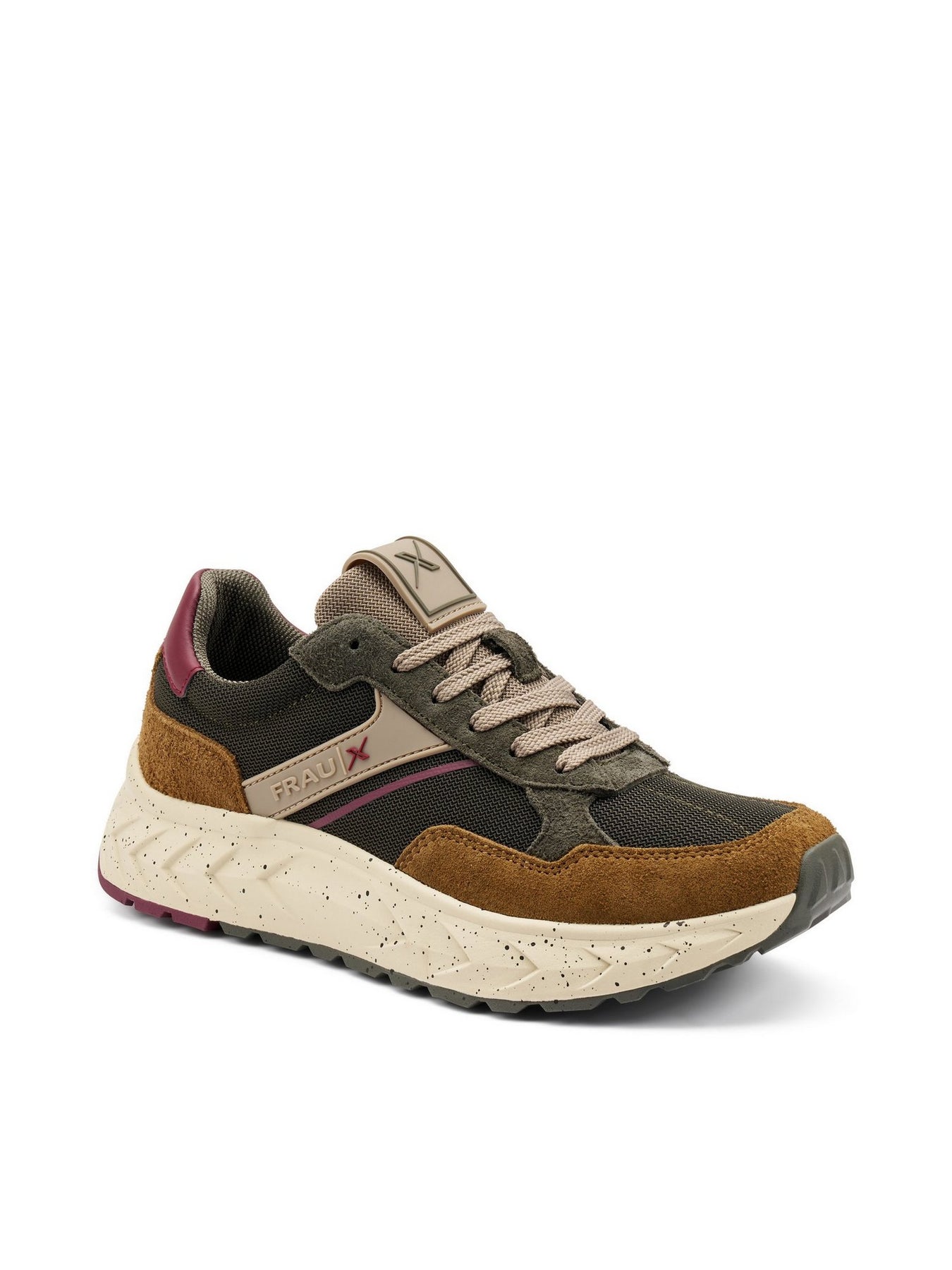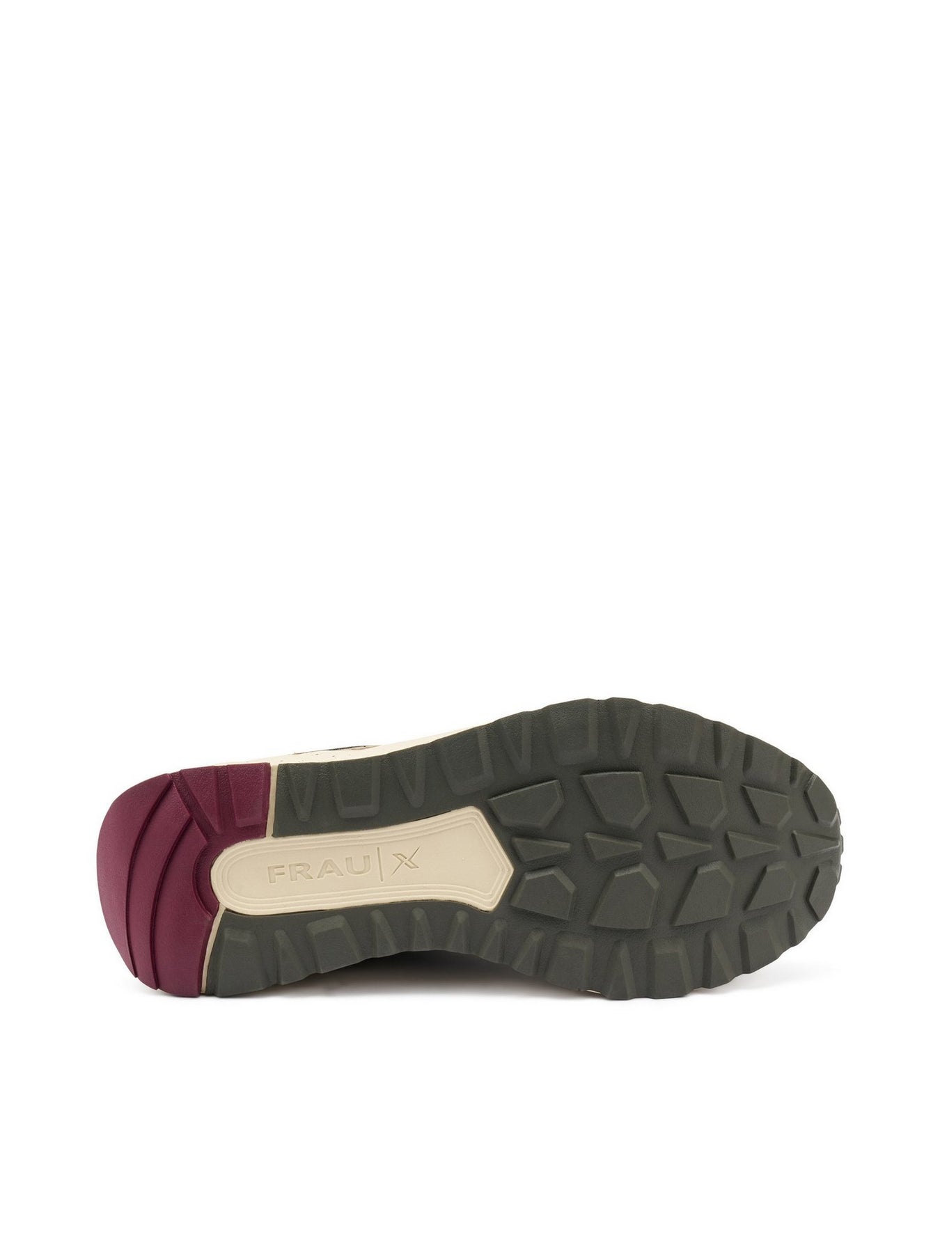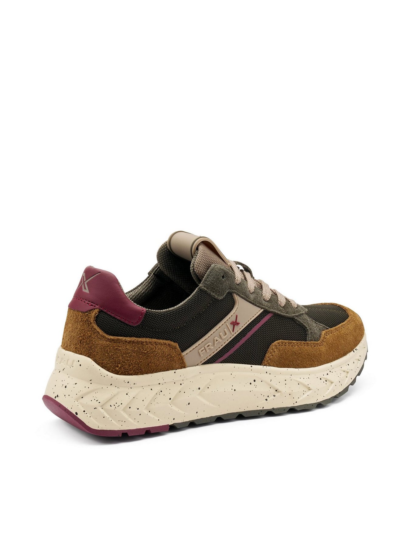 La sneaker FRAU X013 Tabacco combina pelle scamosciata color tabacco e inserti in tessuto tecnico, con dettagli in contrasto che ne esaltano il design urbano e moderno.