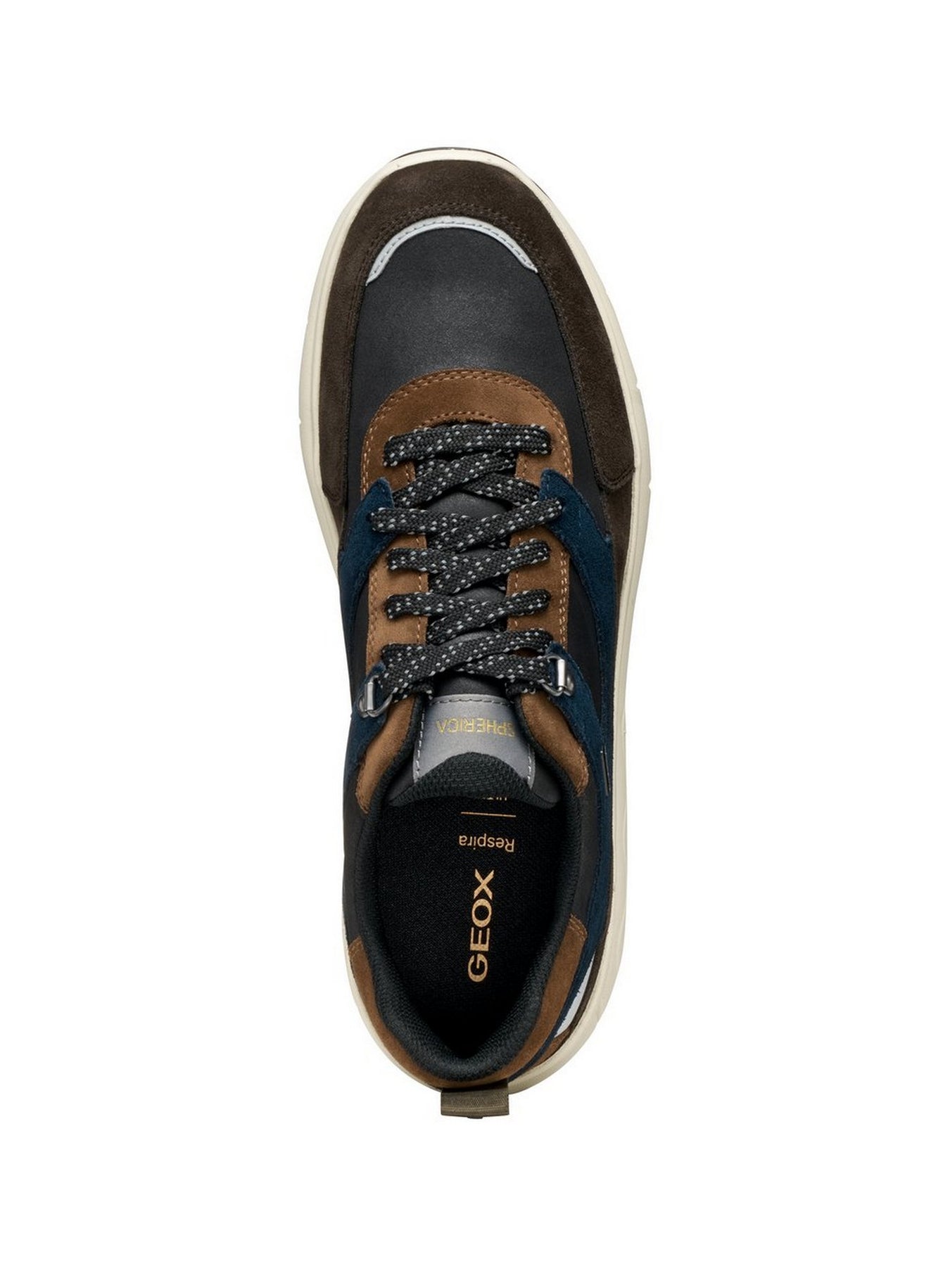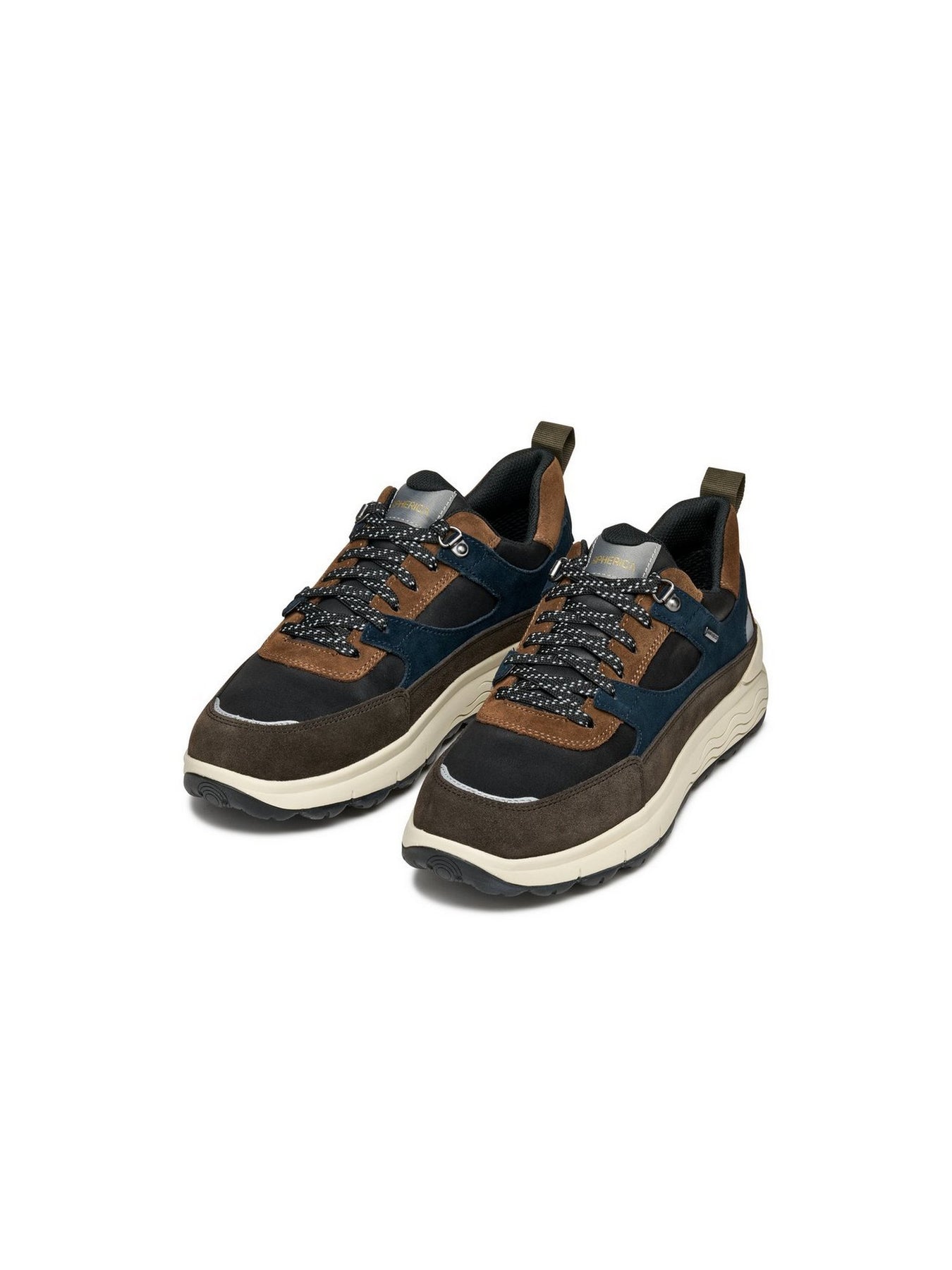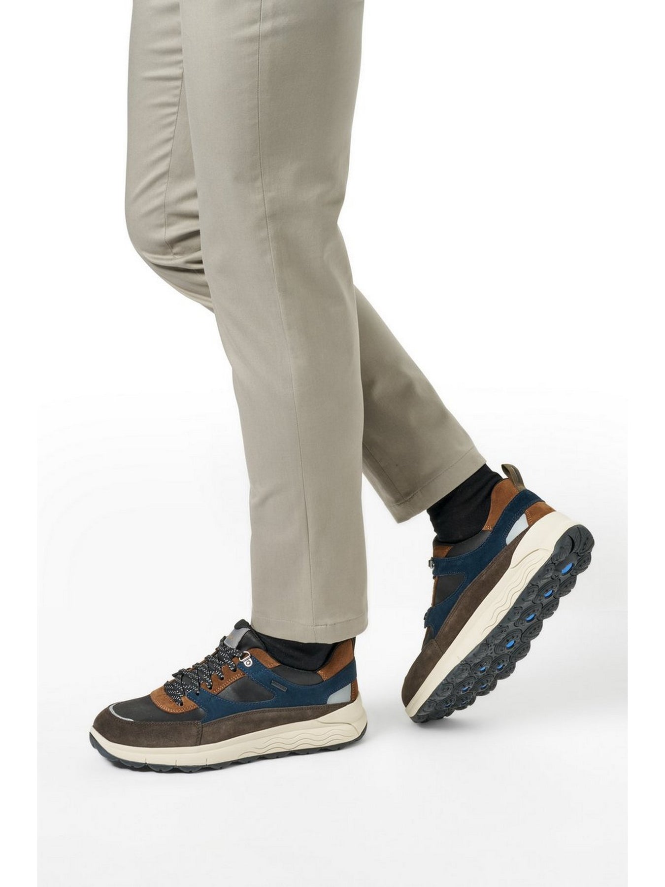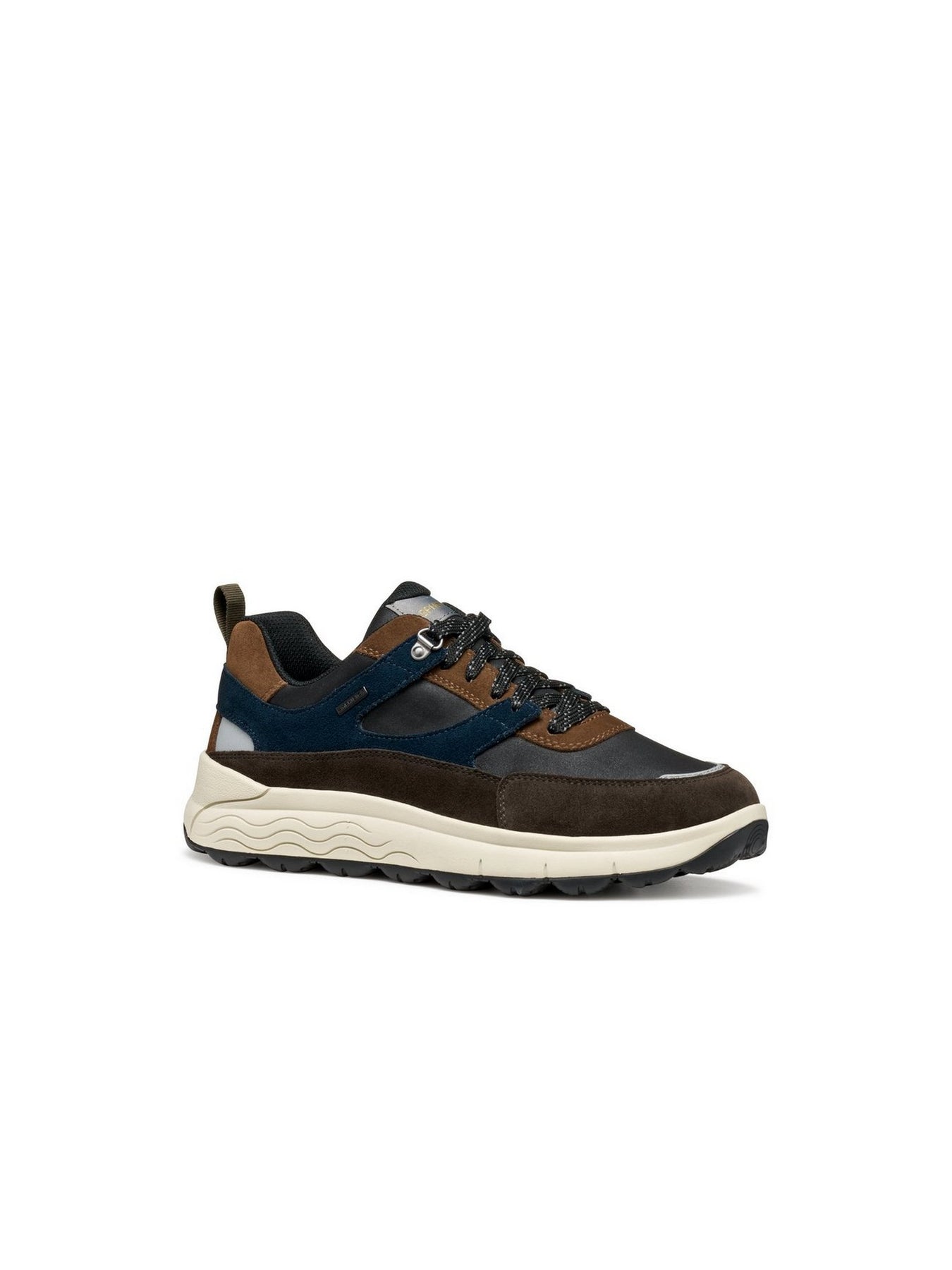 Il modello GEOX Spherica 4X4 B Abx Dk Brown/Navy è una sneaker bassa dallo stile outdoor, ideale per l'uomo che cerca protezione, comfort e design moderno.