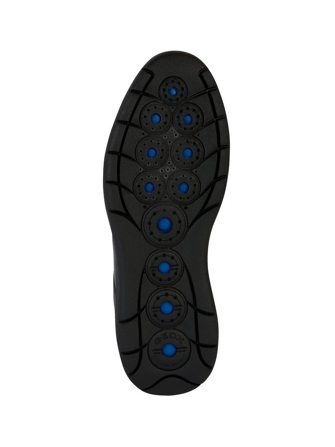 Realizzata in pelle nera di qualità, presenta linee essenziali e un look versatile, perfetto per abbinamenti casual e sportivi. La suola è dotata di tecnologia Zero Shock System, con speciali sfere ammortizzanti che assorbono gli urti e garantiscono un comfort prolungato. Inoltre, la tecnologia traspirante GEOX mantiene il piede asciutto e fresco durante tutta la giornata.