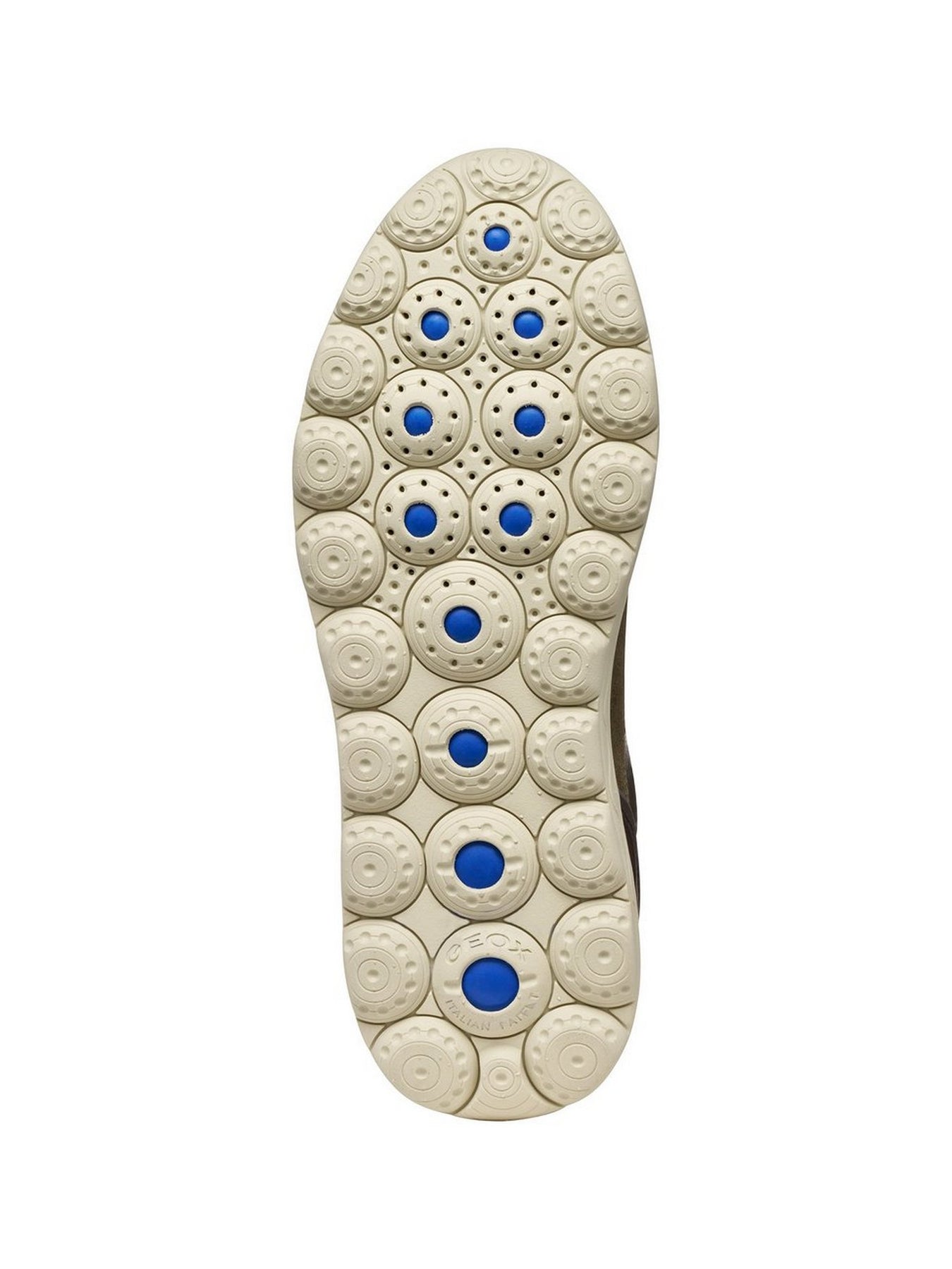 Realizzata in un mix di pelle scamosciata e materiale tecnico, assicura resistenza e leggerezza. I dettagli a contrasto in marrone coffee e giallo senape sul tallone donano un tocco dinamico. La fodera interna con tecnologia GEOX favorisce traspirabilità, mantenendo i piedi asciutti per tutto il giorno.