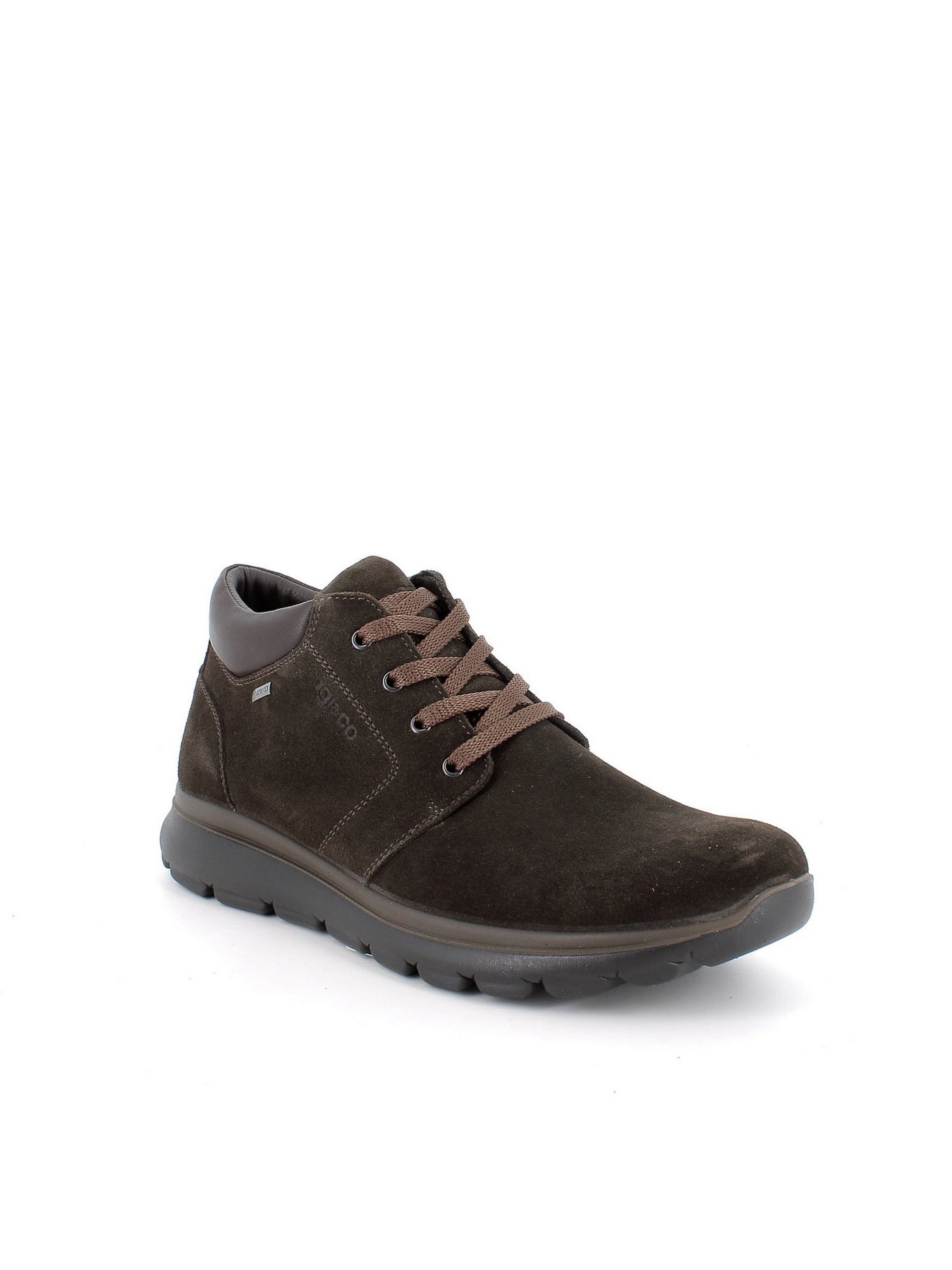 Realizzata in pelle scamosciata marrone caffè, presenta una finitura elegante e sobria, arricchita dalla tecnologia IGI&CO waterproof che la rende resistente a pioggia e umidità, mantenendo il piede asciutto e protetto.