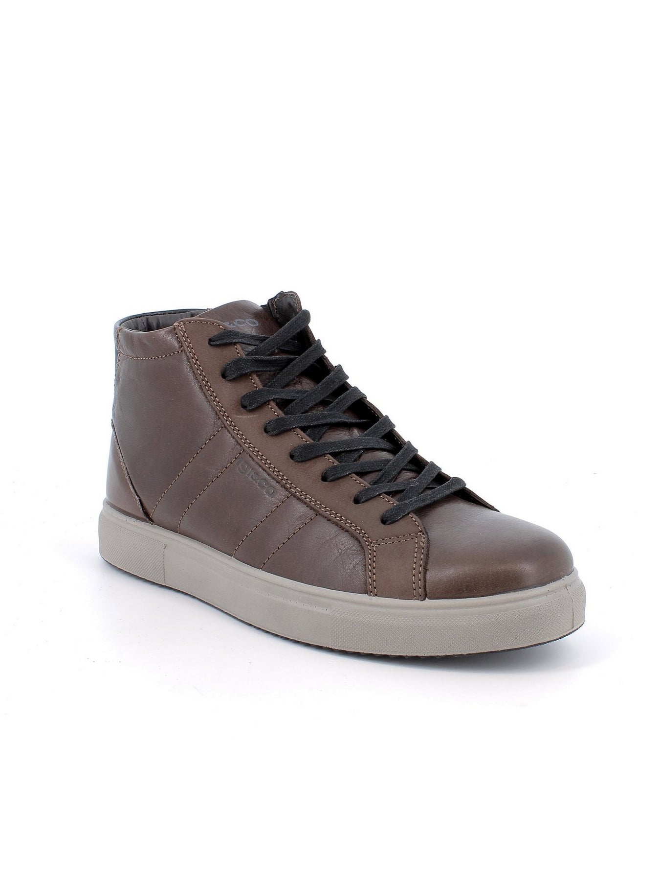 IGI&CO Sneaker Alta Uomo - 86355 Caffè Sneaker alta da uomo in pelle color caffè con allacciatura frontale e suola chiara leggera ammortizzata.