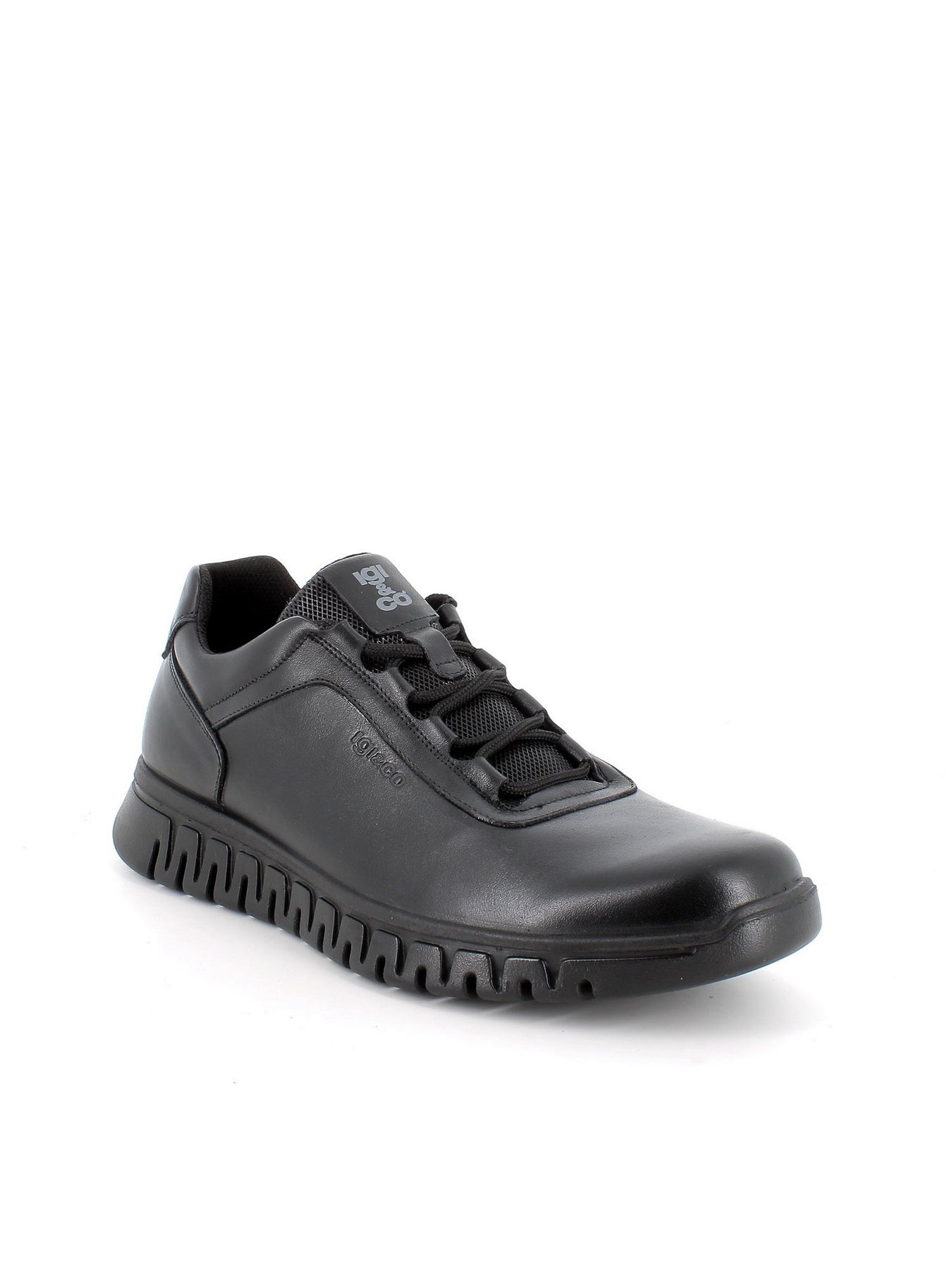 IGI&CO Sneaker Bassa Uomo - 86188 Nero. Sneaker in pelle nera con suola ergonomica da 4 cm e design sportivo.