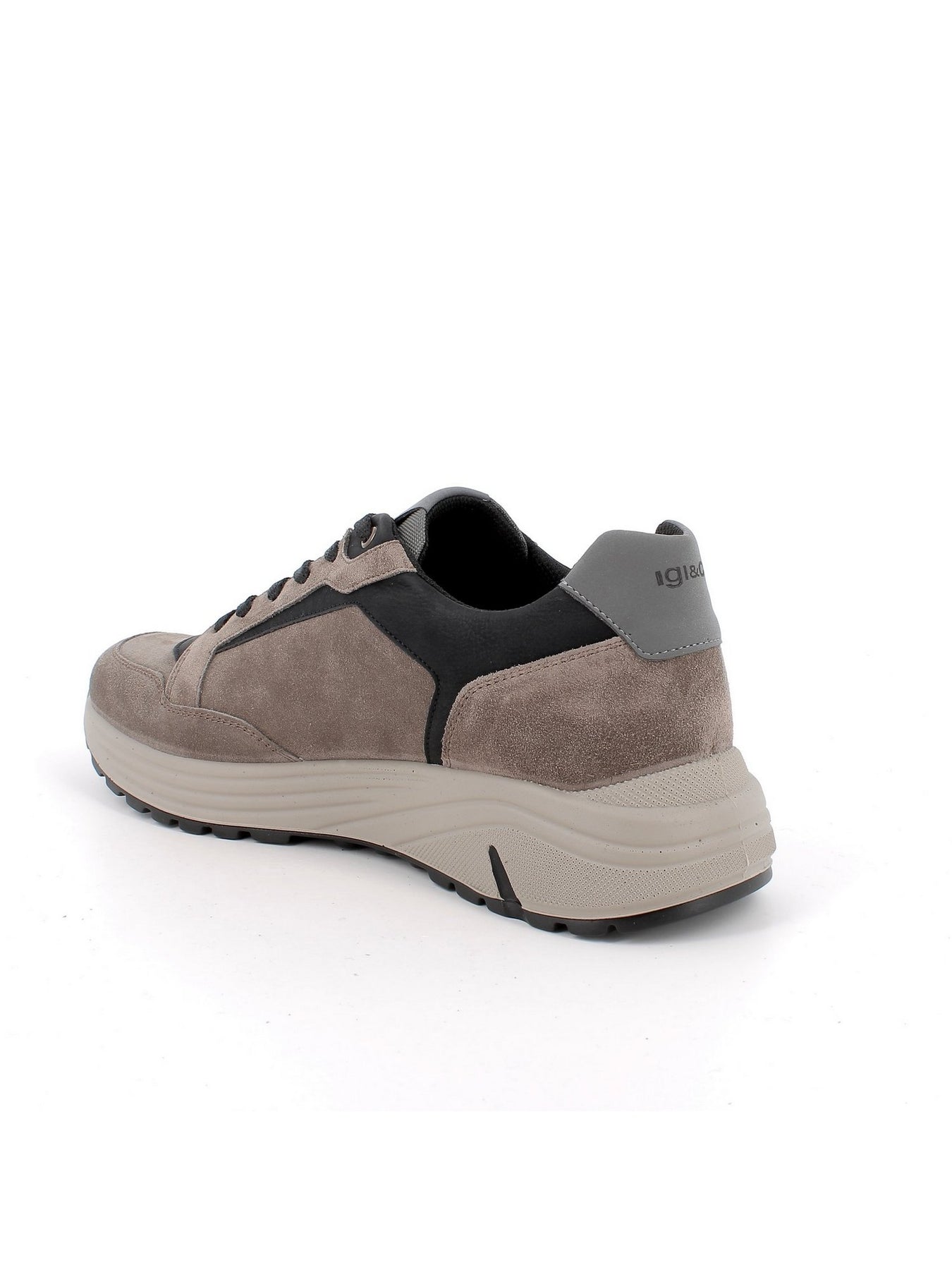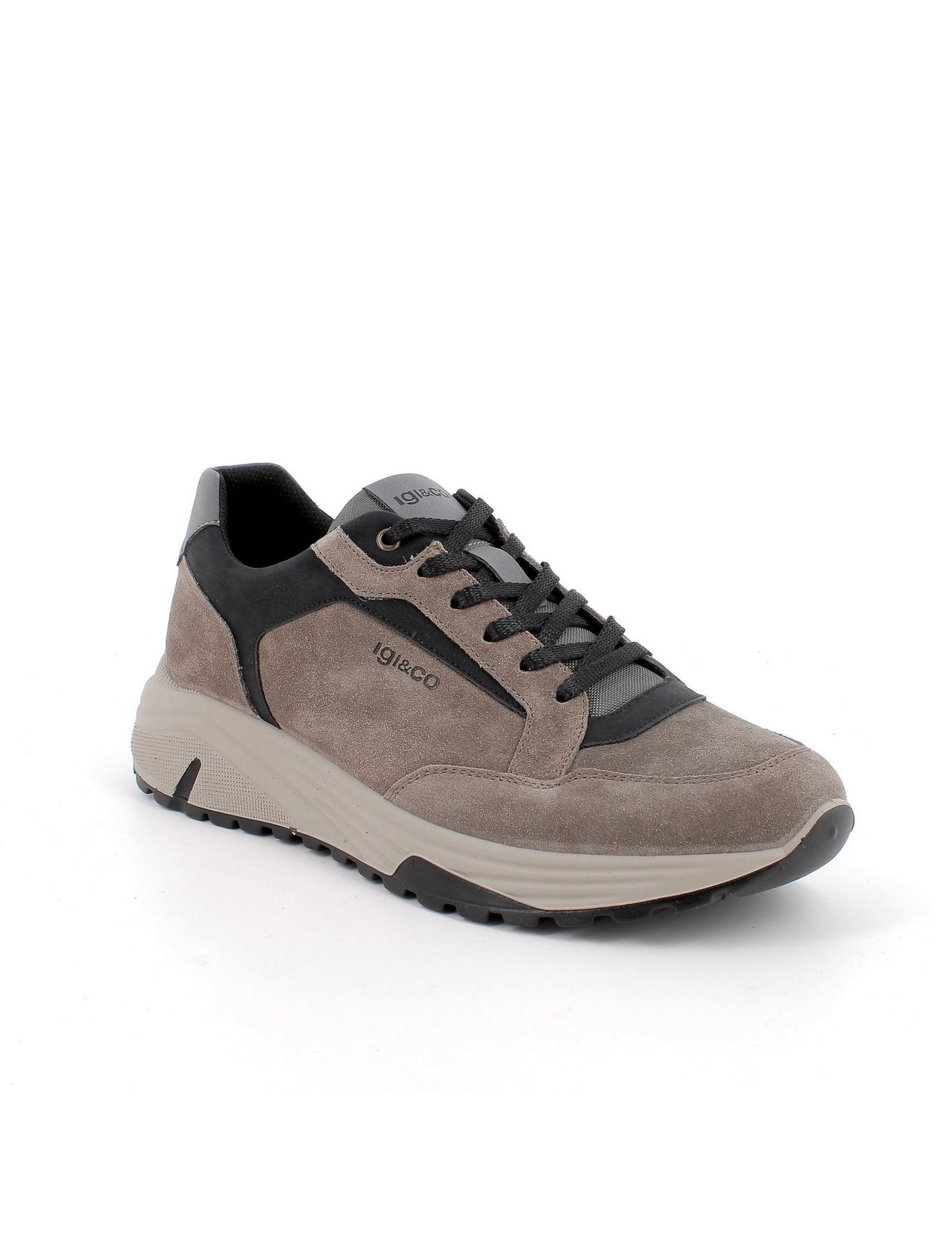 La sneaker IGI&CO 86403 Fango Scuro/Nero è realizzata in morbido camoscio con dettagli in pelle e inserti a contrasto neri che ne esaltano il design moderno e versatile.