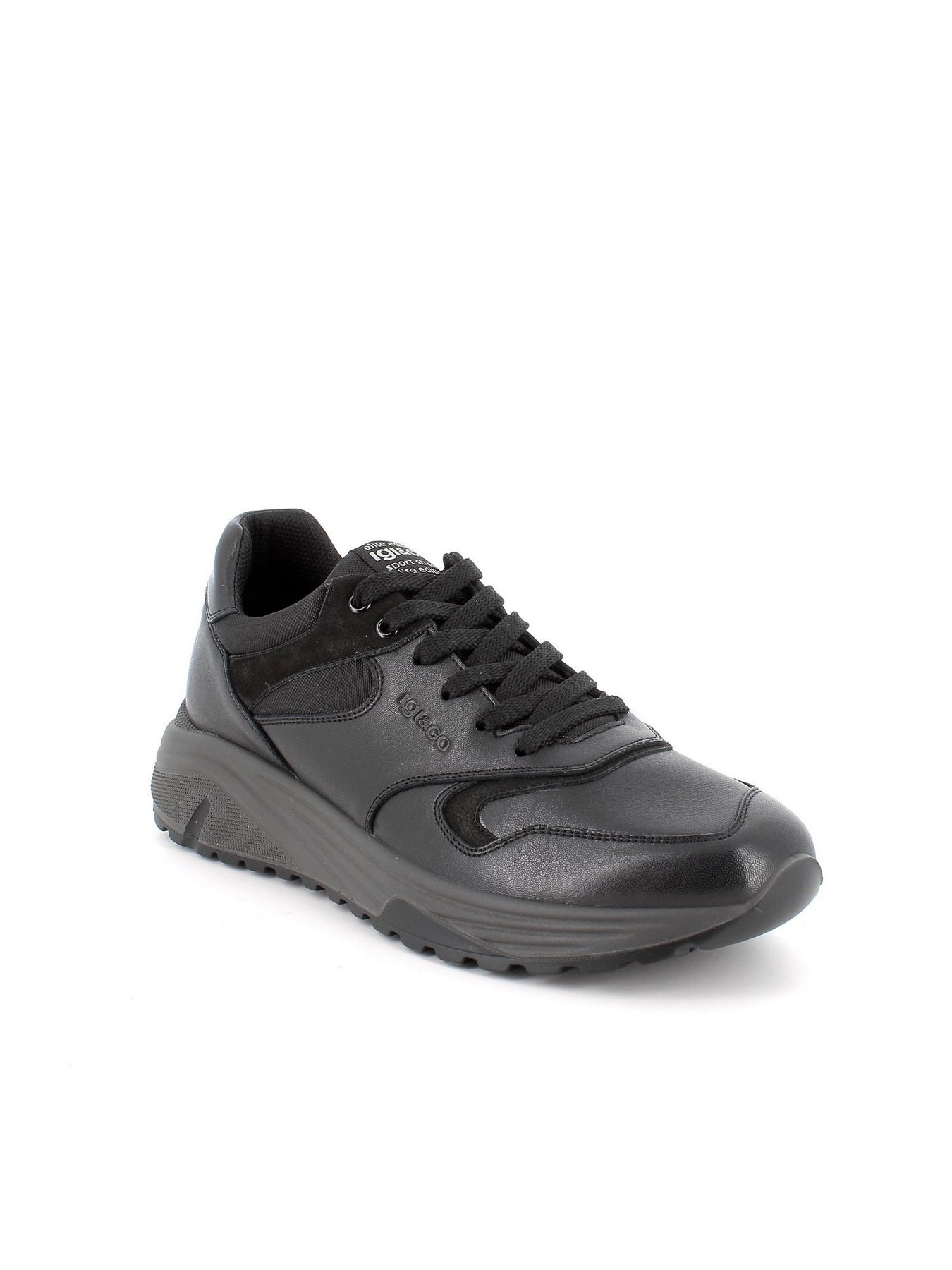 Il modello IGI&CO 86405 Nero è una sneaker bassa da uomo dal design dinamico e contemporaneo, realizzata in morbida pelle nera con inserti scamosciati tono su tono.