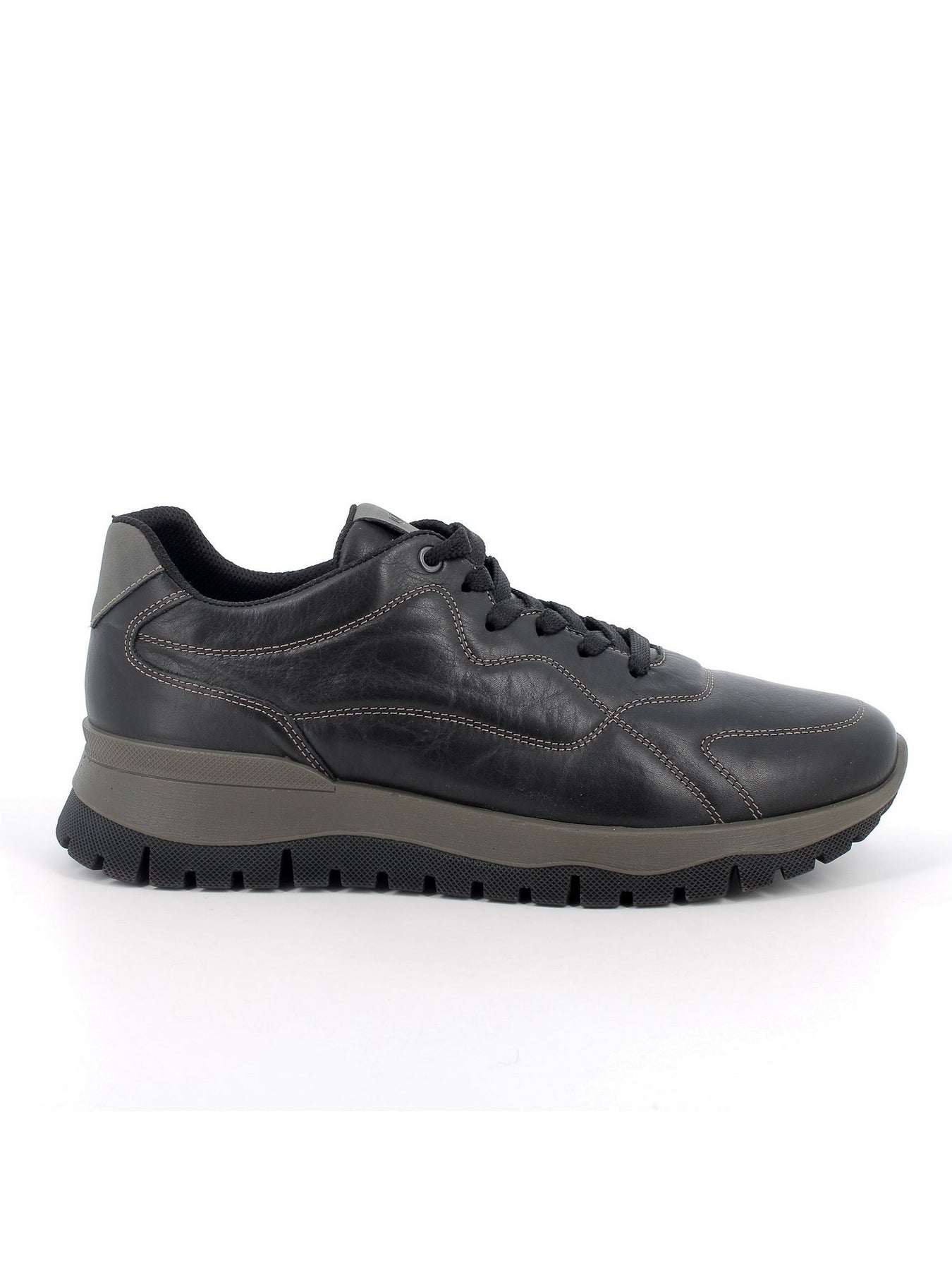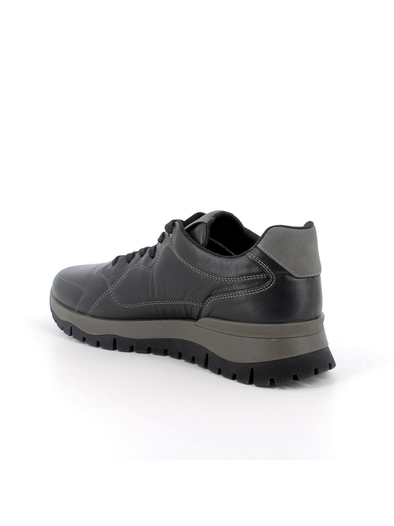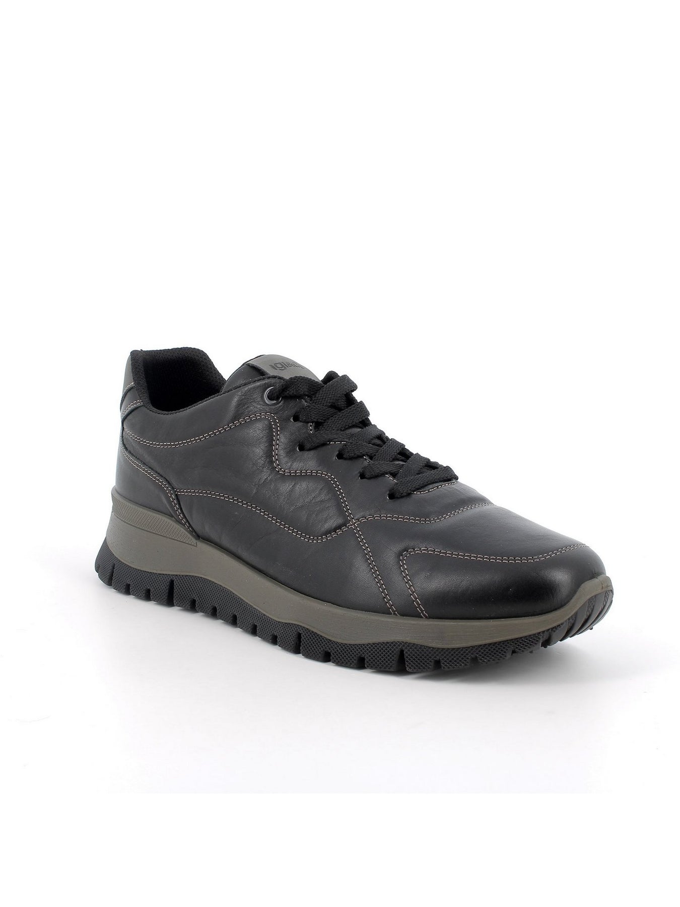 IGI&CO Sneaker Bassa Uomo - 86417 Nero. Sneaker in pelle nera con suola dentellata da 4,5 cm e design casual sportivo.
