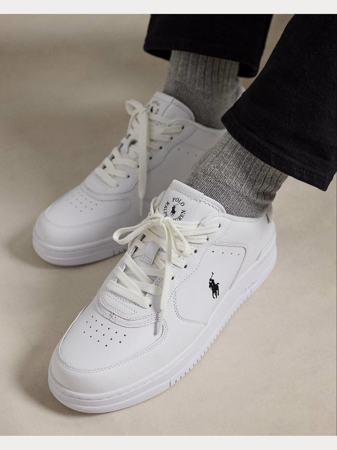 La sneaker Ralph Lauren Masters Court 809891791009 è pensata per chi desidera uno stile iconico e versatile. Realizzata in pelle bianca di alta qualità, presenta inserti neri e dettagli a contrasto che ne esaltano il design minimal e raffinato.