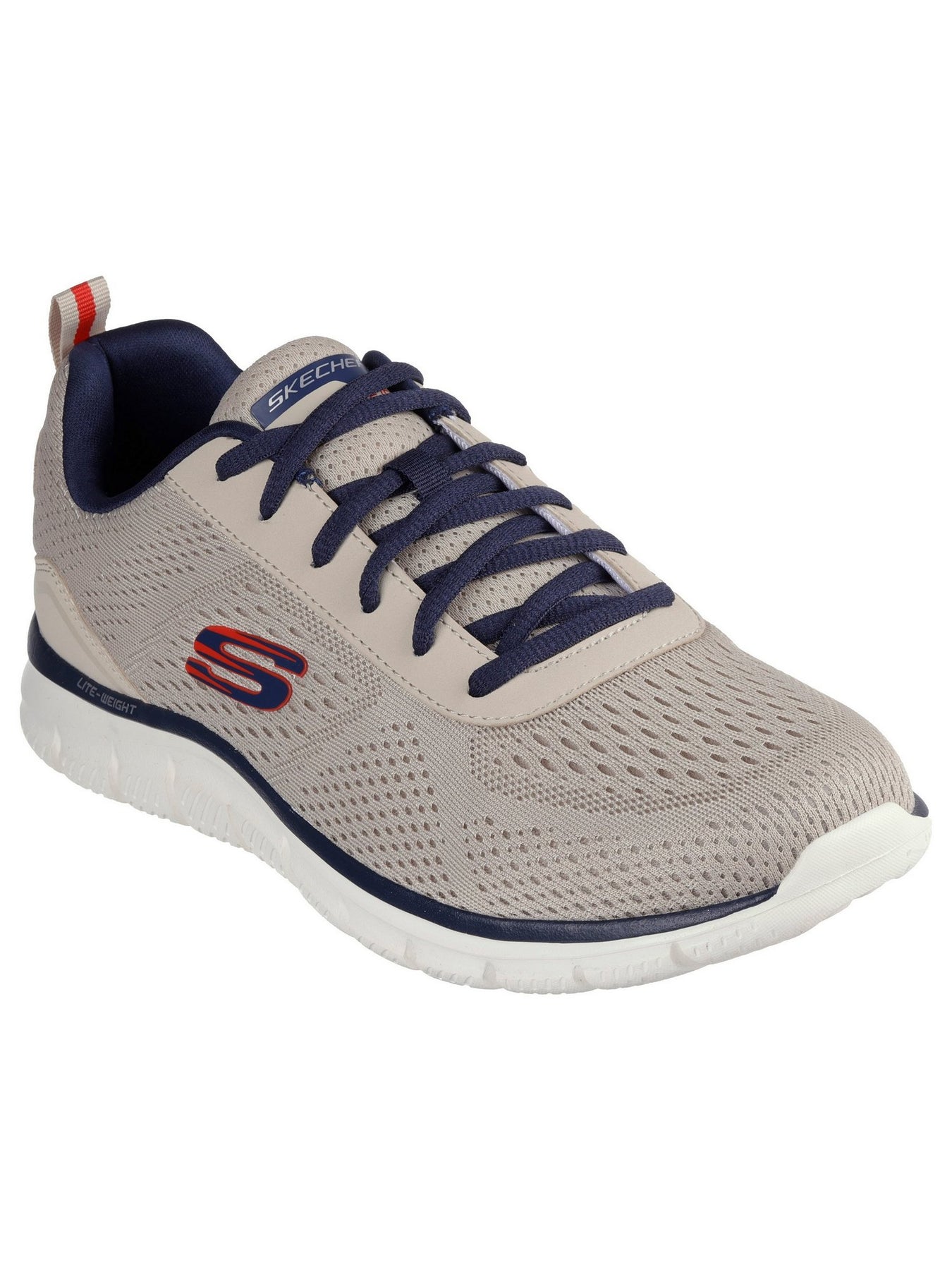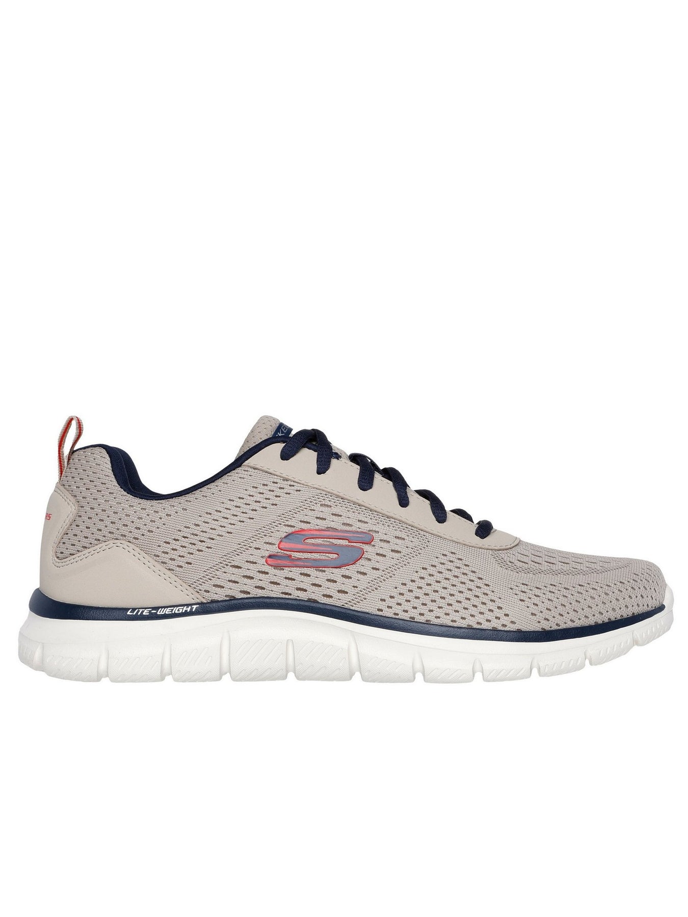 La sneaker SKECHERS 232758 Taupe è realizzata in mesh traspirante con rinforzi laterali e dettagli blu navy a contrasto. Il logo SKECHERS multicolore arricchisce il design sportivo e moderno.