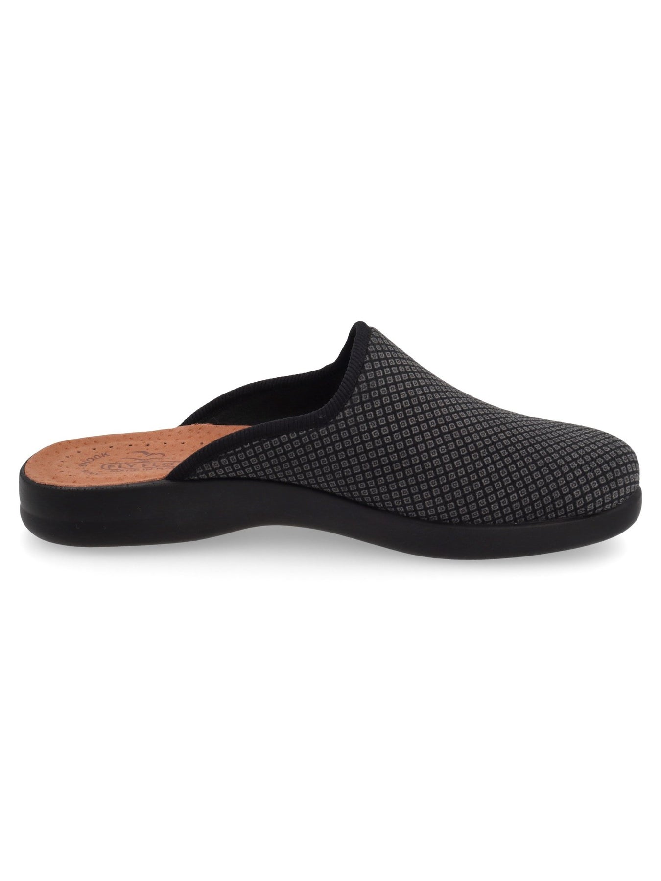 Realizzata in tessuto traspirante nero con microfantasia, garantisce leggerezza e freschezza al piede. Il plantare anatomico FLY FLOT sostiene l'arco plantare e favorisce una postura corretta, riducendo l'affaticamento anche dopo molte ore di utilizzo.