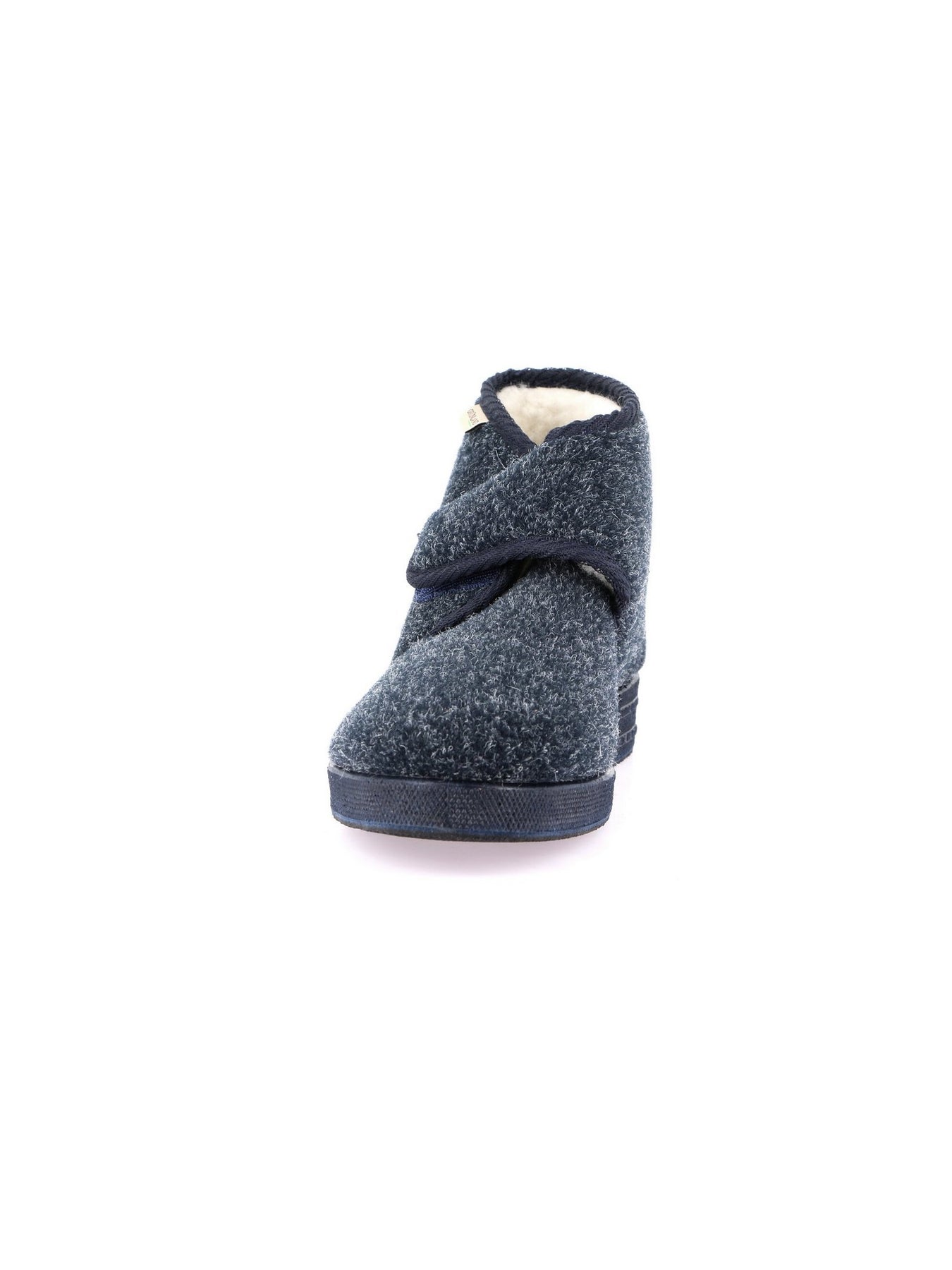 Realizzata in morbido feltro, presenta una chiusura a strappo regolabile che garantisce una calzata facile e personalizzata. La fodera interna calda assicura benessere e protezione dal freddo, mentre la suola leggera e resistente offre stabilità e lunga durata.