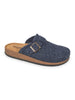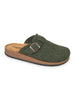 Realizzata in morbido feltro color olivo, questa pantofola presenta un cinturino regolabile con fibbia metallica, che permette una calzata personalizzata e sicura. La soletta anatomica in sughero naturale garantisce un perfetto sostegno del piede, favorendo una postura corretta e una sensazione di benessere costante.