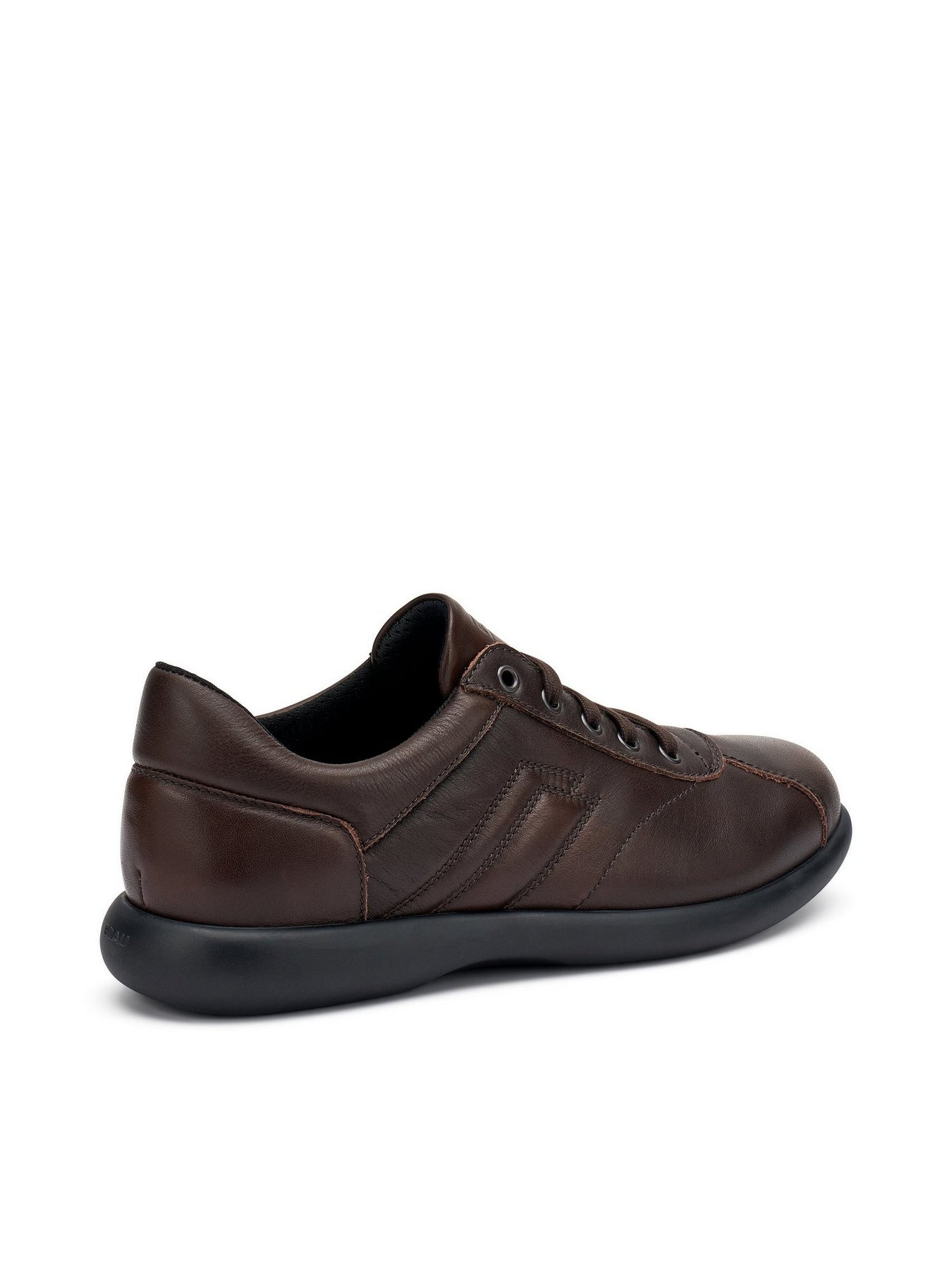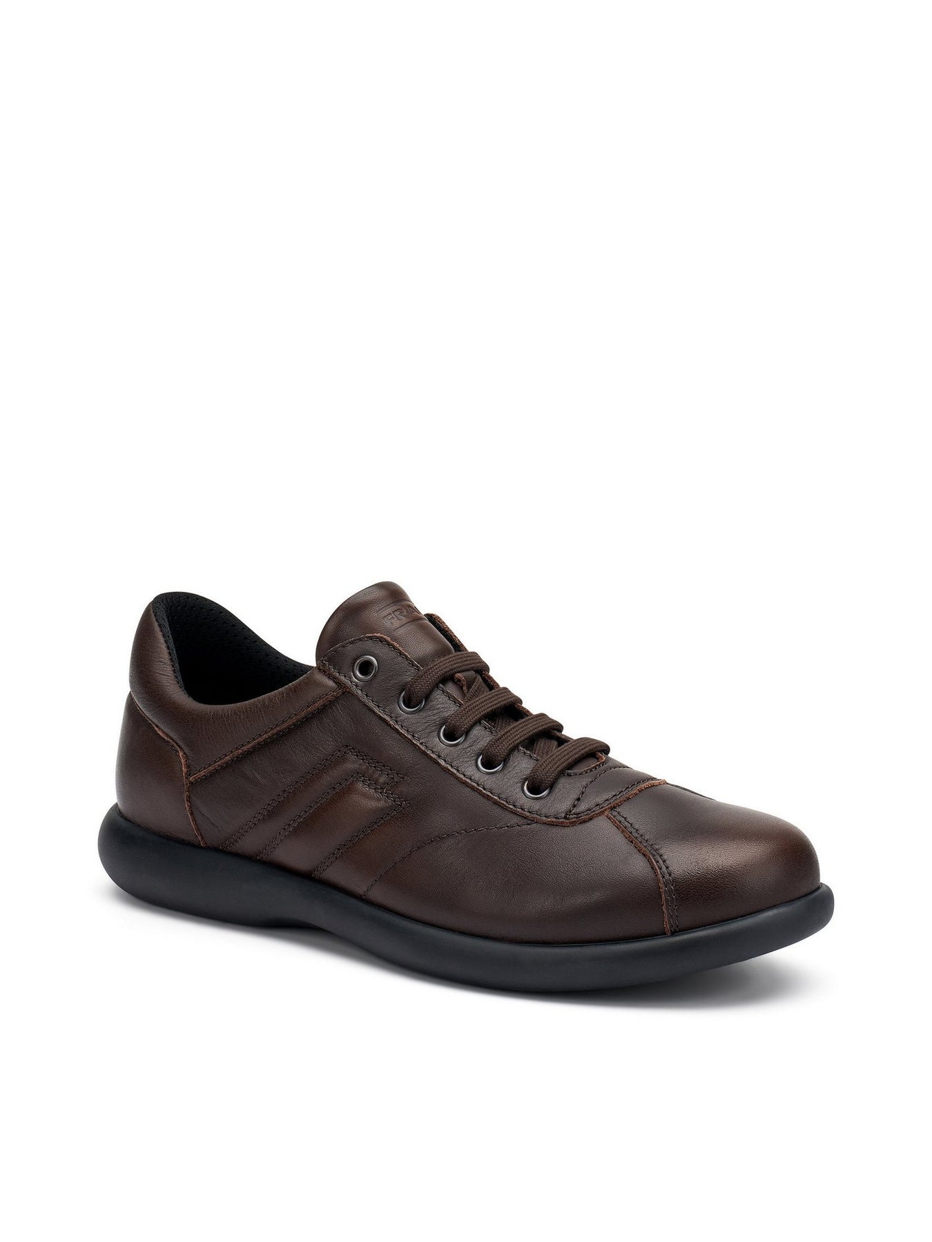 Realizzata in morbida pelle color legno, questa sneaker bassa si distingue per le linee essenziali e le cuciture tono su tono che valorizzano la qualità artigianale del marchio FRAU. La chiusura con lacci garantisce una calzata stabile e personalizzabile, mentre l'interno foderato in tessuto traspirante offre comfort e benessere prolungato.